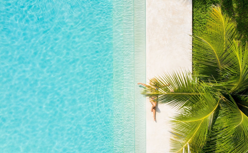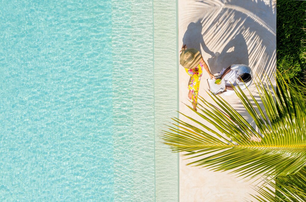 Enjoy the outdoor pool and spa tub for relaxation and fun at Jua Retreat.