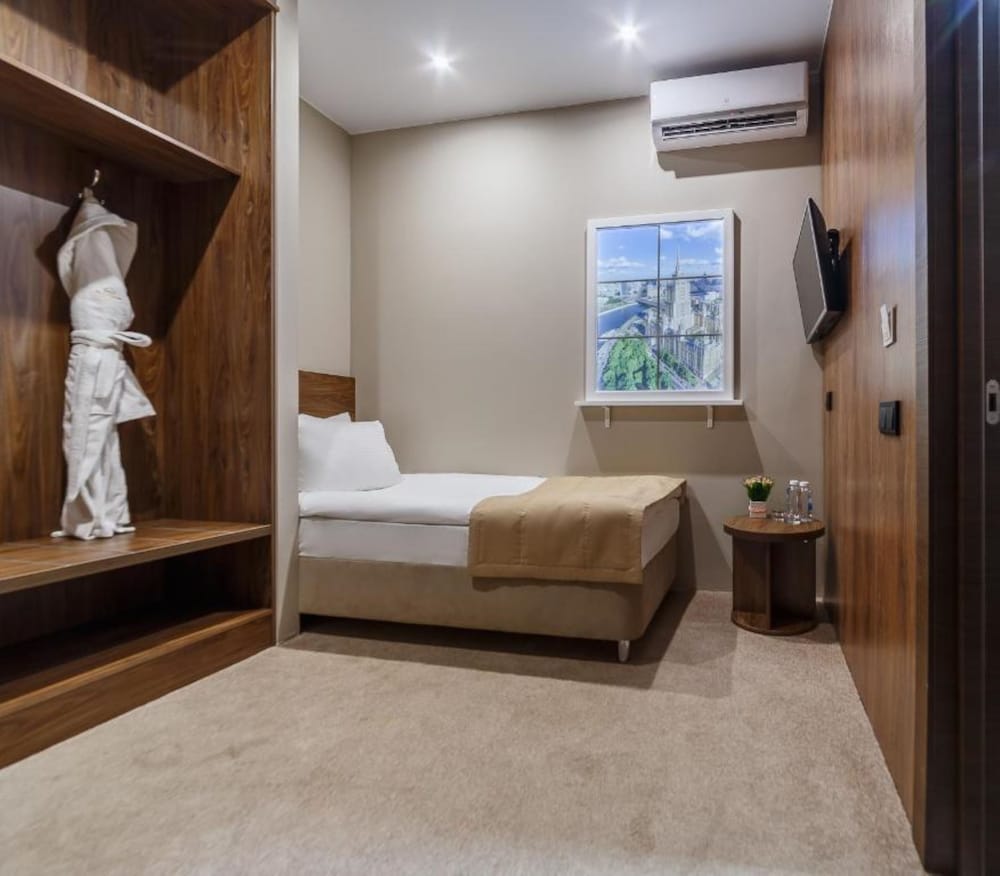 It was Good, but small room. Lots of toiletries in the bathroom. Coffemachine in the room, quite good breakfast, and even champagne :) Well, Russian sparkling wine, of course, but anyway, cool for breakfast :) The room has no desk, so I could not really work at the desk there.