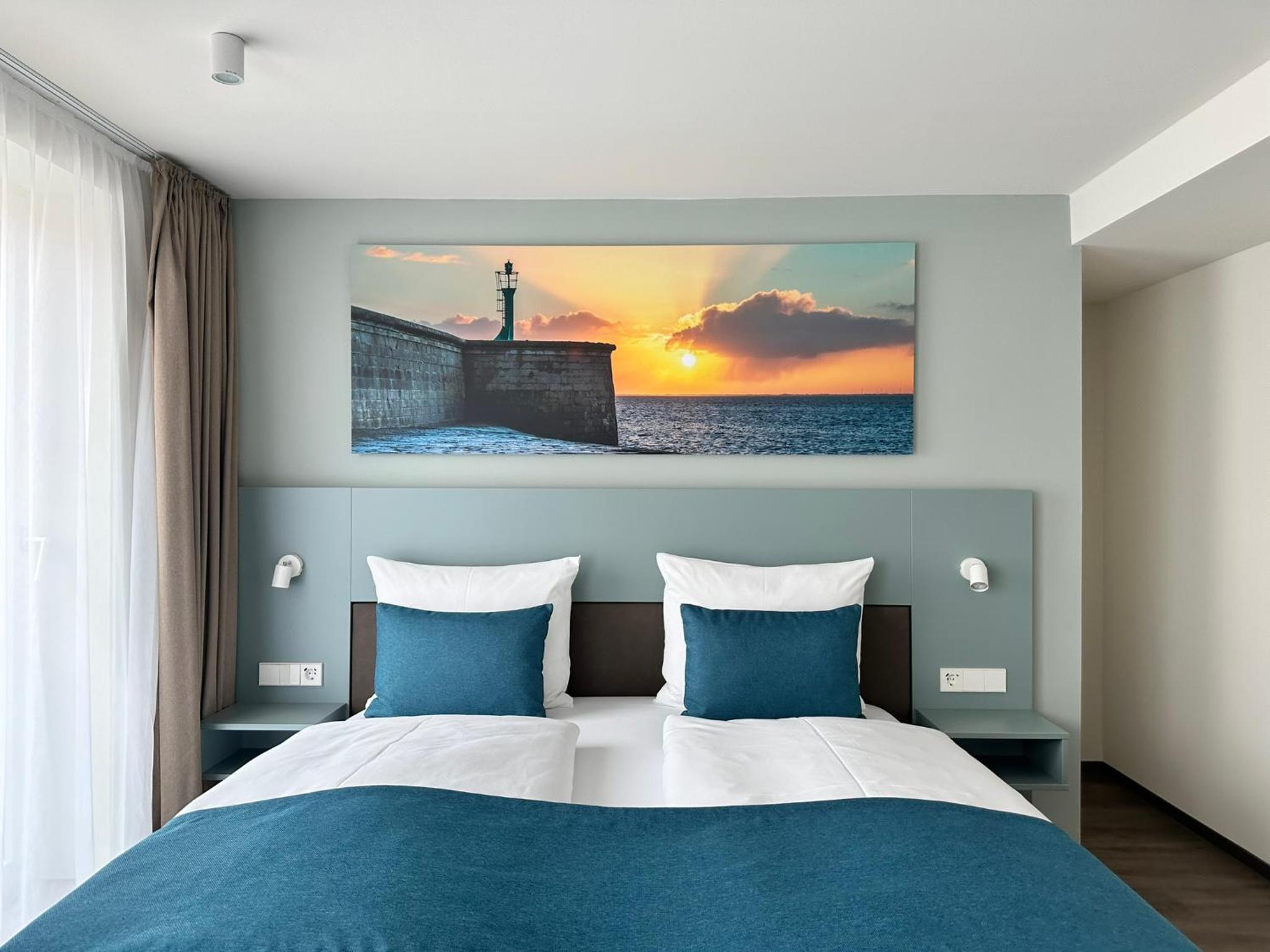 Immerse yourself in a unique nautical experience with our maritime-themed décor, setting the perfect ambiance for a relaxing stay by the old port of Ruestersiel.