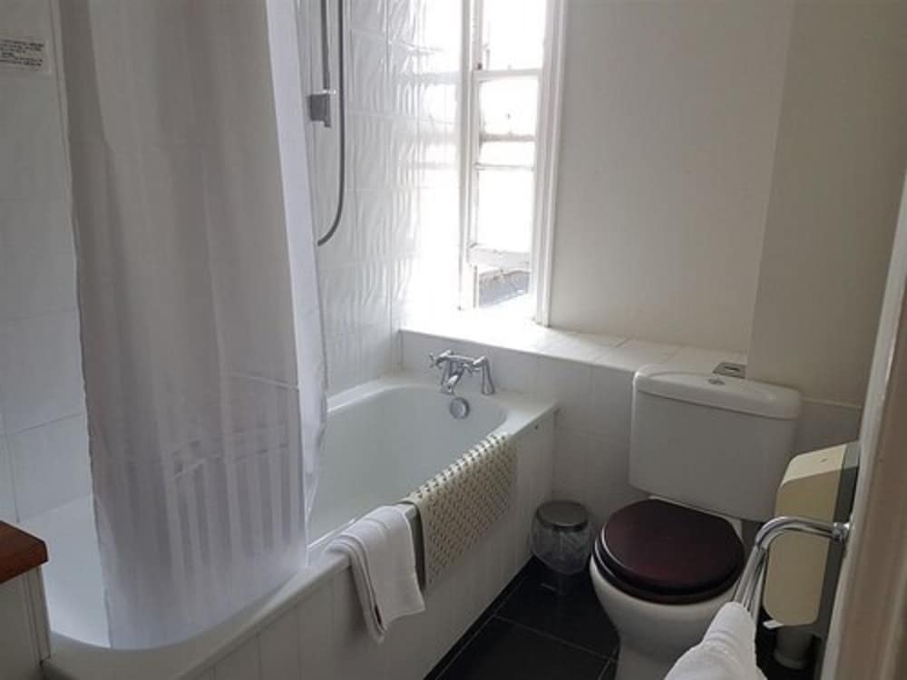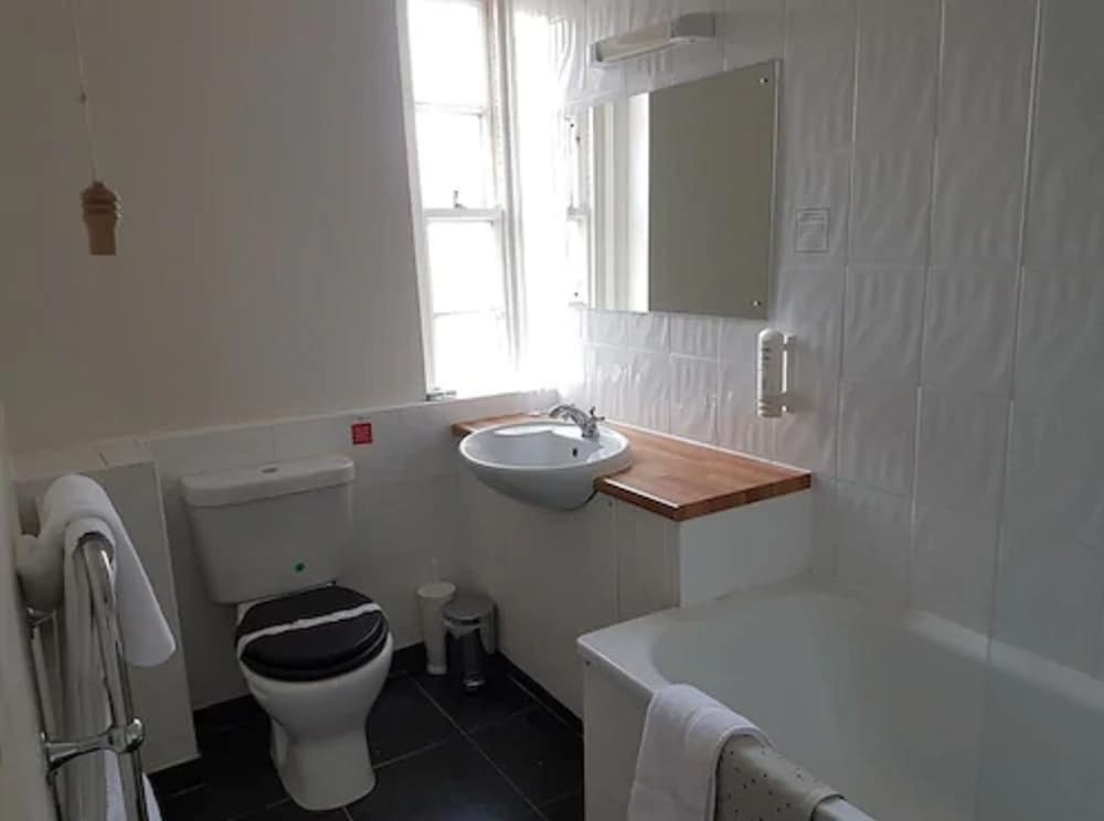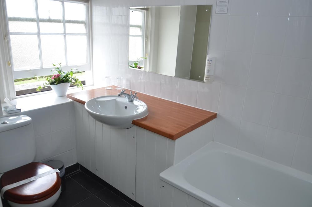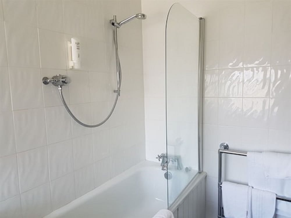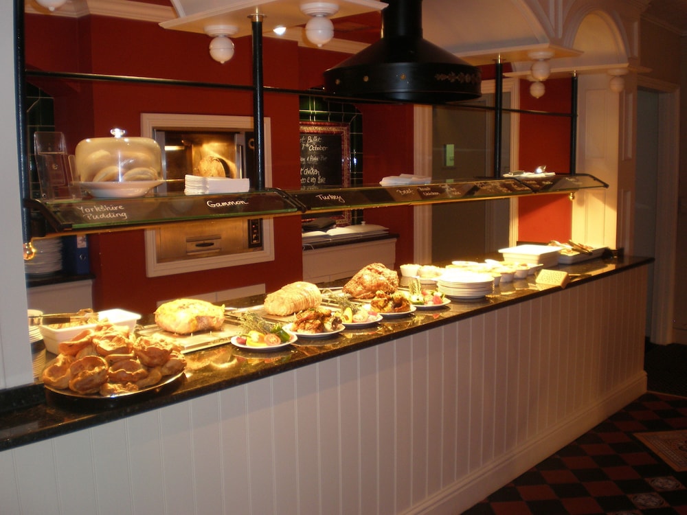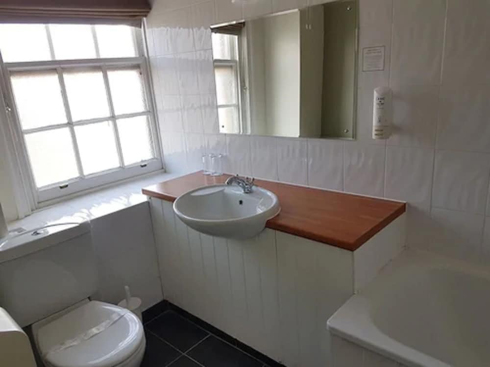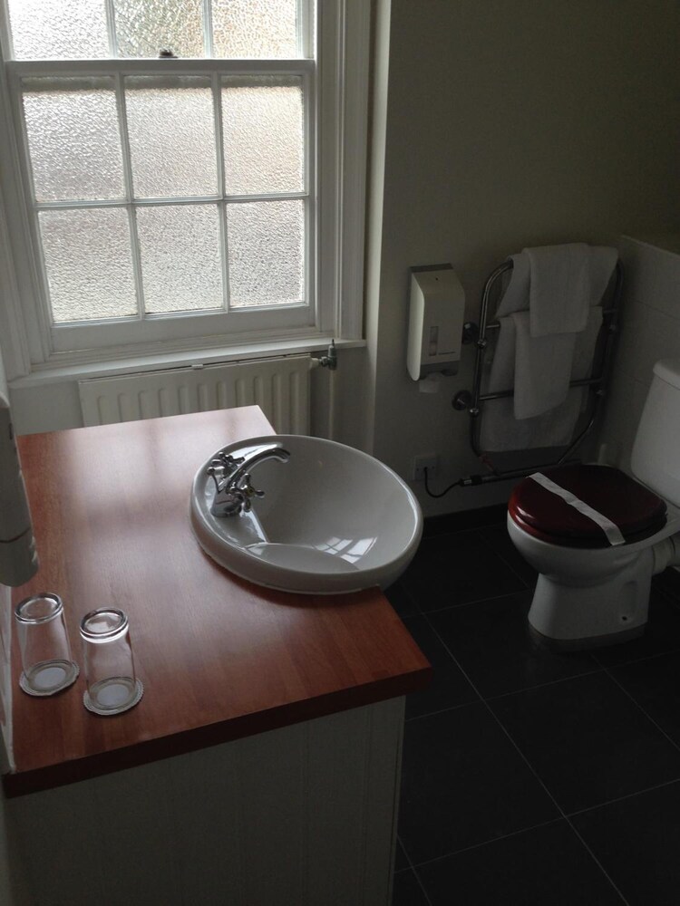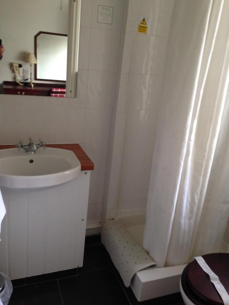 The evening meal was excellent. Breakfast ok, would have preferred back bacon and warm plates. Poor selection of fruit. Room was too hot even with fan. Needs updating. The shower is built for midgets and far too small. Dirty and dusty behind bedside tables. Toilet brush was dirty.