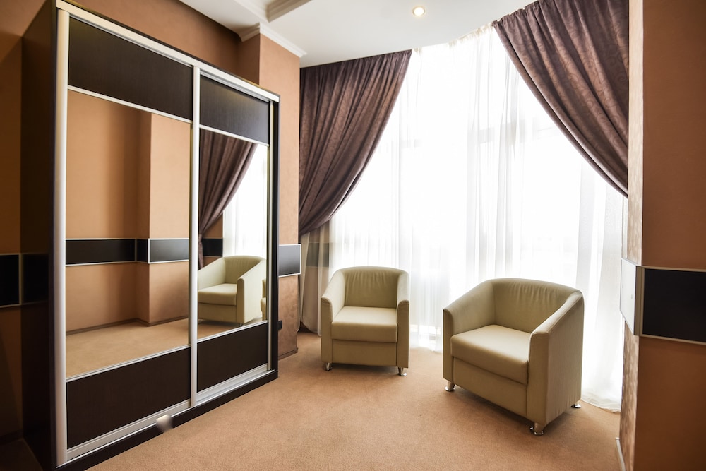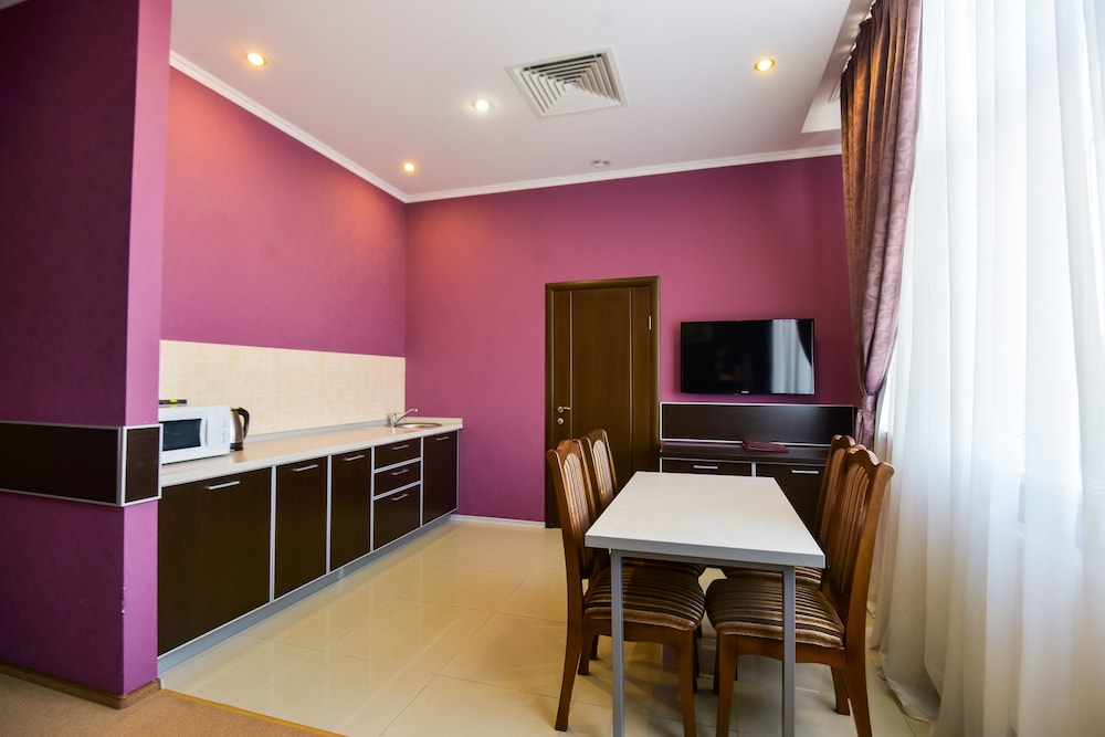 We’ve stayed in large 2 bedroom apartment! It was clean and cosy, large bathroom as well. Helpful staff, sorted out small problems we had fast enough. Restaurant is opened 24/7 so it’s pretty good thing for those who arrive late and food is tasty, btw. They have interconnection with spa centre which quite popular among local people. Overall, I do recommend stay here if You prefer good hotel instead of good location. It takes about 5min with taxi to get to nearest metro station if You’re on a budget. Advice for first timers in Kiev - DO NOT forget to ask somebody in hotel how much does it cost roughly to get somewhere otherwise You could be charged 10 or even more times as it used to be or You can take hotel’s taxi which is bit more expensive! So, if it’s not about location this hotel score 4,5/5 from me easily.