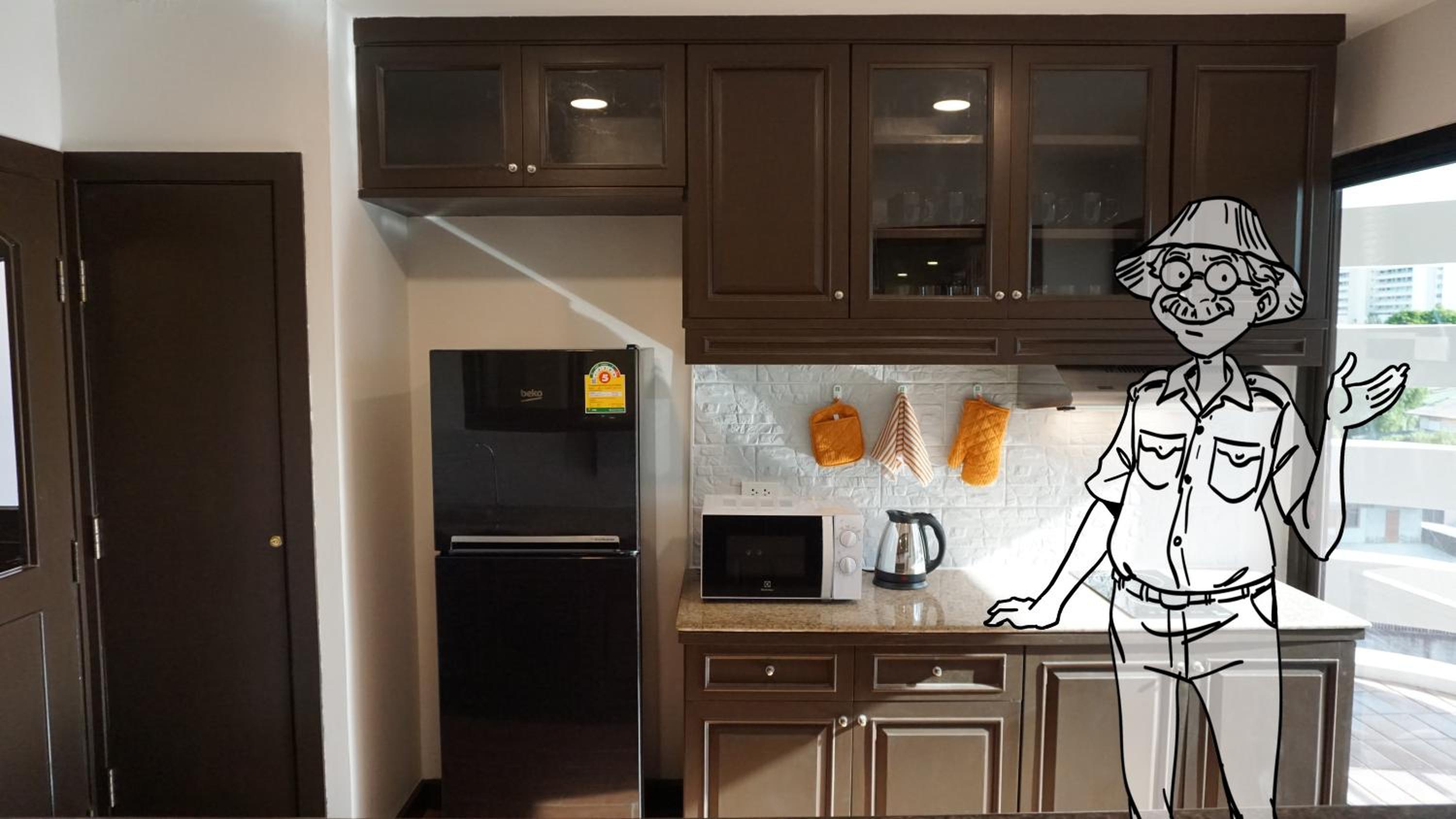 Handy location to transport (long distance train station 10 min taxi), Metro line lines a short walk (10-15 min away). Great vibe, large room and very friendly helpful staff. 2 min walk to 7-11 and street food options. Good bathroom with decent shower. Quirky vibe with characters and cartoons around the place. Breakfast was good (although a little cold when we got there at 8:30). We returned to stay a second time after a week away.