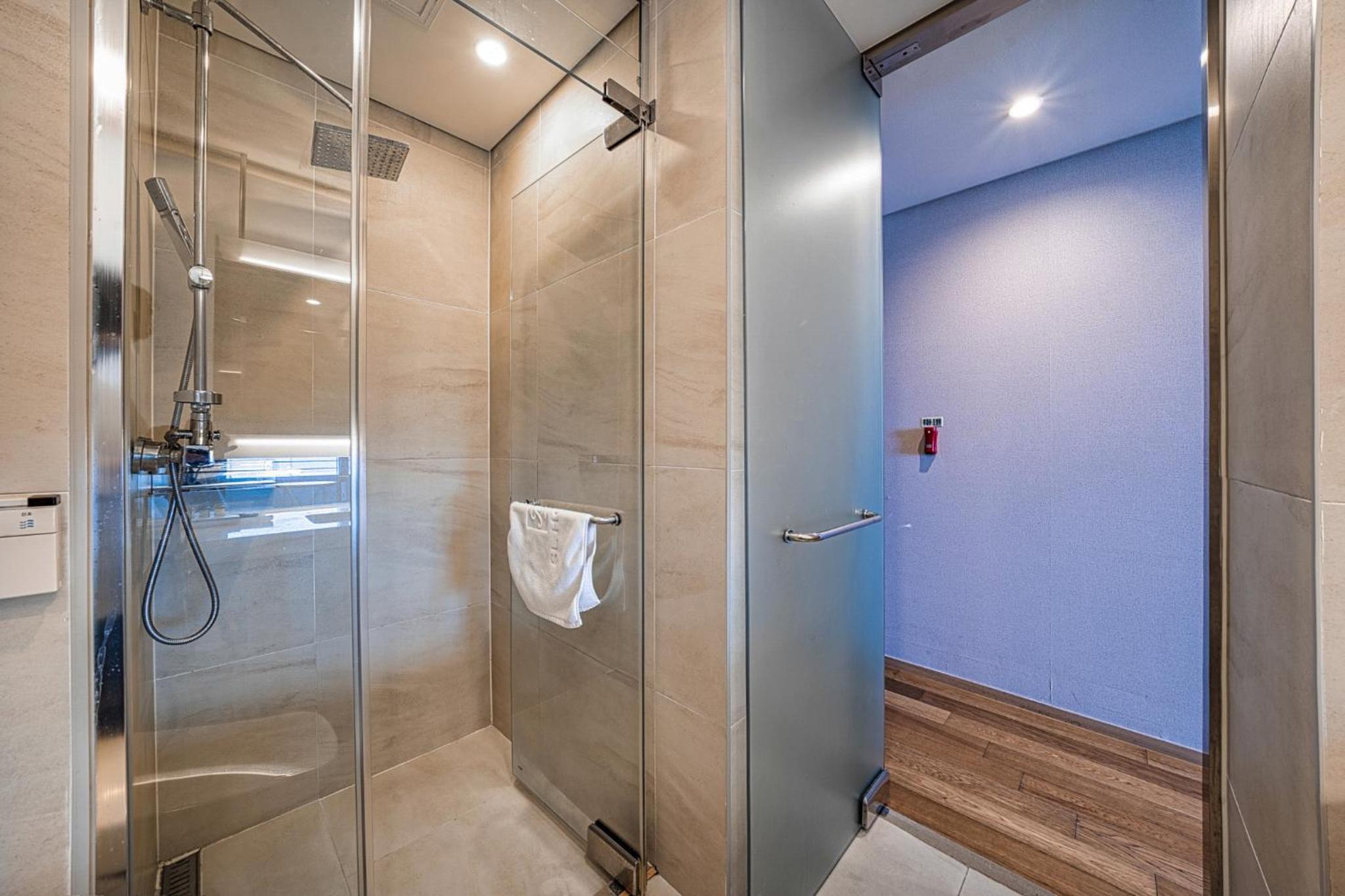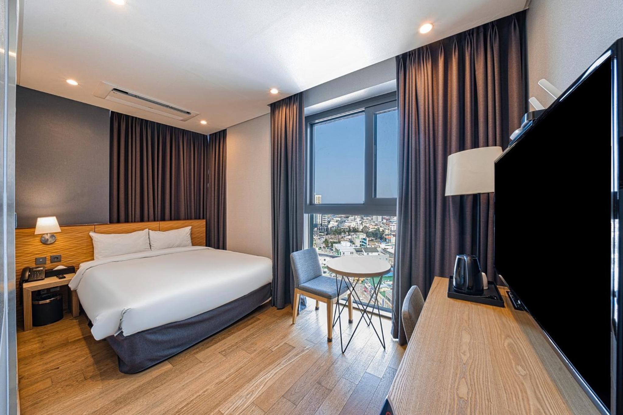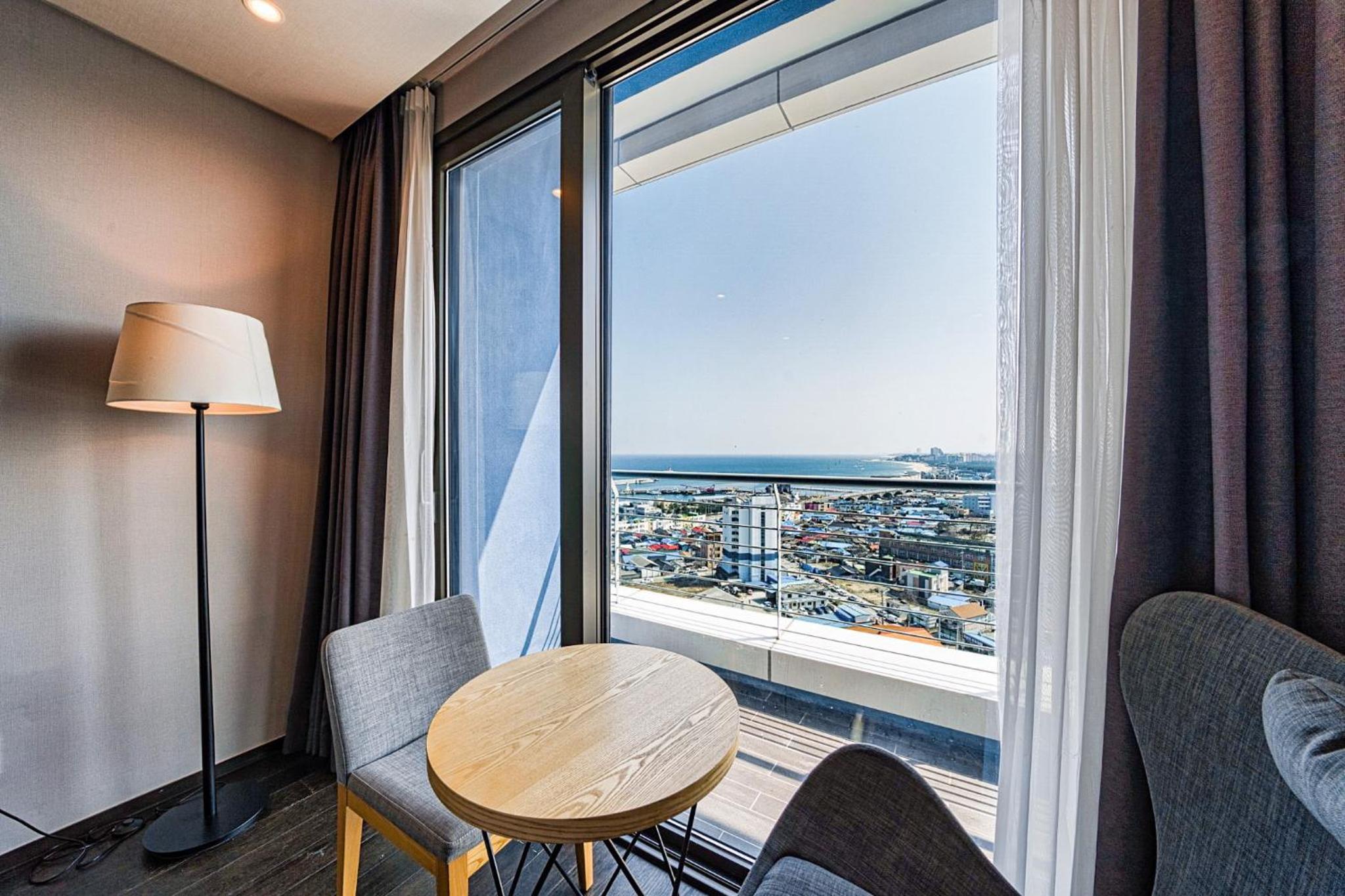 The rooms at Seabay Hotel Gangneung are designed for relaxation and feature a cozy seating area. Each room is equipped with a desk, a flat-screen TV, and a private bathroom, providing guests with a perfect retreat after a day of exploration.