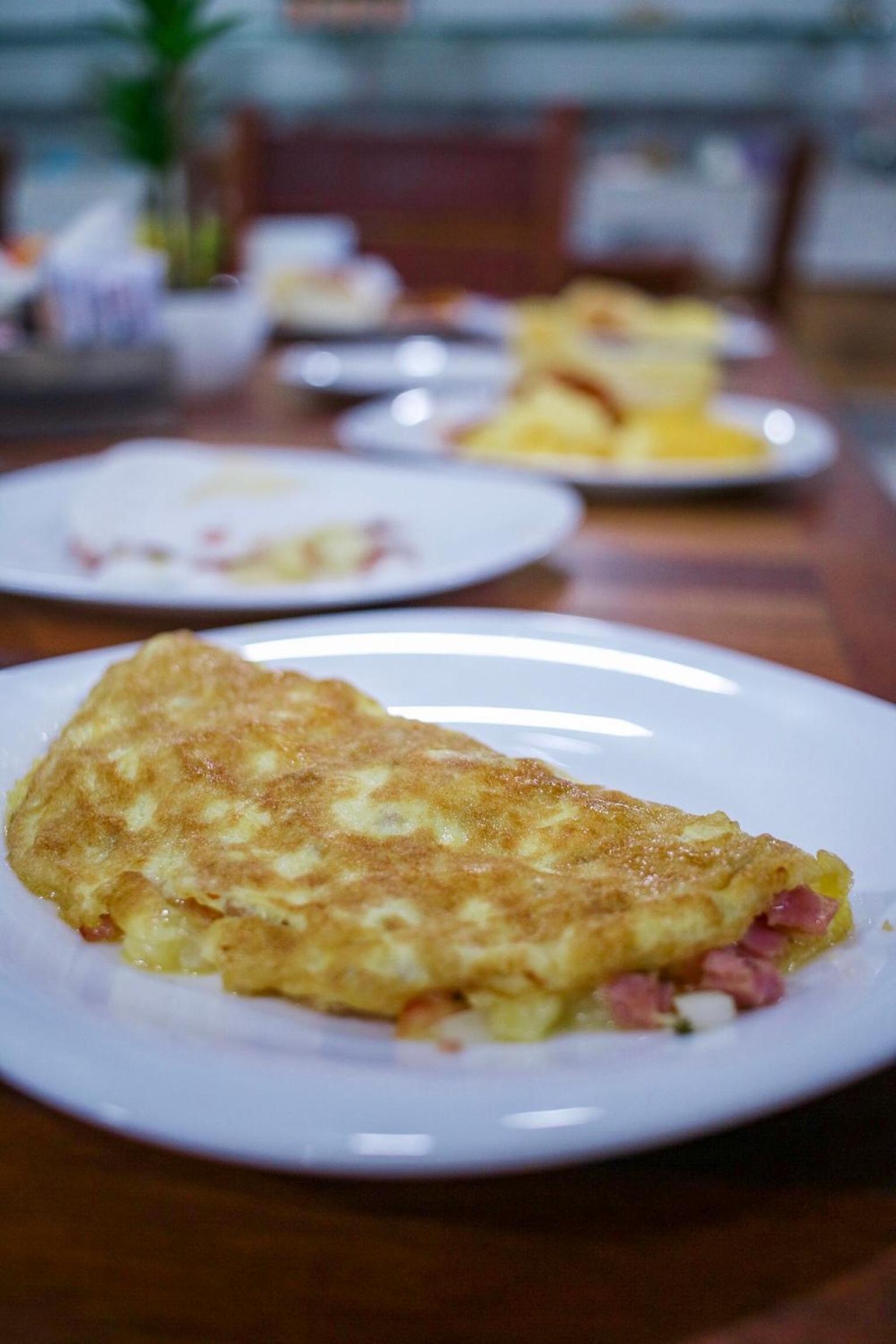 Café da manhã excelente, bem variado, com frutas diversas, sucos, salgados e ainda com opção de pedidos especiais. O quarto é bem grande e comporta bem uma família grande.