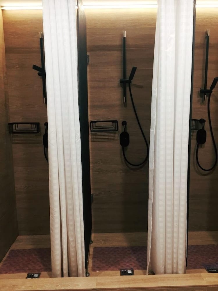男性更衣室にはシャワーが3つ、トイレが2つ、洗面台が2つありました。ドライヤーが付いてましたが、1分くらいで自然に止まり、しばらく経たないと使えませんでした。また、22時以降だとシャワーのお湯が出ませんでした。シャンプーやボディーソープ等は置いてません。
