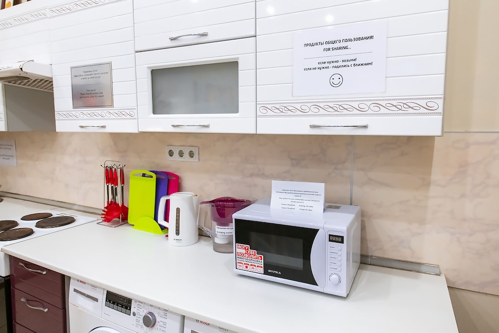 사용할 수 있는 부엌도 있고 공용 냉장고(약간 음쓰냄새가 나지만)도 있습니다. 클레버 마켓같은 마켓이 가까이에(레닌동상 근처) 있구요.