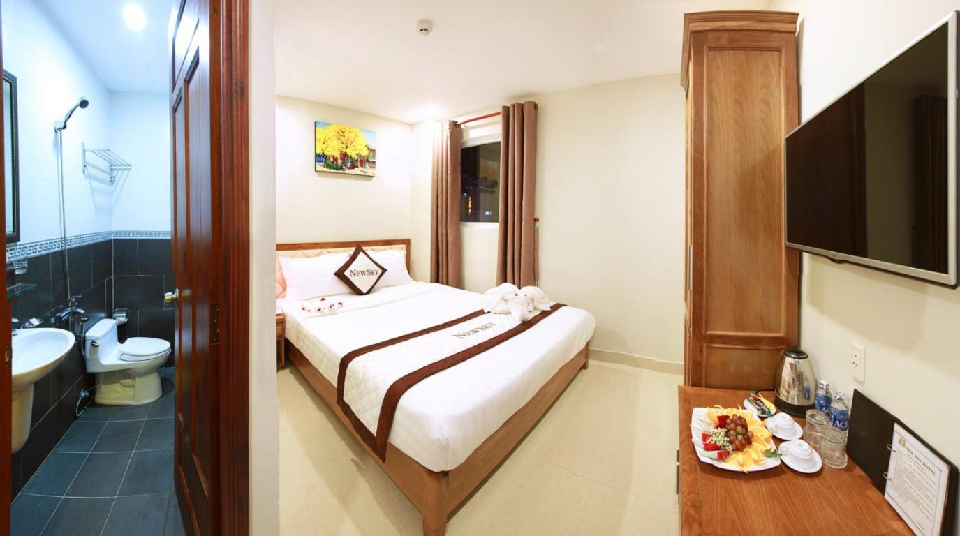 New Sky Hotel in Da Nang offers a 2-star beachfront accommodation with a garden, shared lounge, and terrace. Enjoy room service, a restaurant, and free WiFi. The hotel provides a 24-hour front desk, airport transfers, and a shared kitchen for your convenience.