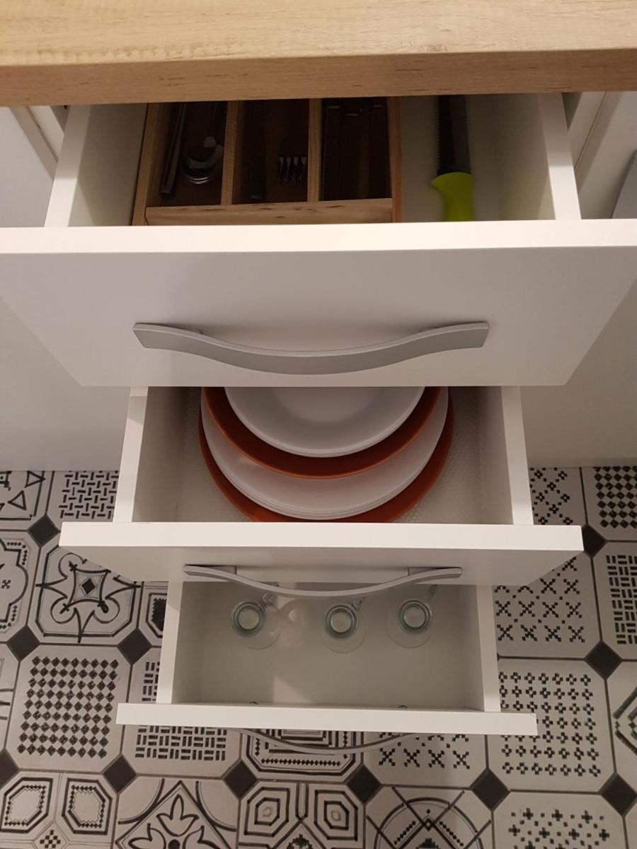 Köksbordet var väldigt slitet samt köksbänken. Toaletten gick inte att stänga av, den rann hela natten. De lovade att laga den men det blev inte gjort. Vi kunde inte koka vatten till kaffet för spisen var sönder. Det löste sig med att vi fick hämta varmvatten i receptionen.