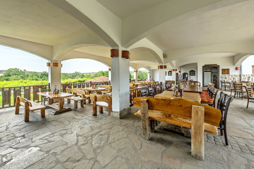 An amazing place with five beautiful mineral water pools made in style of the Thracian ruins discovered near by (a must see). The resorts is made in old-fashioned Bulgarian style village with all necessary luxuries of today. Staff was very pleasant. Food and wine were great. A great place for girlfriends get together (multiple spas with all kinds of services incorporating wine). There were several corporate tram building events going on while we were there. I wish my company would send us to such places. We were there with our kids and my Mom. They loved it. Of all places we visited in Bulgaria this is the place I would definitely go back to. Visiting the Thracian temple and grave built 2500 years ago with unexplainable engineering skills topped the great experience.