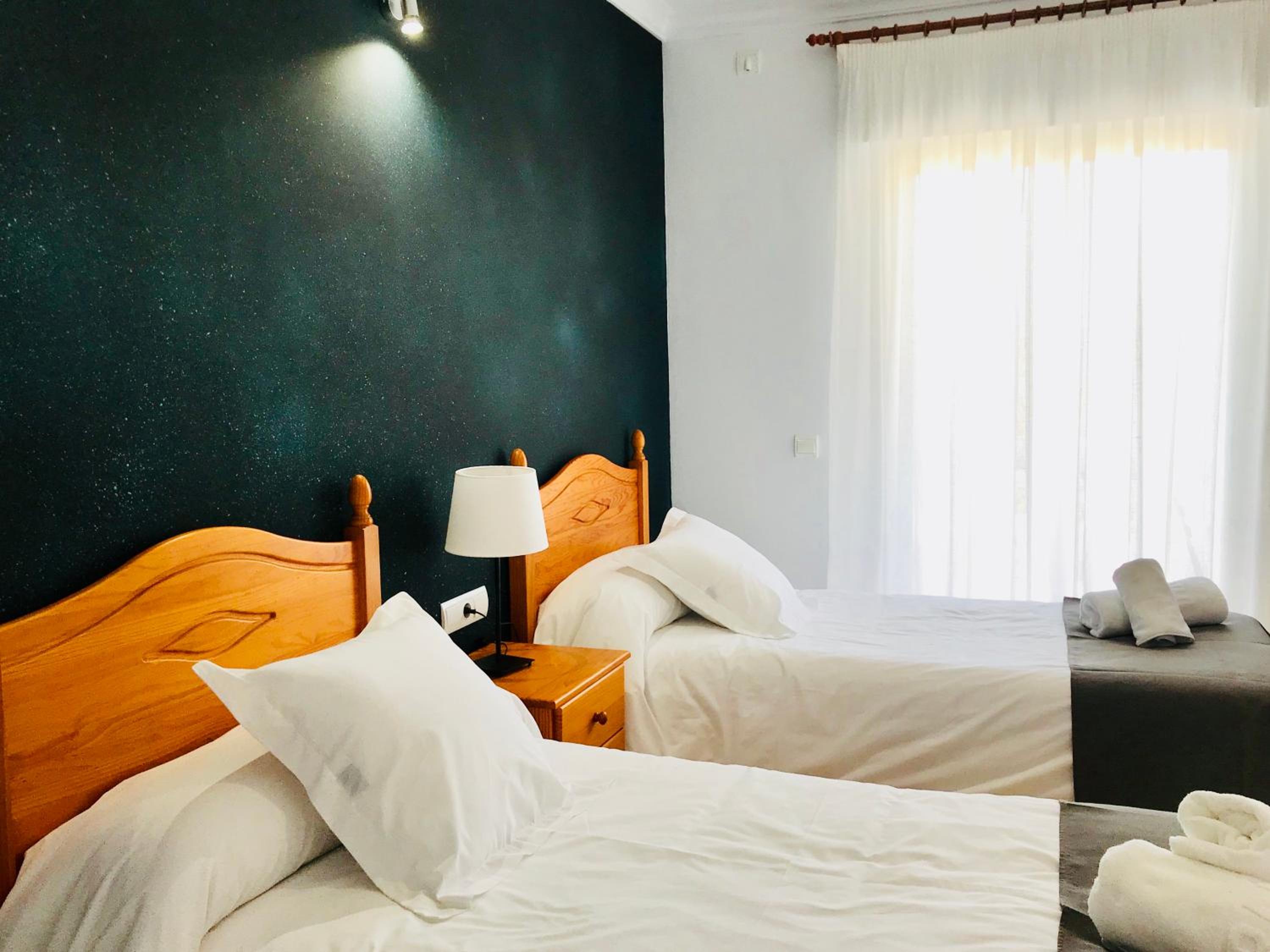Habitación amplia. Con balcón y muy buenas vistas a la sierra y al pueblo. Se puede aparcar al lado del hotel. Dos bares muy cercanos donde desayunar, comer ....