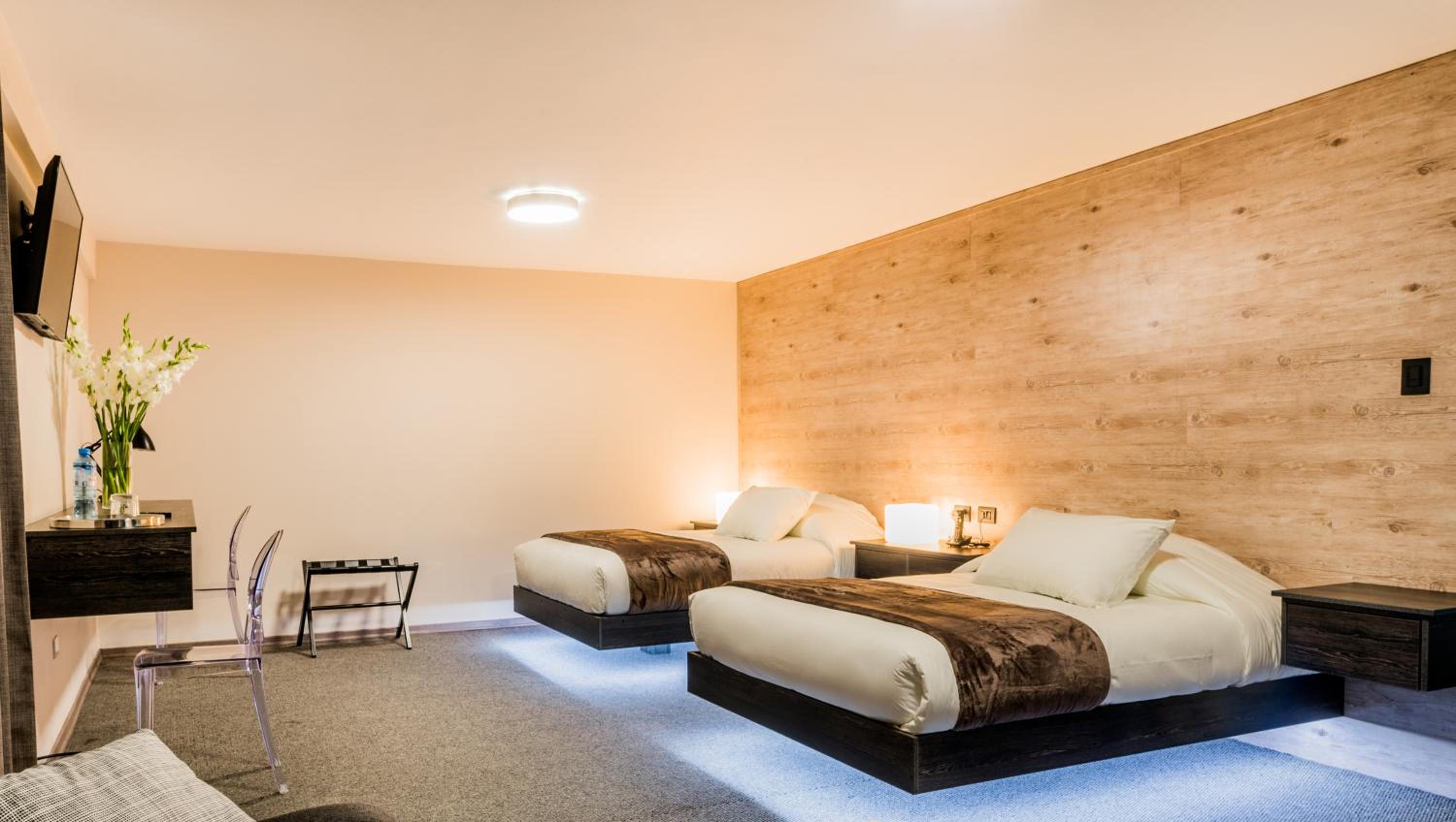 Indulge in the comfort of rooms equipped with ceiling-mounted rainfall shower heads, night light underneath the beds, and modern amenities like LCD TVs and digital door locks.