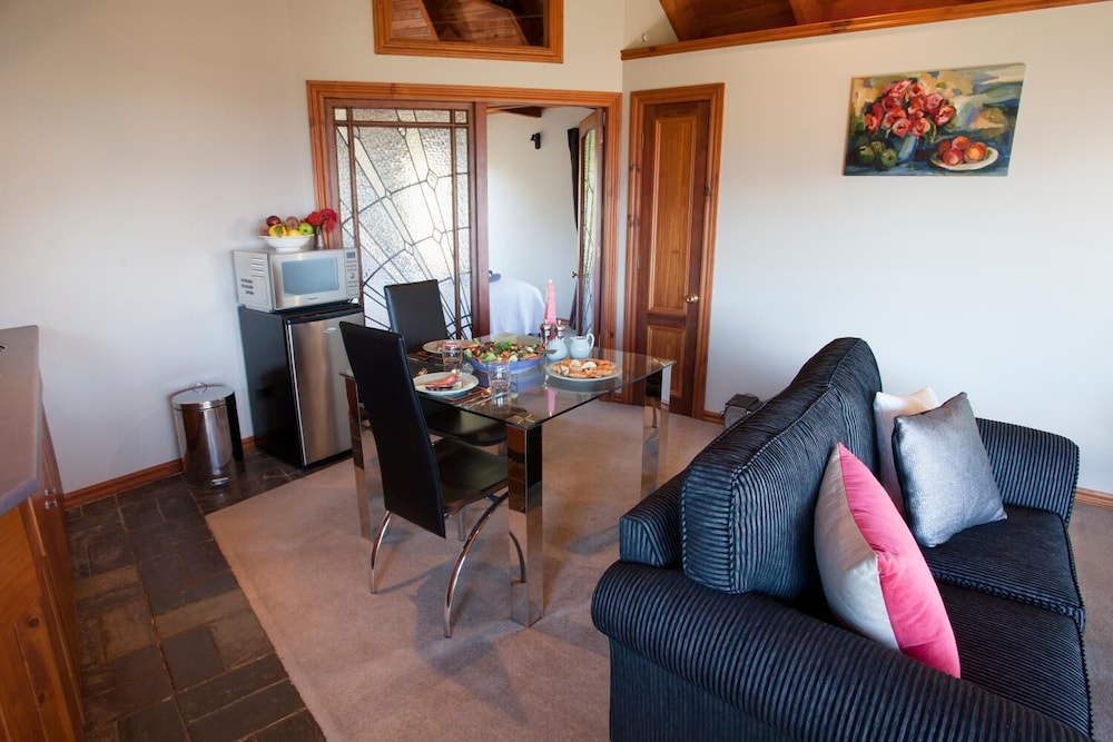 This is a beautiful apartment right at the top of a hill, the steep and narrow driveway is the price you pay for the amazing view over Wanaka and the lake. Plenty of space and all mod cons including a laundry. As others have said, the breakfast is quite something, freshly prepared cooked food plus orange juice, toast and fruit, nuts and yogurt, delicious and enough that I didn't need lunch! The hosts were very helpful, especially over a problem with the water supply to the house and apartment on my second morning. It was addressed in such a way as to cause me the minimum of inconvenience, and I got a discount on the room rate as well to make up fror it. Great customer care :)