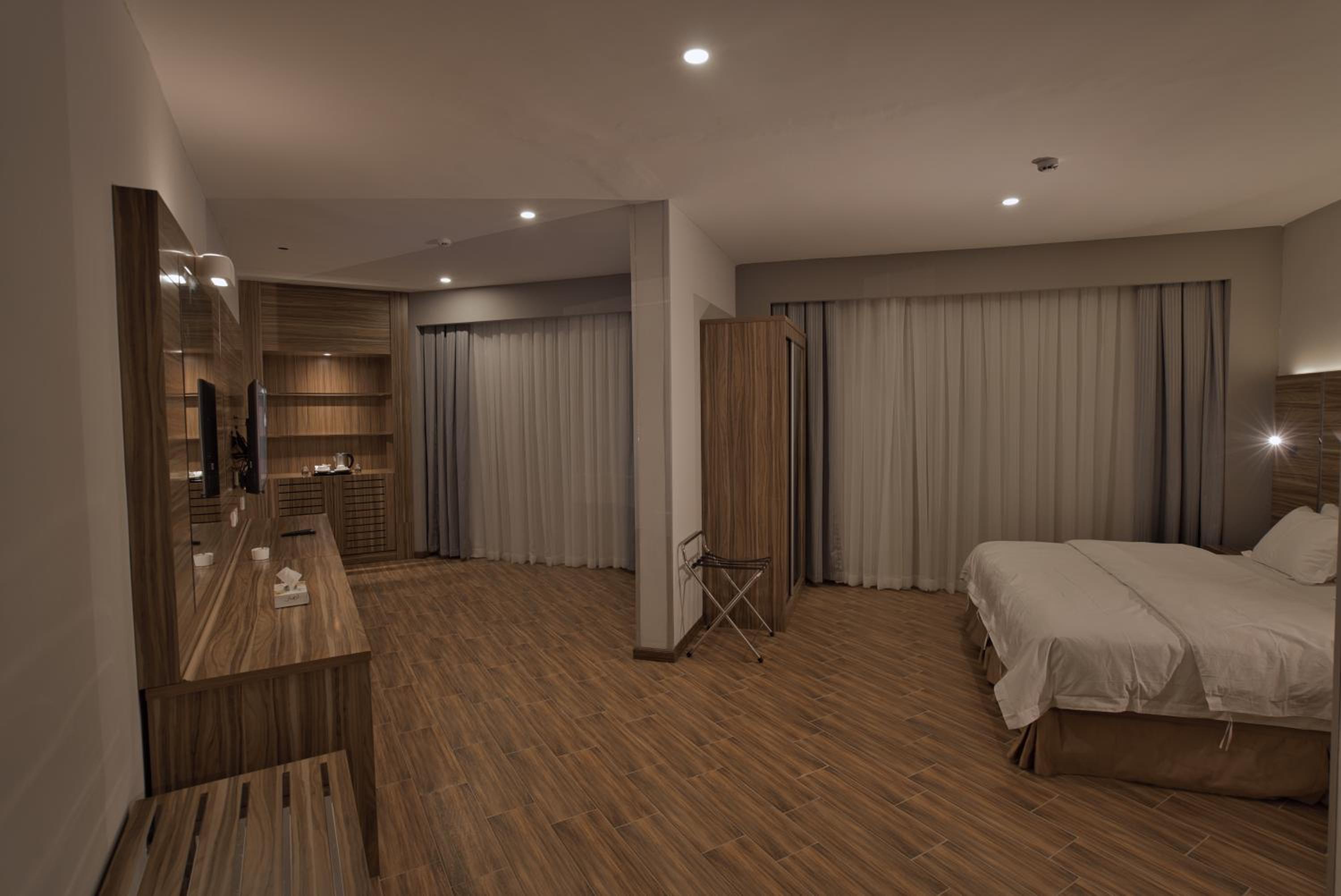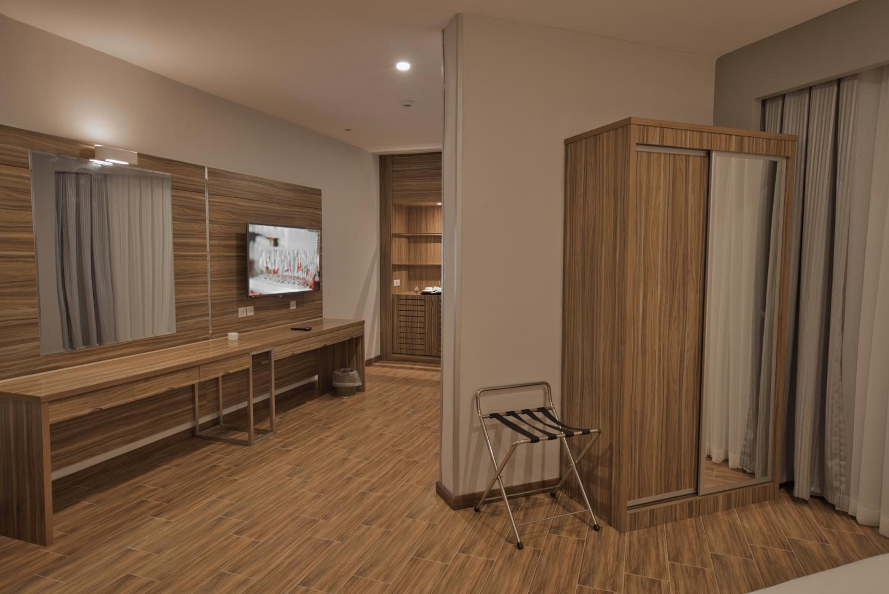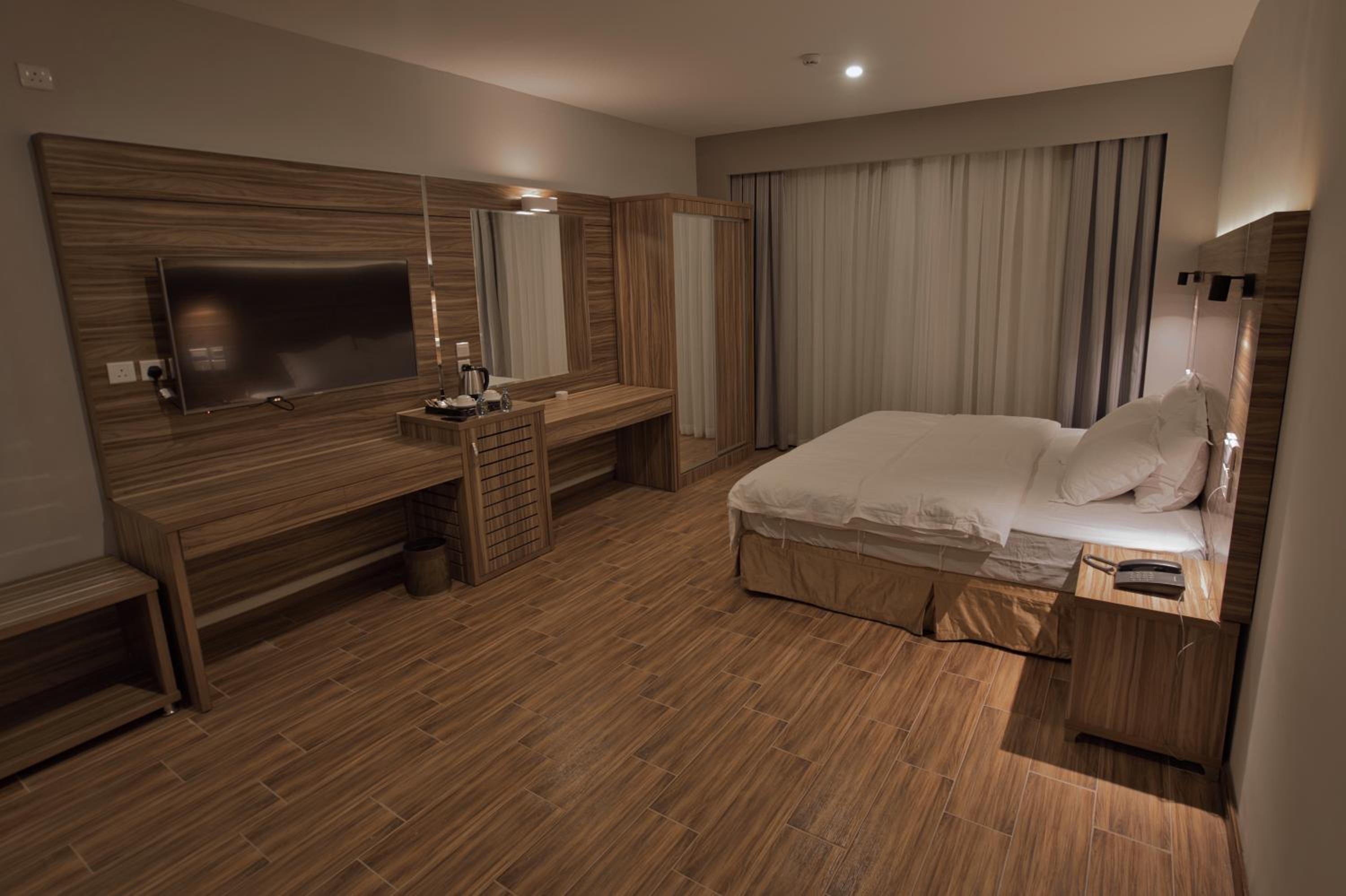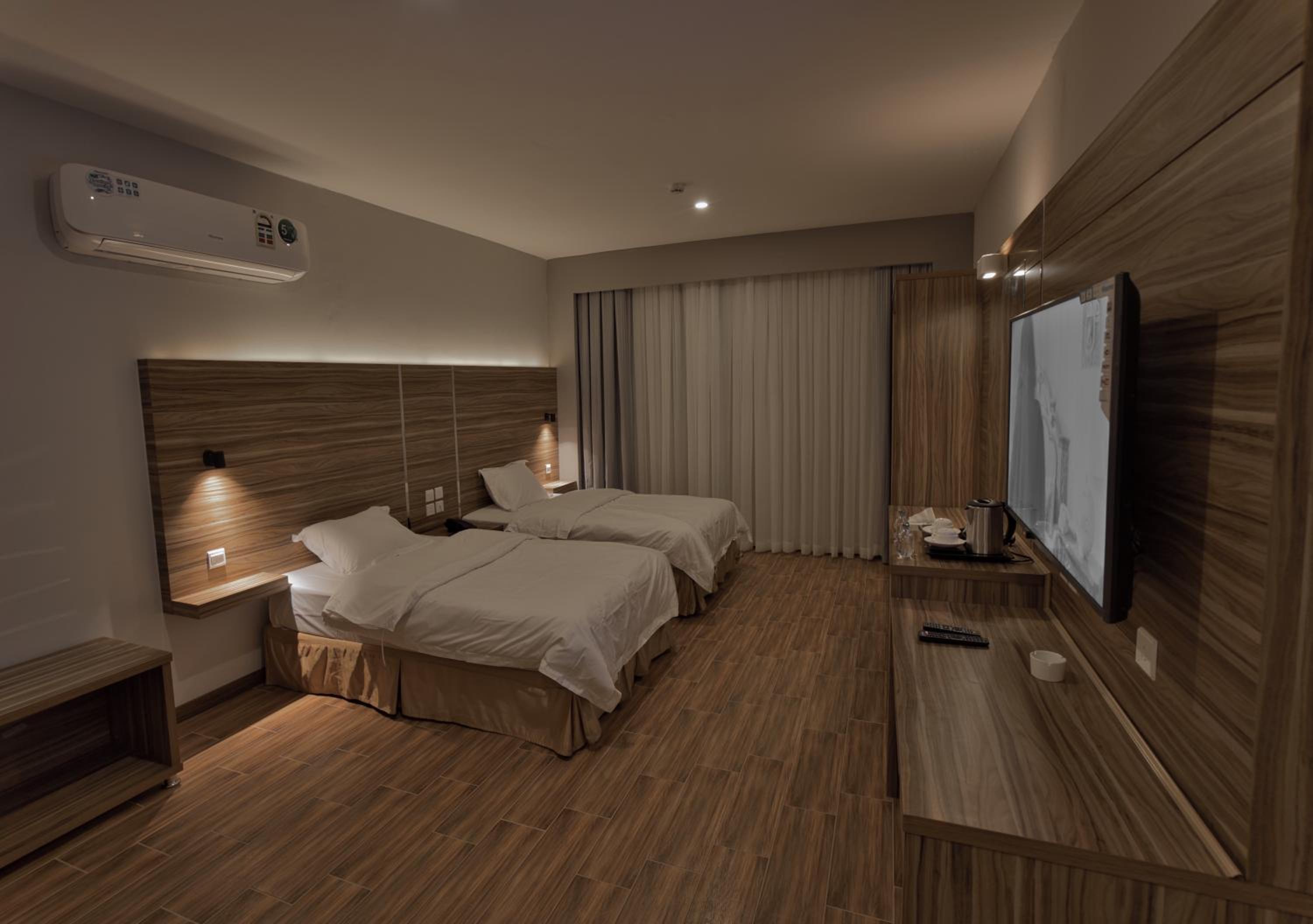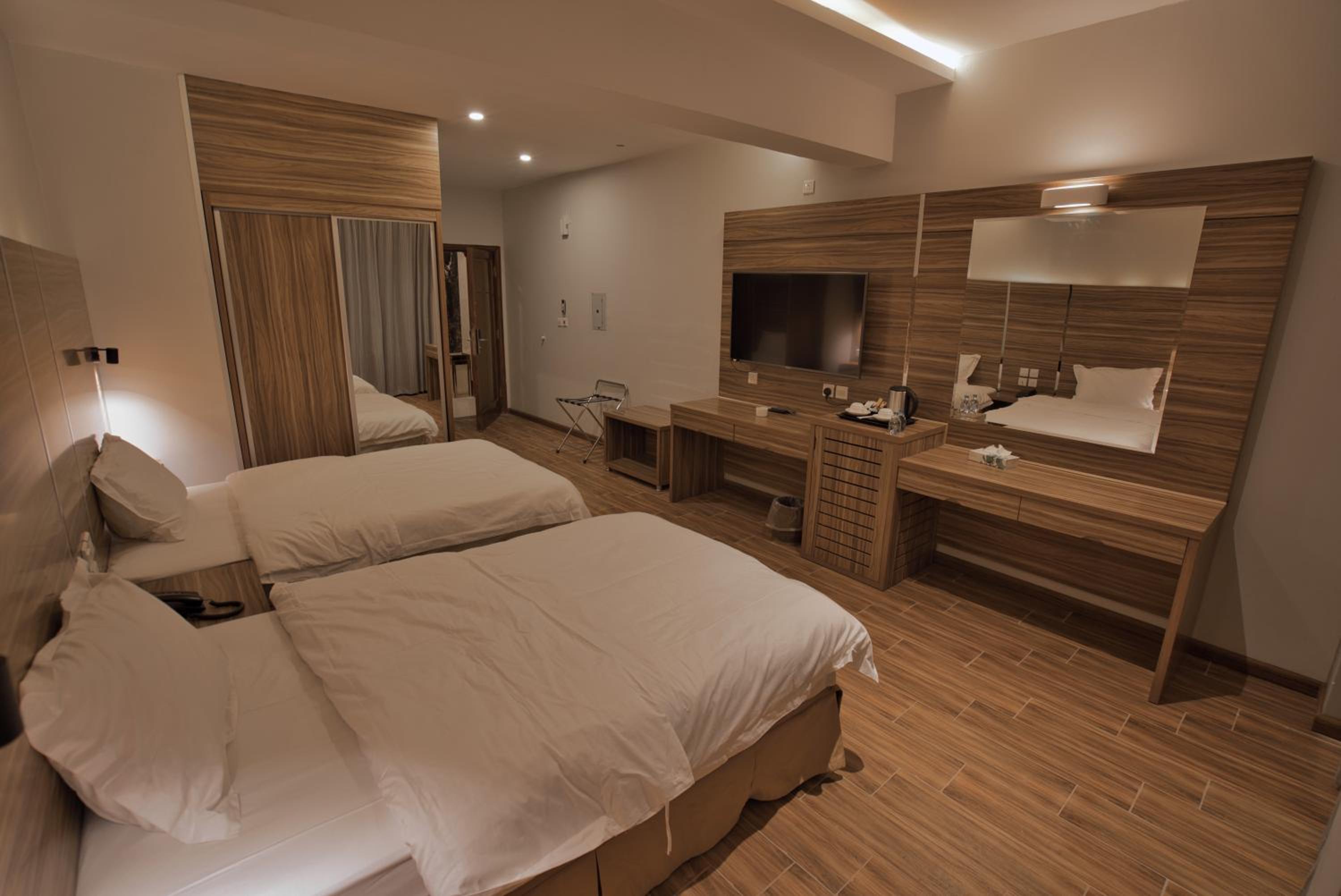 Experience modern and luxurious rooms at the SAS RTL Hotel Medina, designed in warm colors to create a calming atmosphere. Each room features a 55-LED screen, leather seating, a mini bar, and a private bathroom for your comfort and convenience.