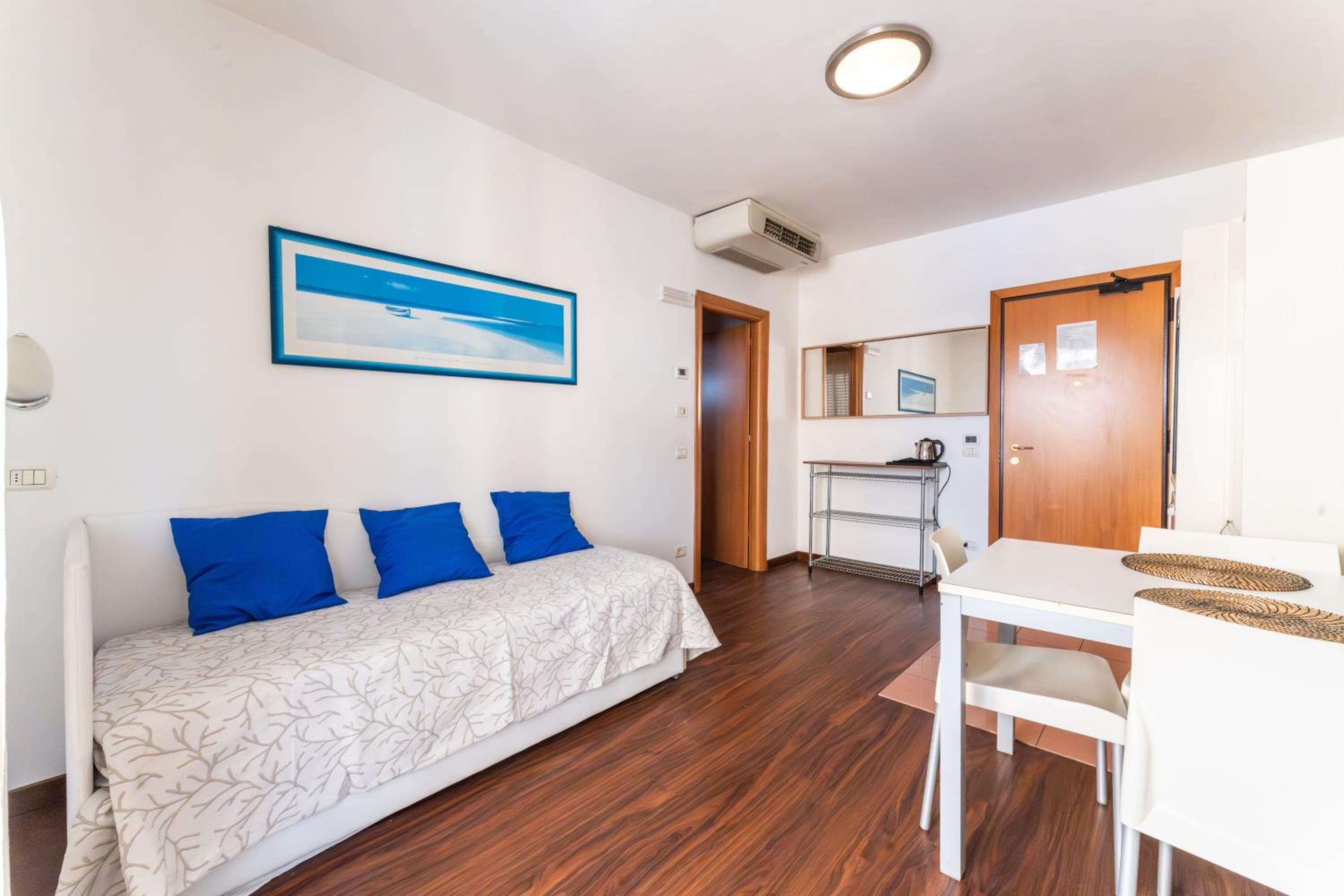 Hat éjszakát töltöttünk itt, jól éreztük magunkat. 3 percre a strandtól, boltok, éttermek kávézók mind van a közelben. A fedett garázs is jó volt de ha alacsony gépkocsival érkezel átlósan menj le mert leér a jármű alja. Az apartman-házhoz lift is tartozik. Fürdőszoba tiszta volt. A franciaágy kényelmes volt. A kanapéágy kevésbé. Jó nagy a terasz étkezni is lehet kint kényelmesen. Hűtő, mikró, klíma és a kávéfőzőn kívűl mi mást nem használtunk, ezek működtek, jók voltak. A recepciós hölgy nagyon segítőkész és jól beszél angolul. Észrevétel, nem kritika, a környék esténként hangos, nyugalom inkább csak éjfél után van.