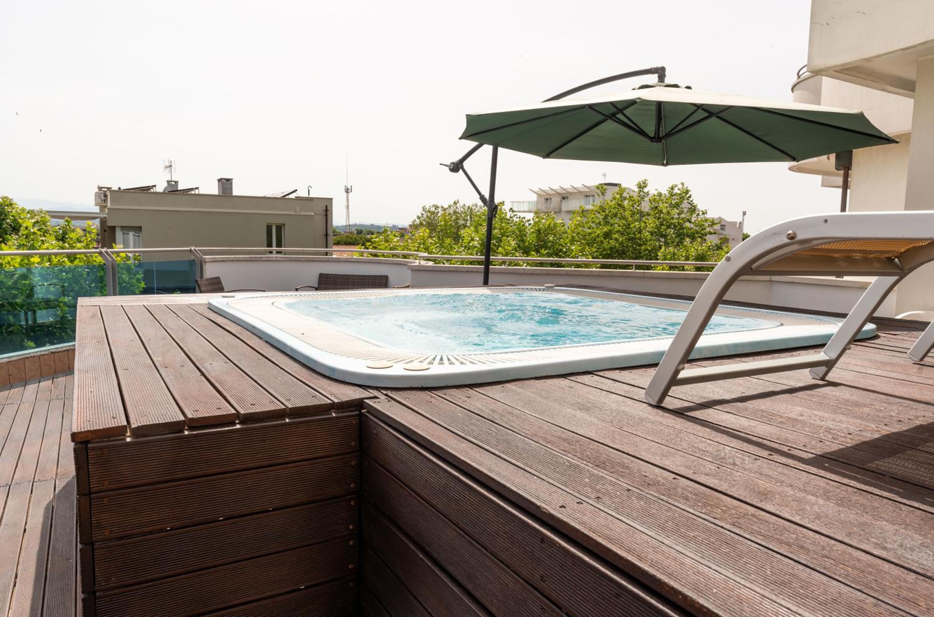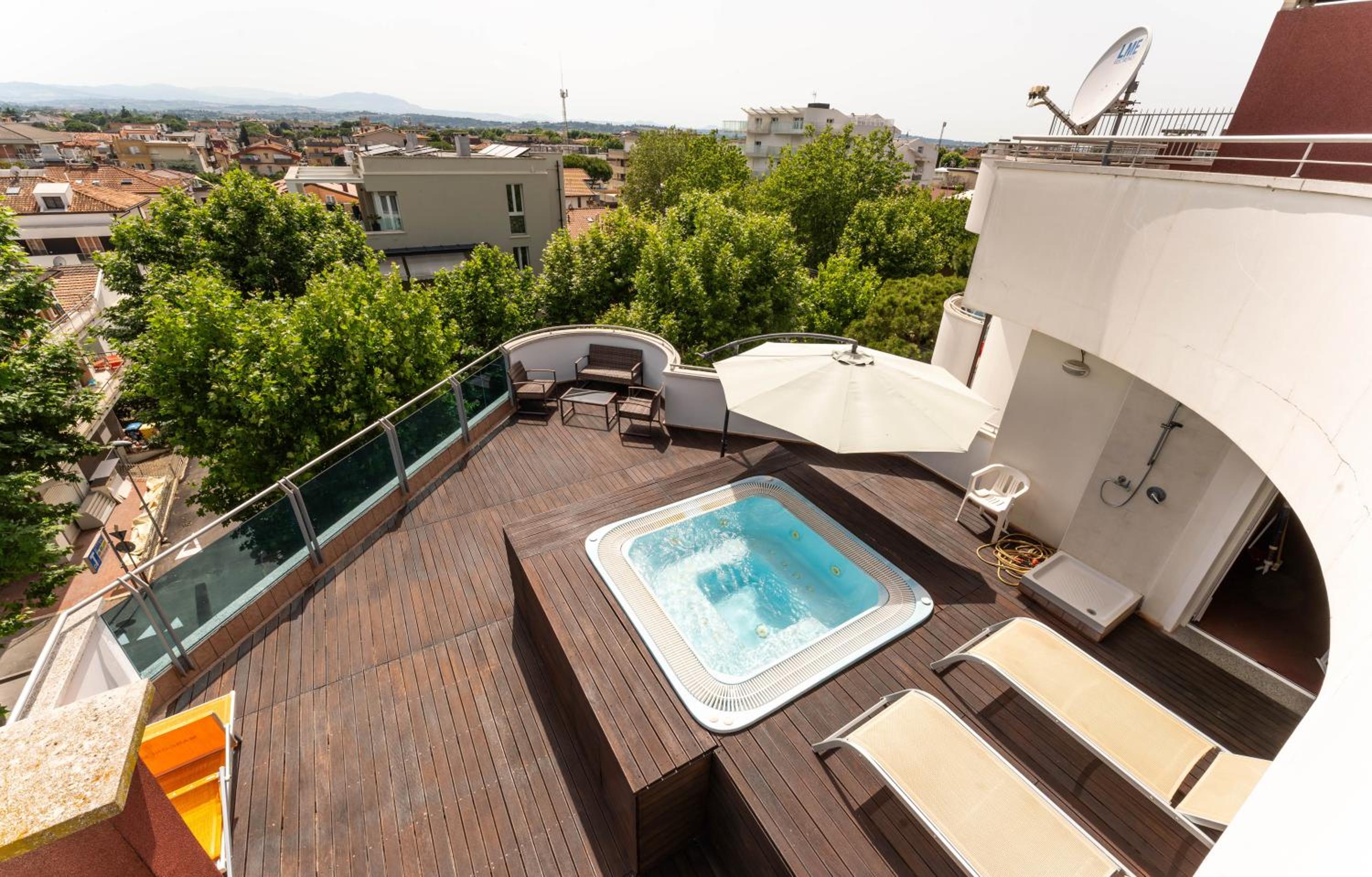 Enjoy stunning views and relax in the hot tub on our panoramic sun terrace, the perfect spot to unwind after a day of exploring Rimini.