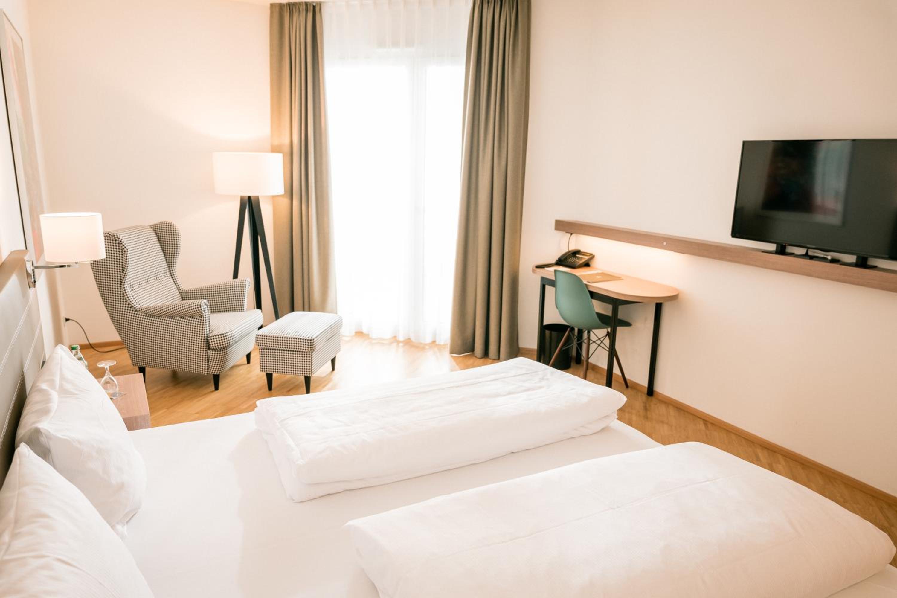 Das Zimmer war etwas zu schmal, um gemütlich um das Bett herumzulaufen (Superior Doppelzimmer Gold). Die Bodenseecard West haben wir erst auf Nachfrage erhalten.