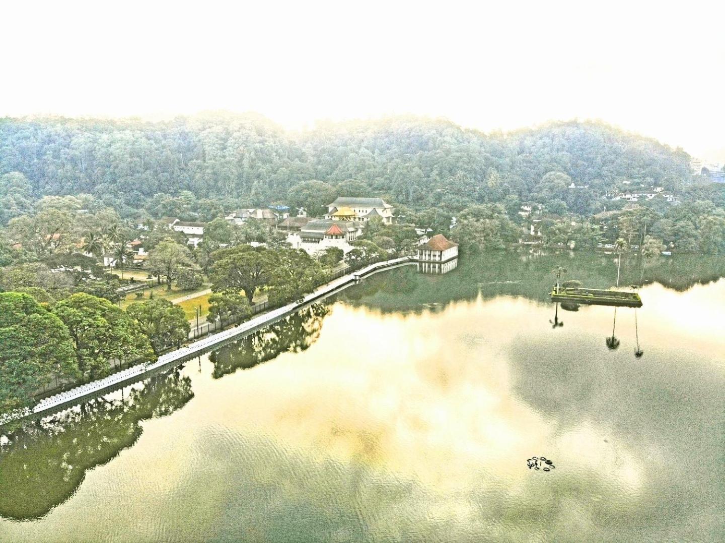 Sehr gute Lage für alle zentralen Plätze rund um Kandy. Blick auf den Zahn-Tempel direkt am See,