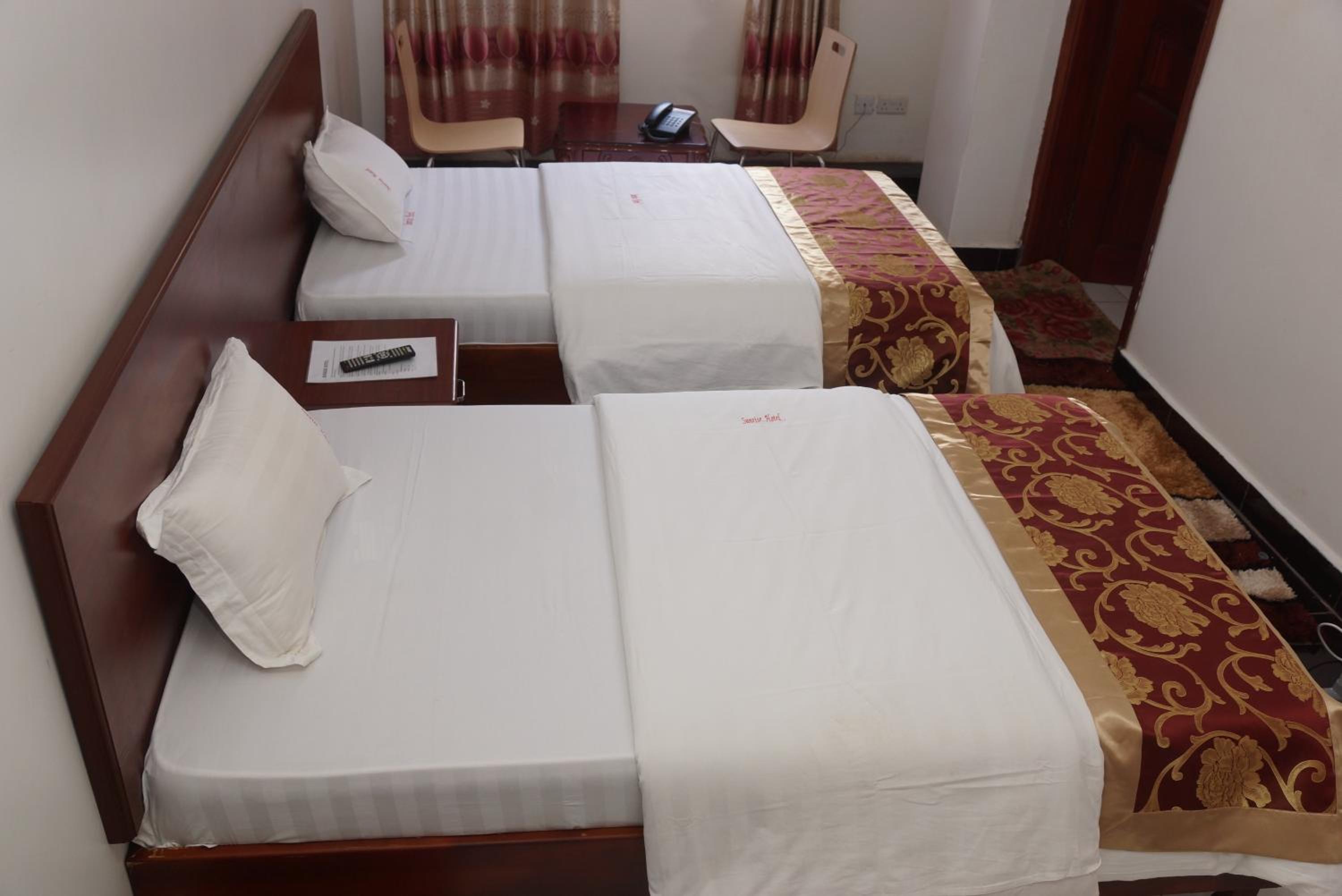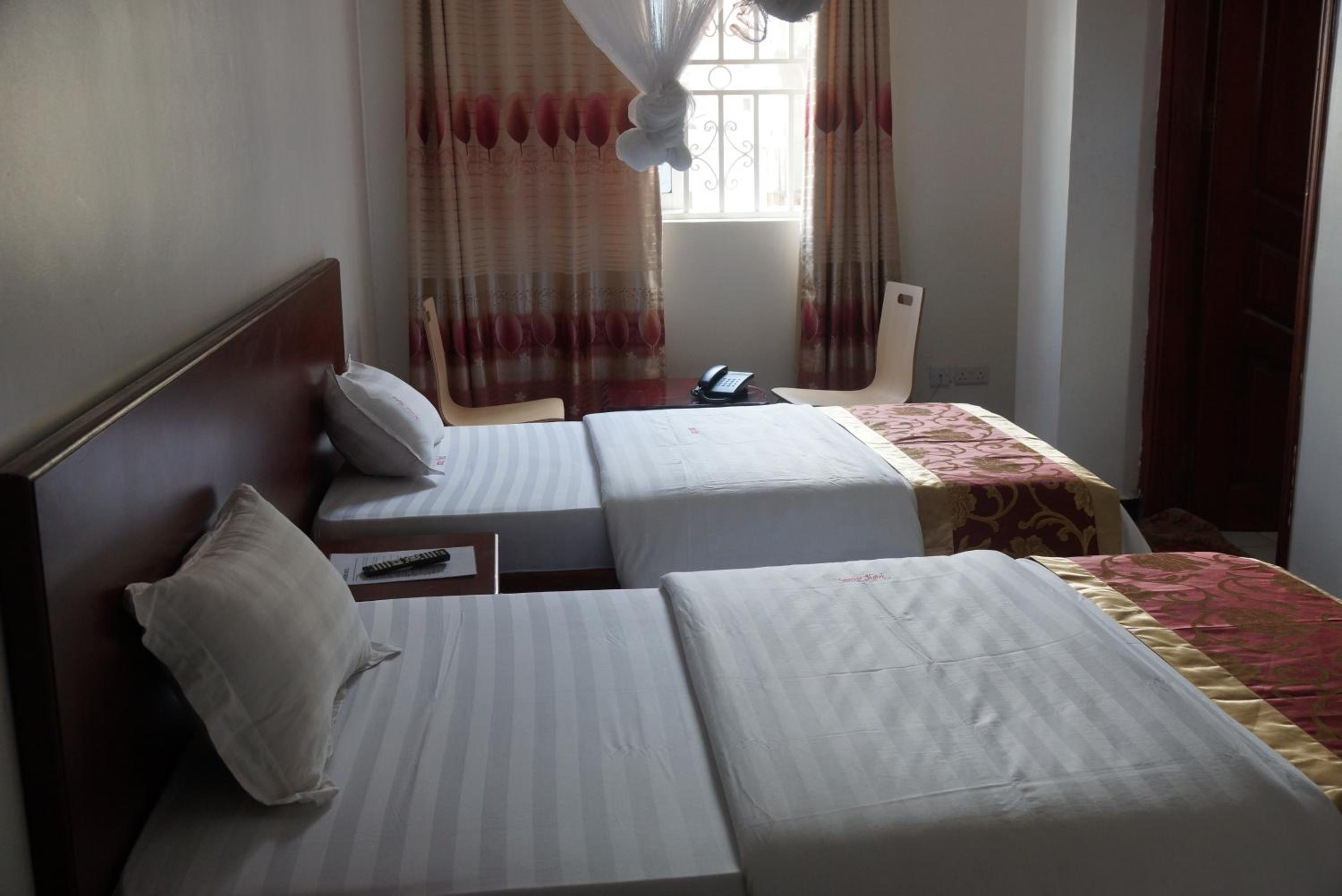 Indulge in comfort at Sunrise Hotel Kampala, where each room is equipped with a flat-screen TV, private bathroom, and cozy seating area for relaxation.