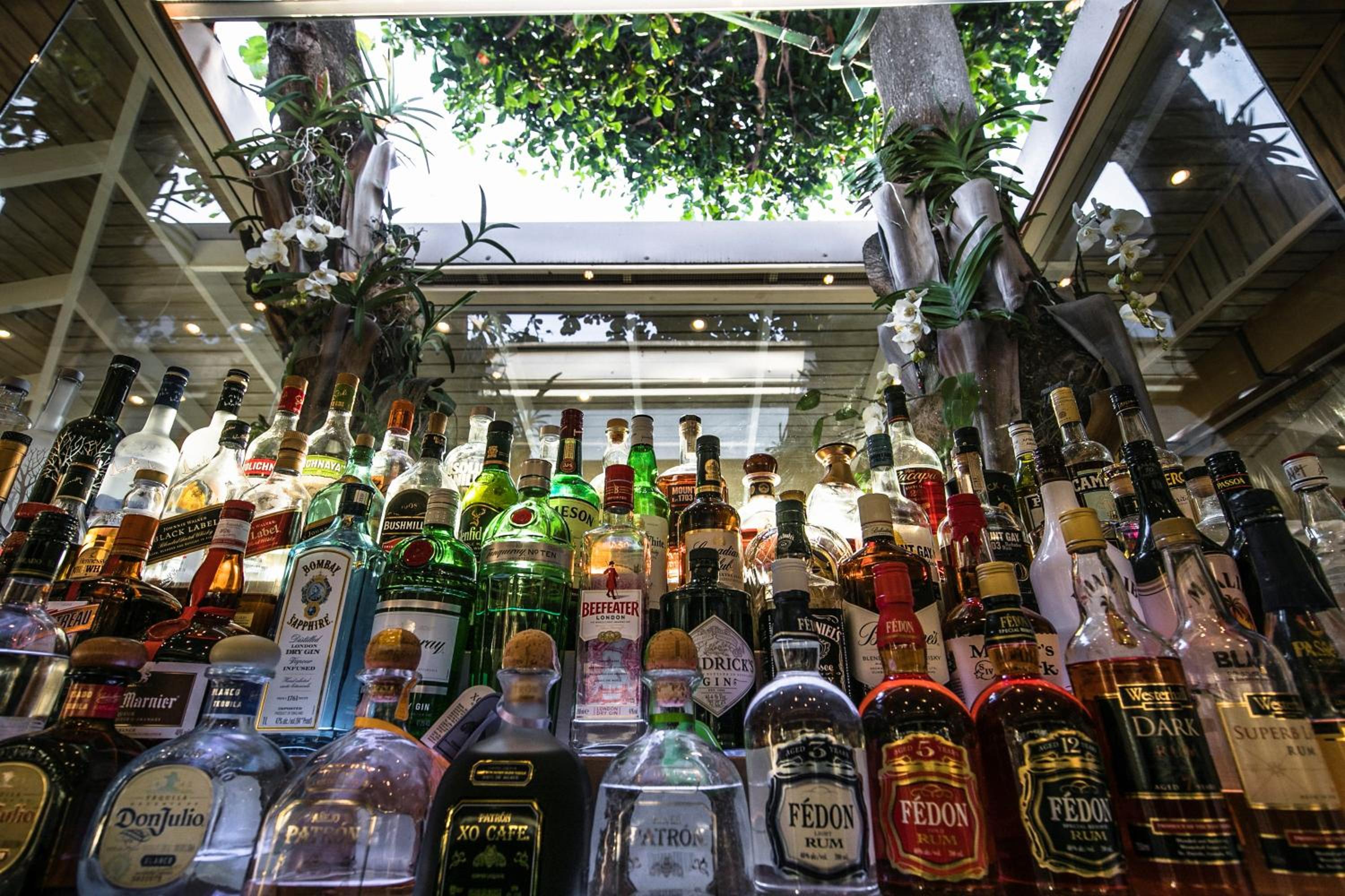 Empty beer bottles around the staircase up to the pool.