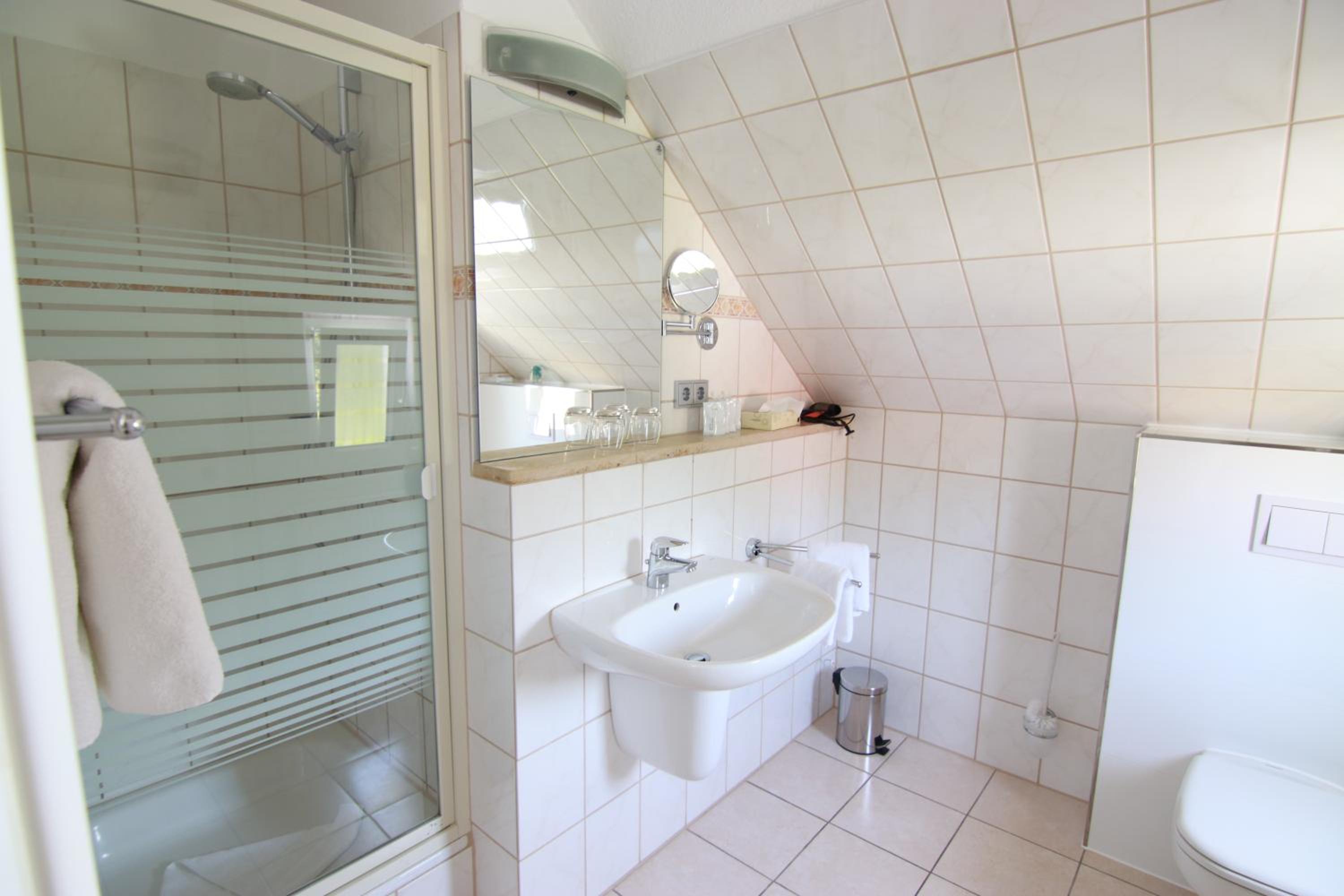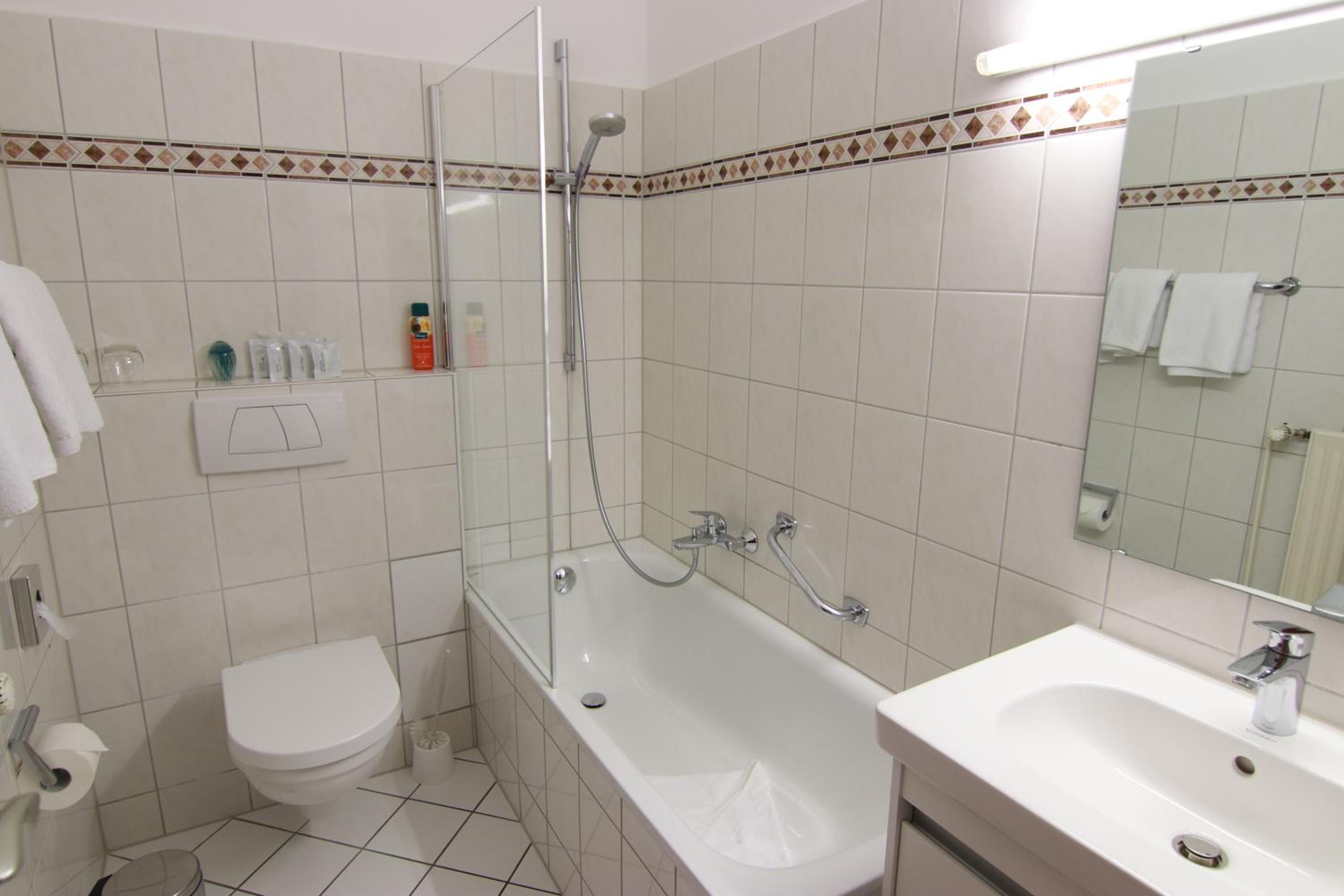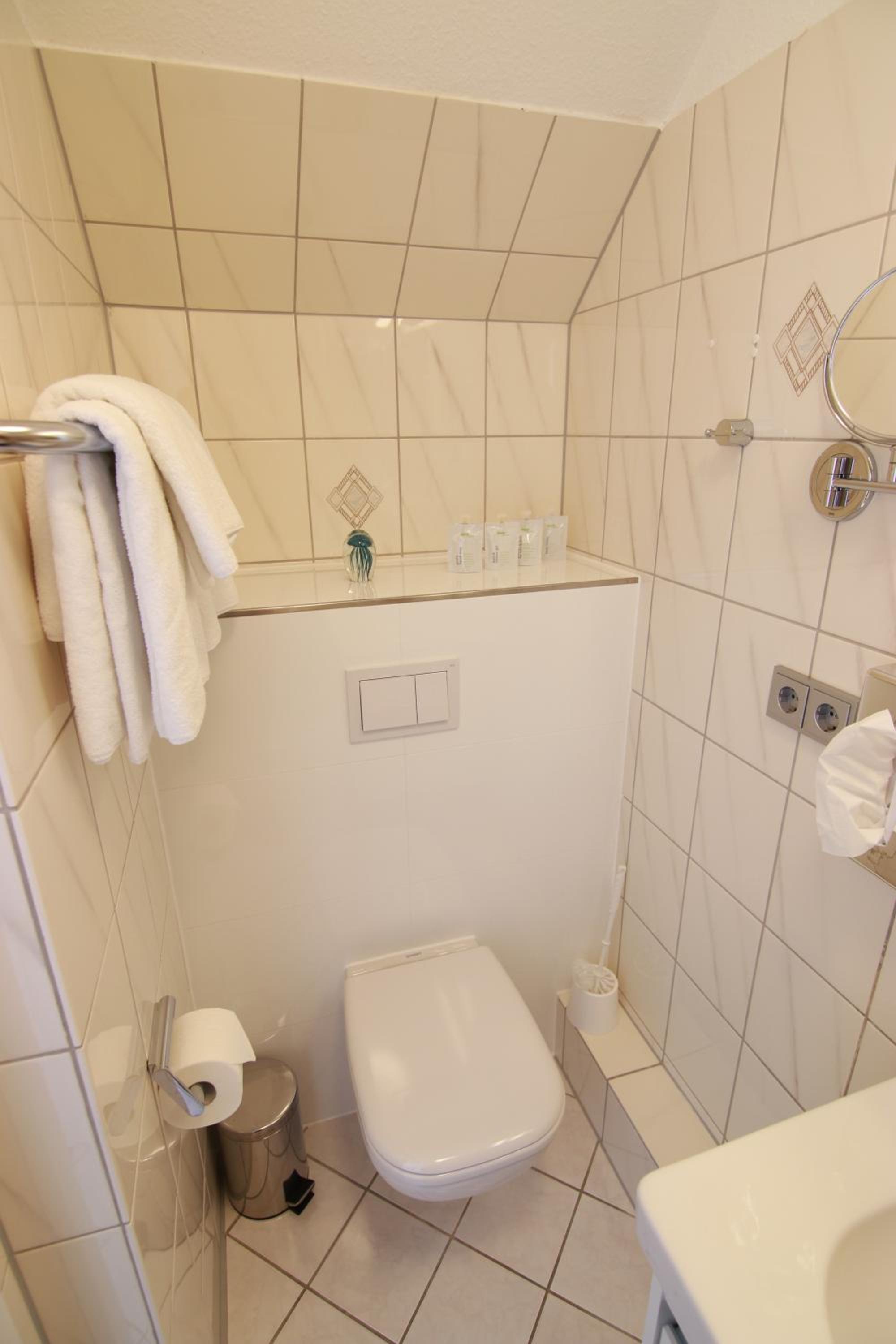 Etaws lieblos,ungepflegtes Anwesen.Heizung total unterdimensioniert.17Grad waren bei Heizstufe 5 zu erreichen. Bad ganz ohne Heizung. Altes Bad dser 80er Jahre mit div.Rissen in den Fliesen.Undichte Fenster. Sehr laut zum Treppenhaus, keinerlei Schallisolierung. Der Balkon war aufgrung von starkem Moosbefall und Grünbesatz nicht zu betreten.Alles in allem ist mir die Note der Hotelbewertung ein Rätzel.