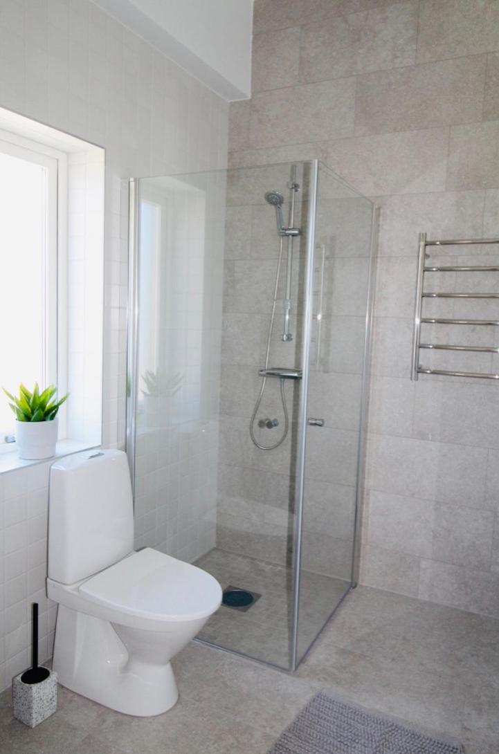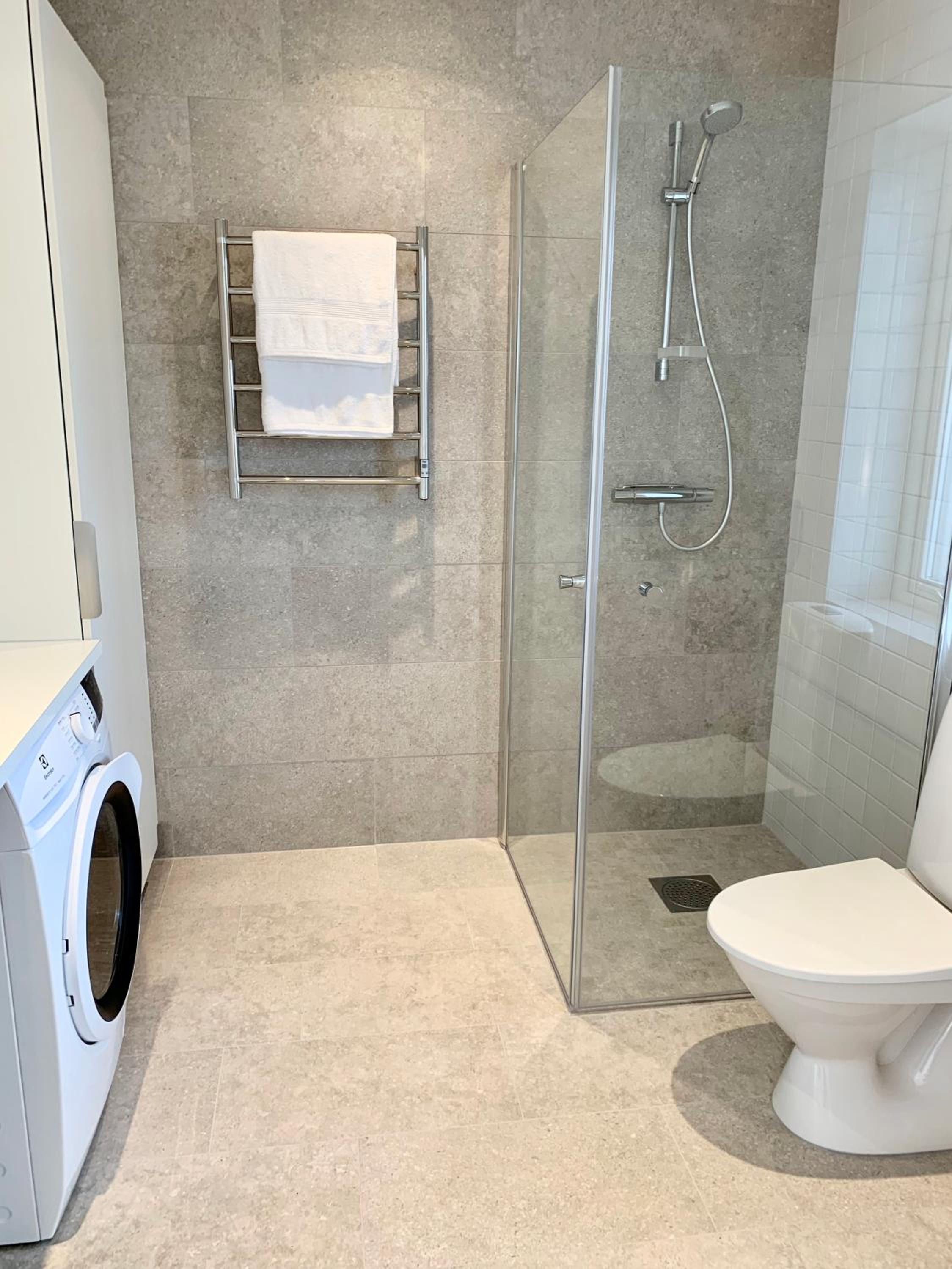 Fräsch lägenhet med helkaklat badrum.