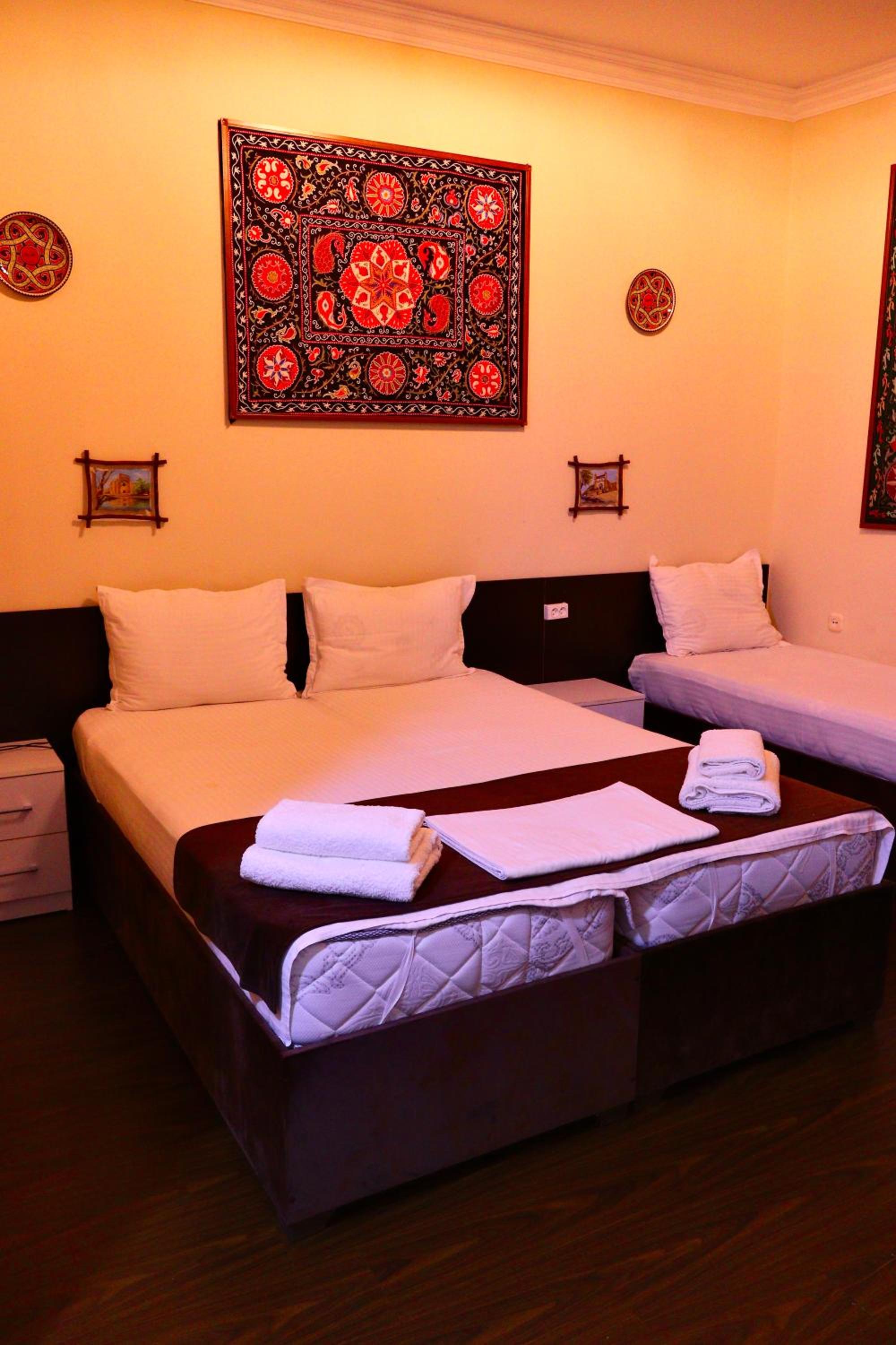 Located in Bukhara, AL BUKHARI Boutique offers elegant guest rooms with modern amenities including air conditioning, flat-screen TVs, and free toiletries. Each room features a private bathroom for ultimate comfort.