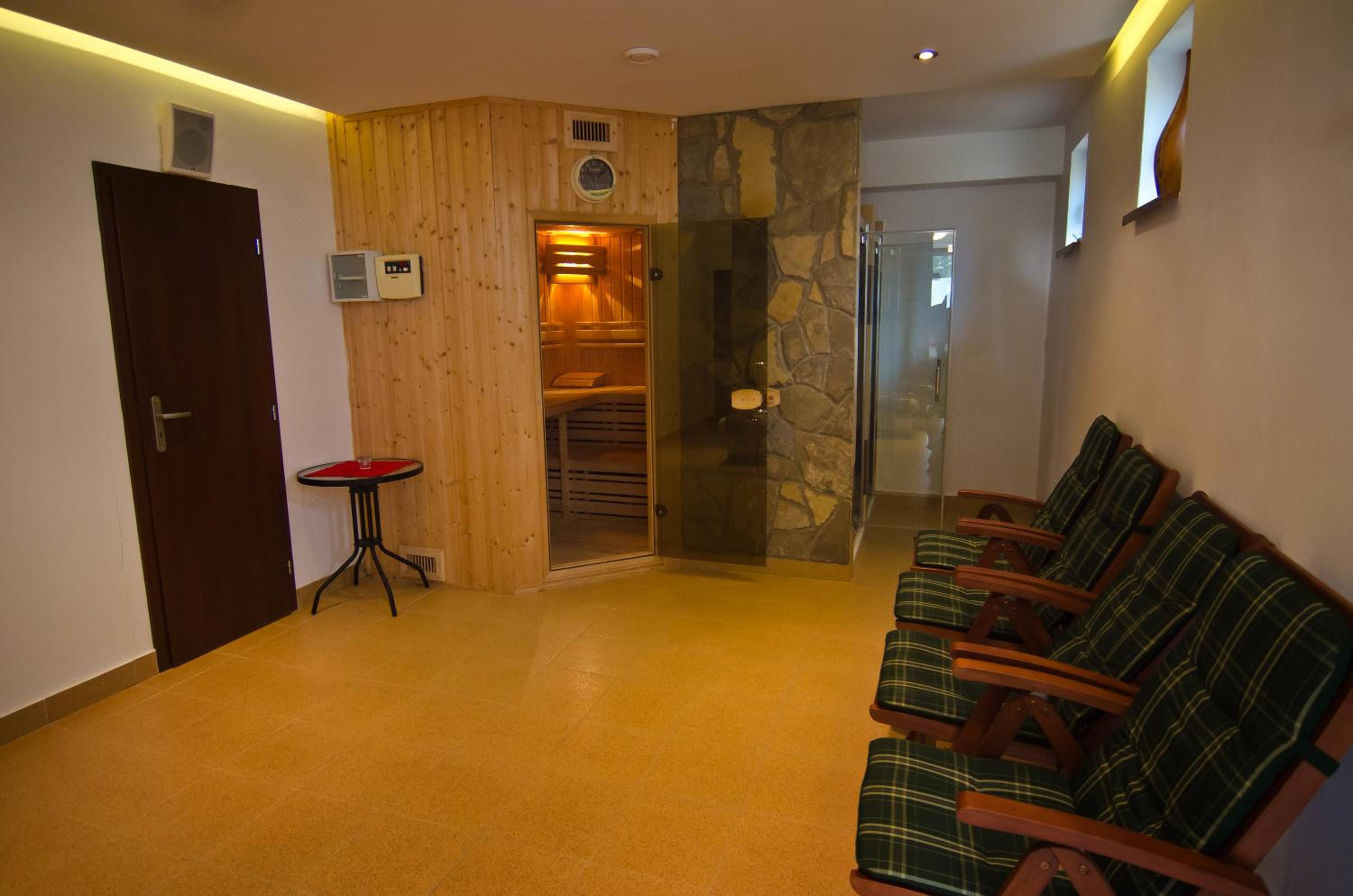 Unwind in the sauna, savor a cup of coffee at the café, or enjoy a BBQ on the terrace. With Janosikove Diery and the Vratna Ski Area nearby, adventure and relaxation await at your doorstep.