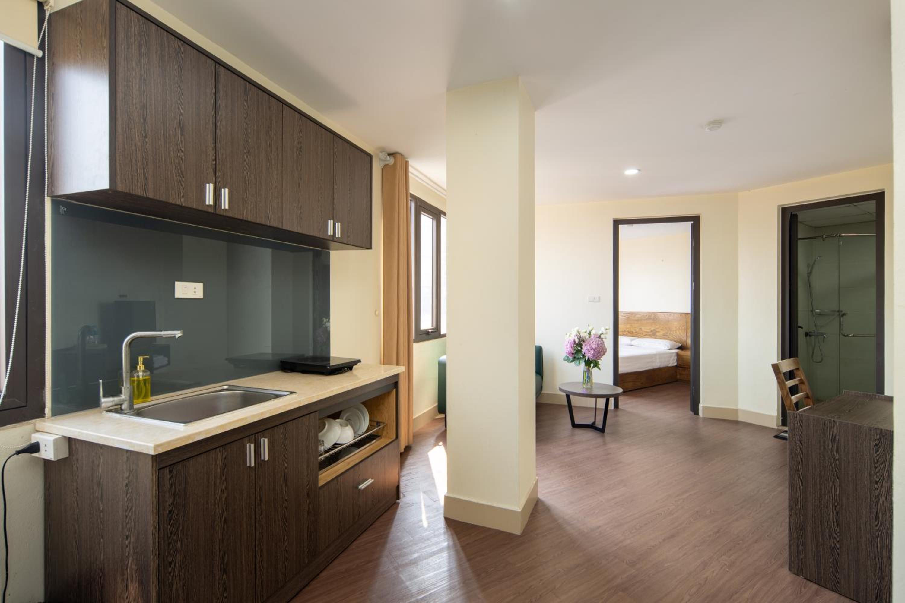 Experience the ultimate comfort at Granda Trung Hoa Apartment, a recently renovated aparthotel in Hanoi. Each unit is elegantly designed with modern amenities including a kitchen, flat-screen TV, and private bathroom.