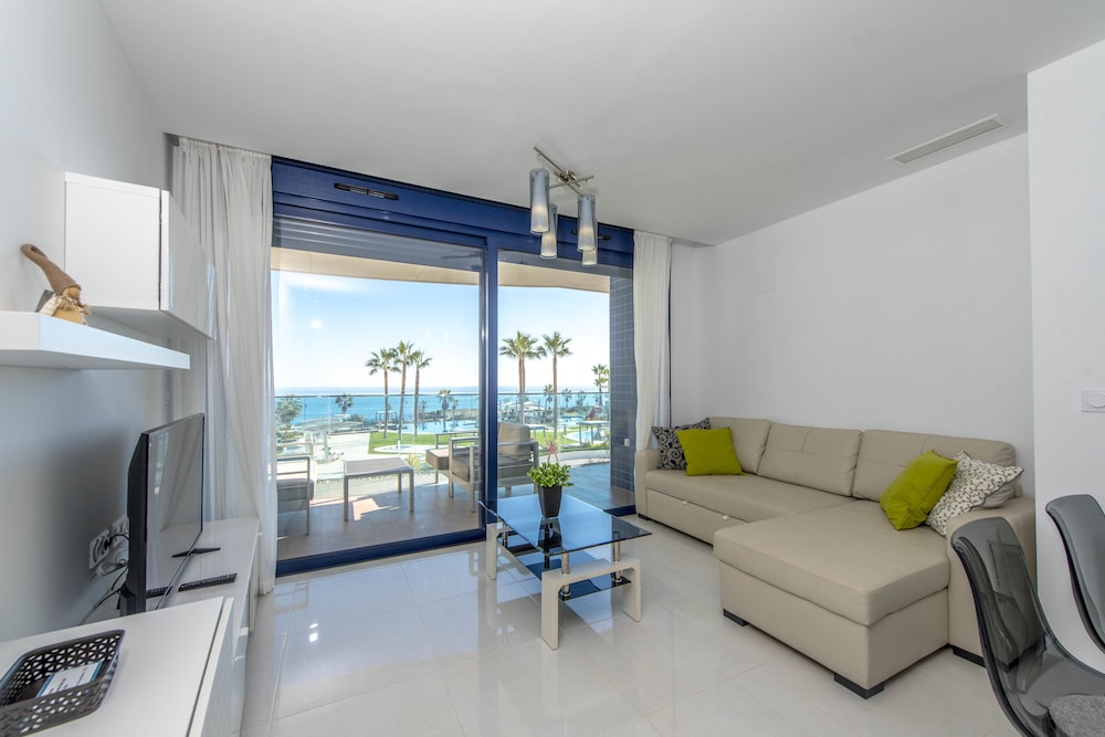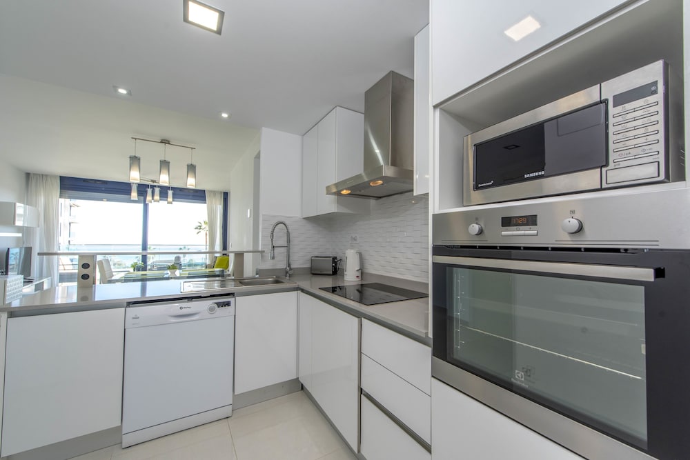 Lovely looking apartment with beautiful views. Not sure how long it will last as everything felt very temporary - door frames glued on etc. There is one restarunt nearby on the sea front. The thers are by the main road. Unlike many areas in spain the promenade is very short and not connected to anywhere else