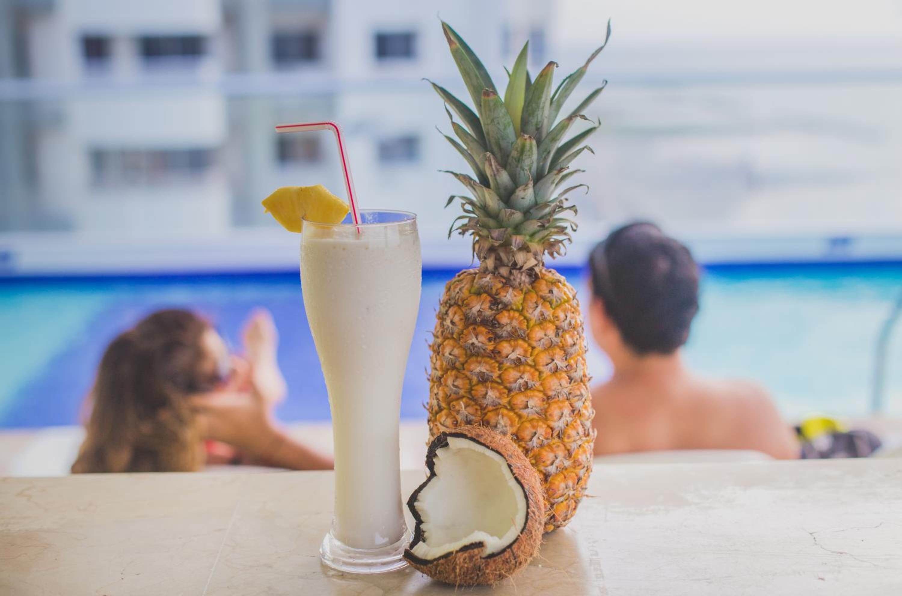 La zona de la piscina y bar