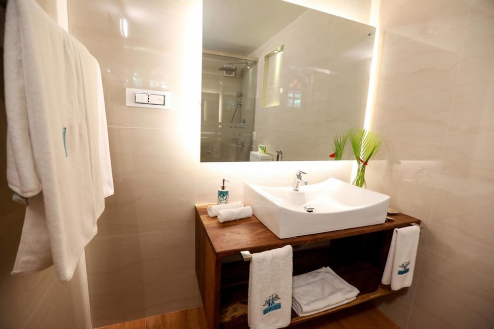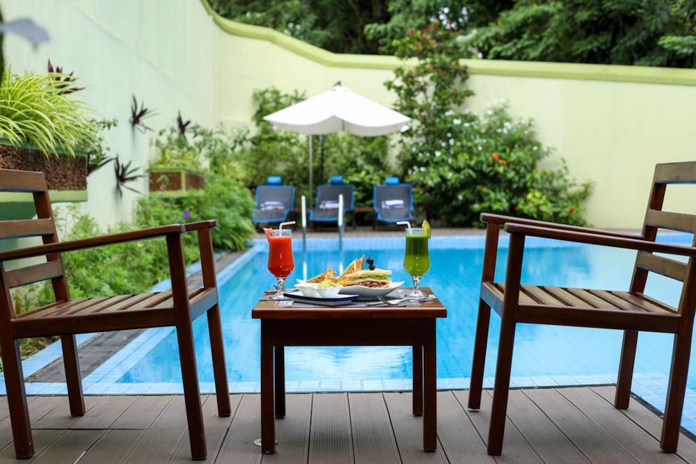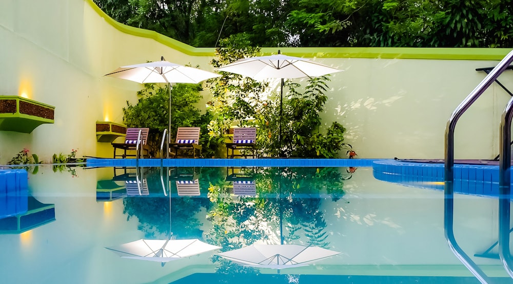 Recreation and Relaxation: Enjoy the outdoor pool, terrace, and garden for a peaceful escape at Airavata Boutique Resort.