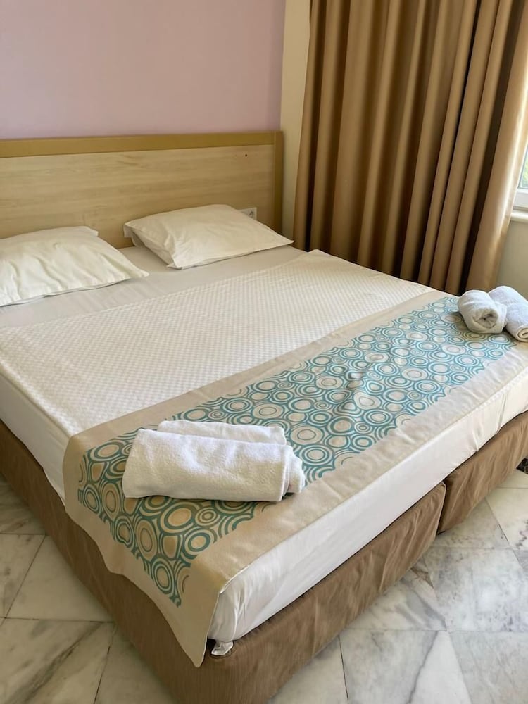 Otel calisanlari cok ilgisiz. Odaya elektrikli ocak koymuslar ama inanin elinizi yarim saat uzerinde tutun hic bisey olmaz. Yumurta bile pisiremedik. Durumu soyledik ilgilenen olmadi. Odadaki klima 30 yillik falan galiba kendine hayri yoktu. Tv desen zaten hic calismadi. Görevliler son derece ilgisizdi. Havuz yeterliydi. Havuz her gun temizleniyor. 1 adet kaydirak var ama onda sanirim elektrik yakmasin diye araliklarla toplam 1 2 saat çalışıyor gunde. Tavsiye etmiyorum kisacasi.