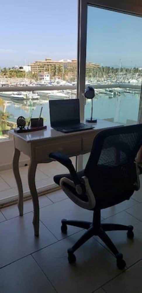 View of marina from balcony is wonderful.