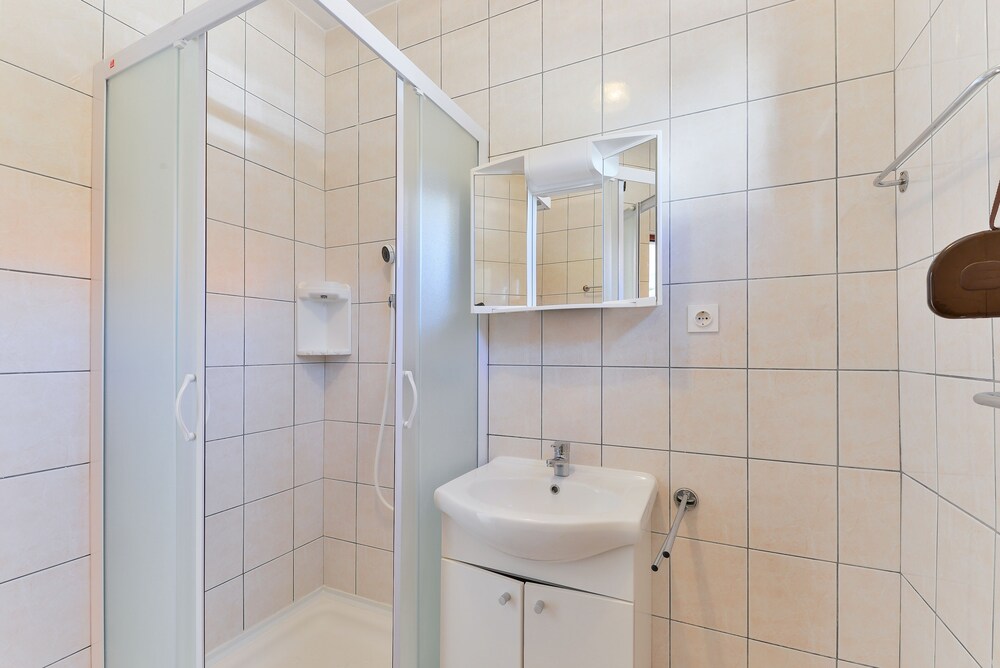 But the shower was roomy - good pressure and plenty of hot water. The room was clean. The AC was cold. The wi-fi was good.