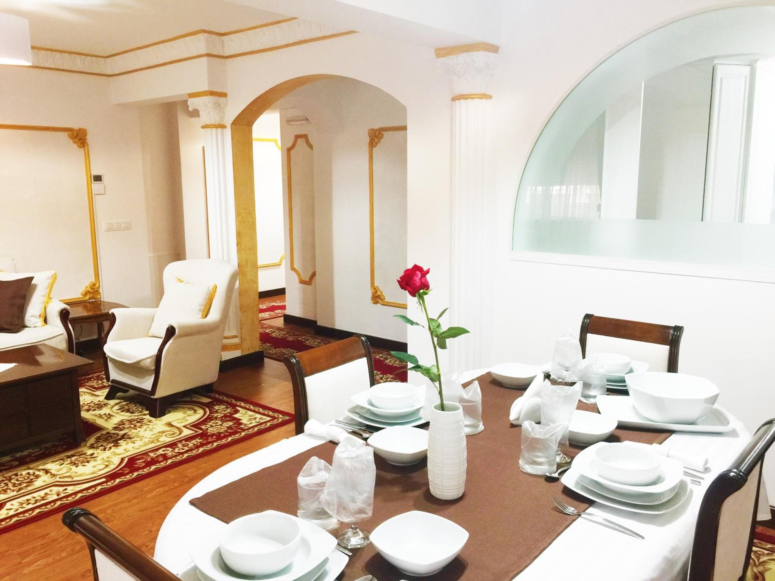 Experience the elegance of classical designs and modern amenities in our spacious air-conditioned apartments at My Hotel Apartments. Relax in the living room with a flat-screen TV or enjoy a meal in the fully equipped kitchen.