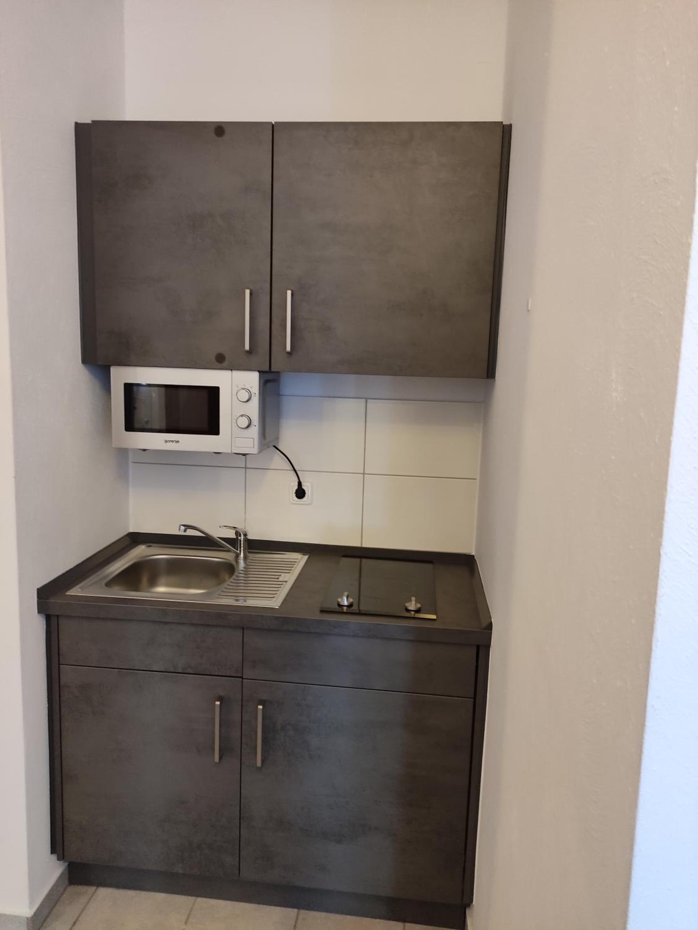 Kleine keuken maar van alle gemakken voorzien.