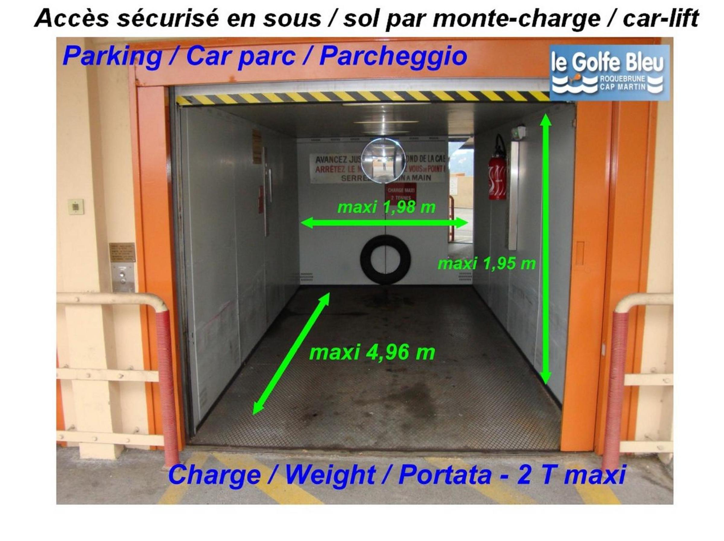Per accedere al parcheggio bisogna scendere con un montacarichi, con macchine di medie-grandi dimensioni si fa fatica a far manovra, misure però già note al momento della prenotazione.
