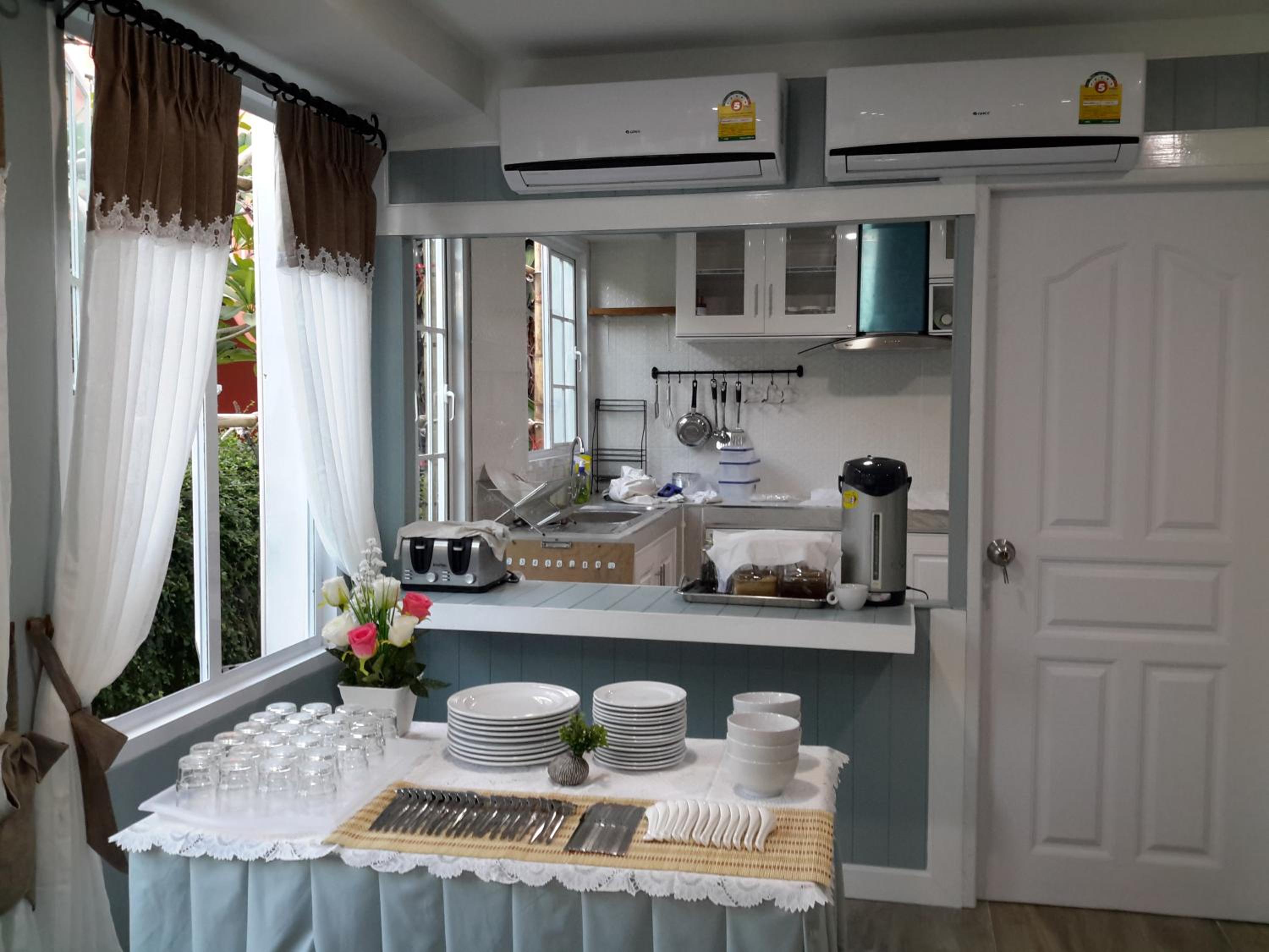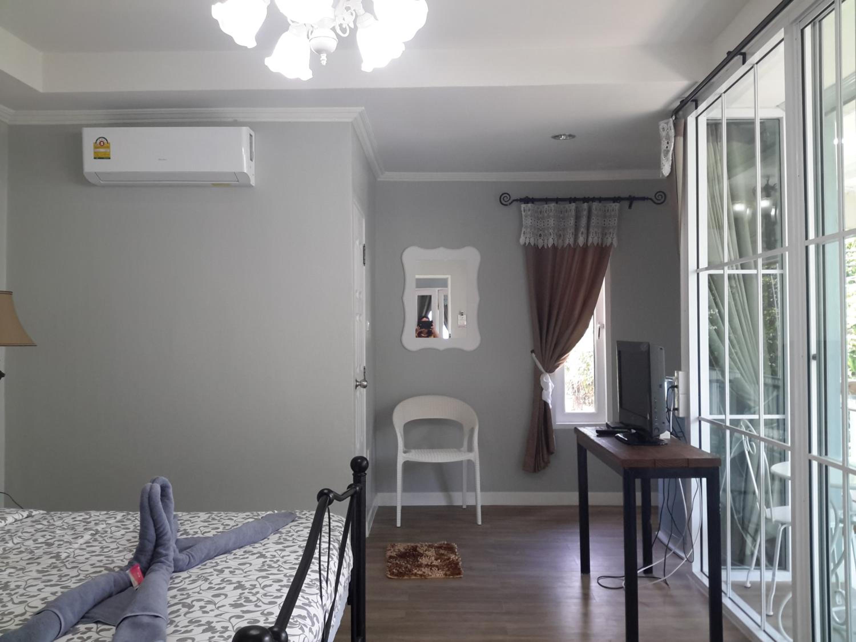 Small home for 4 people. The conditioner works well. Tasty breakfast and a good cafe near the hotel.