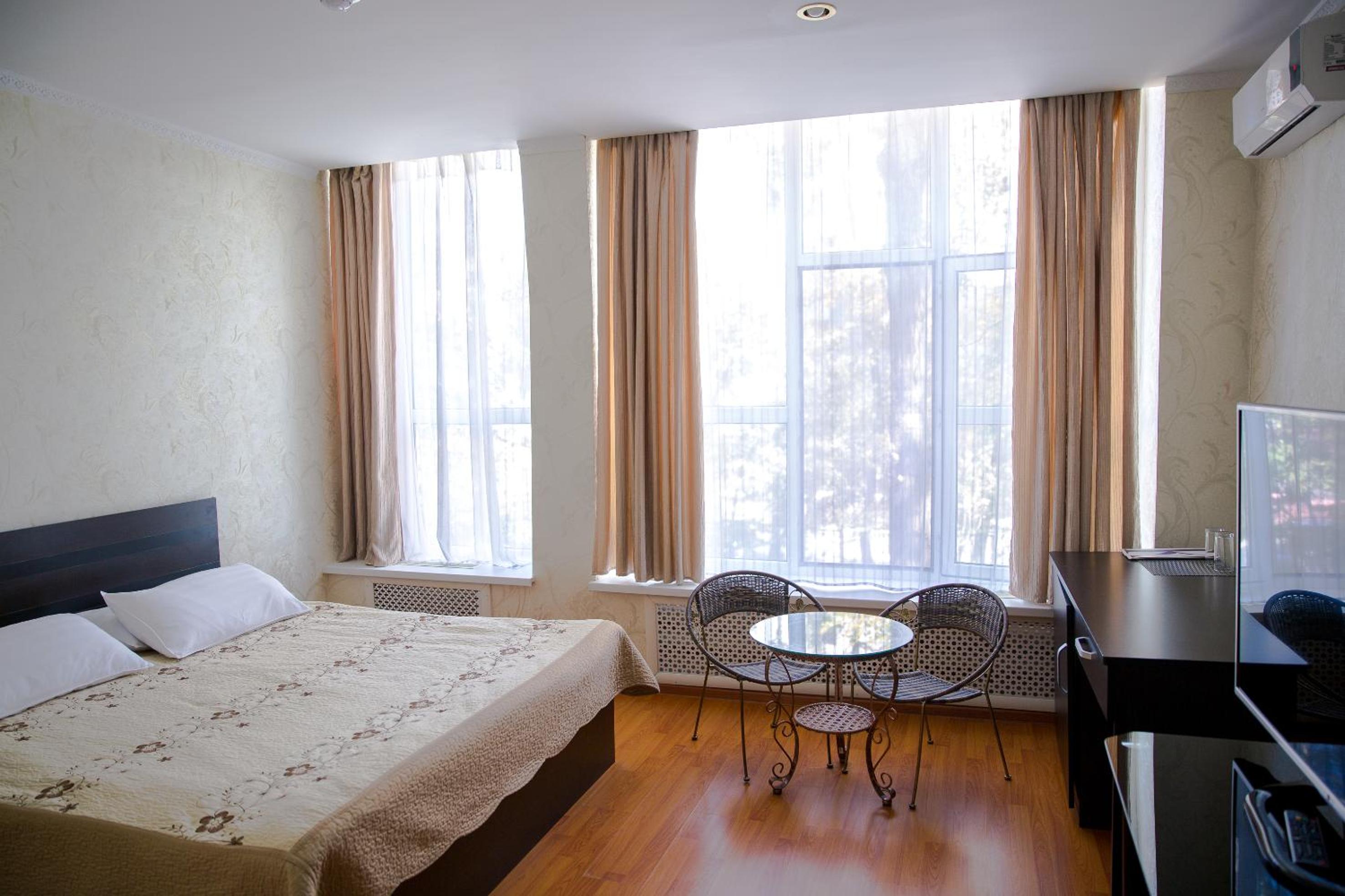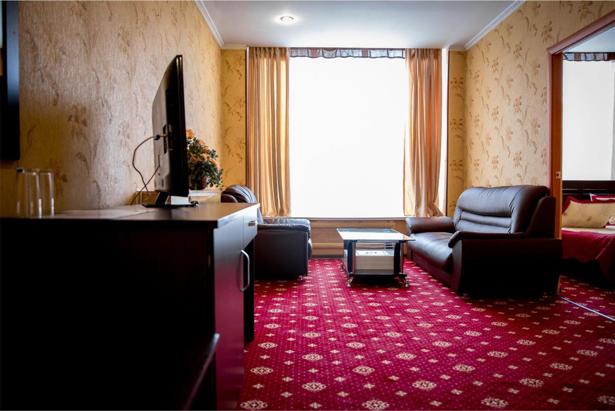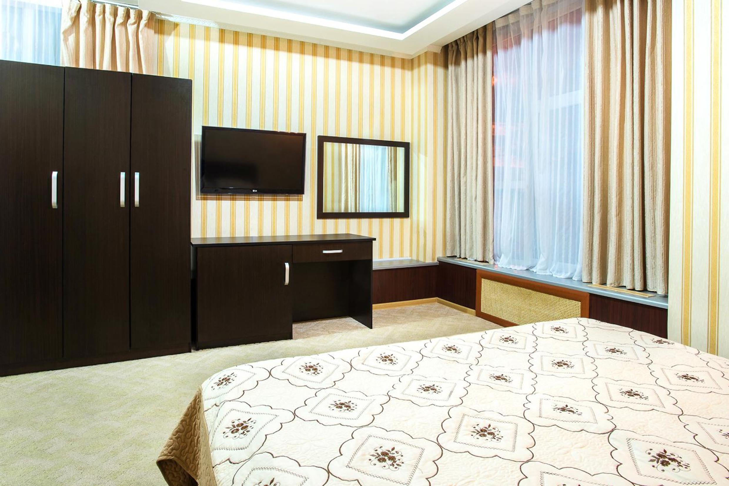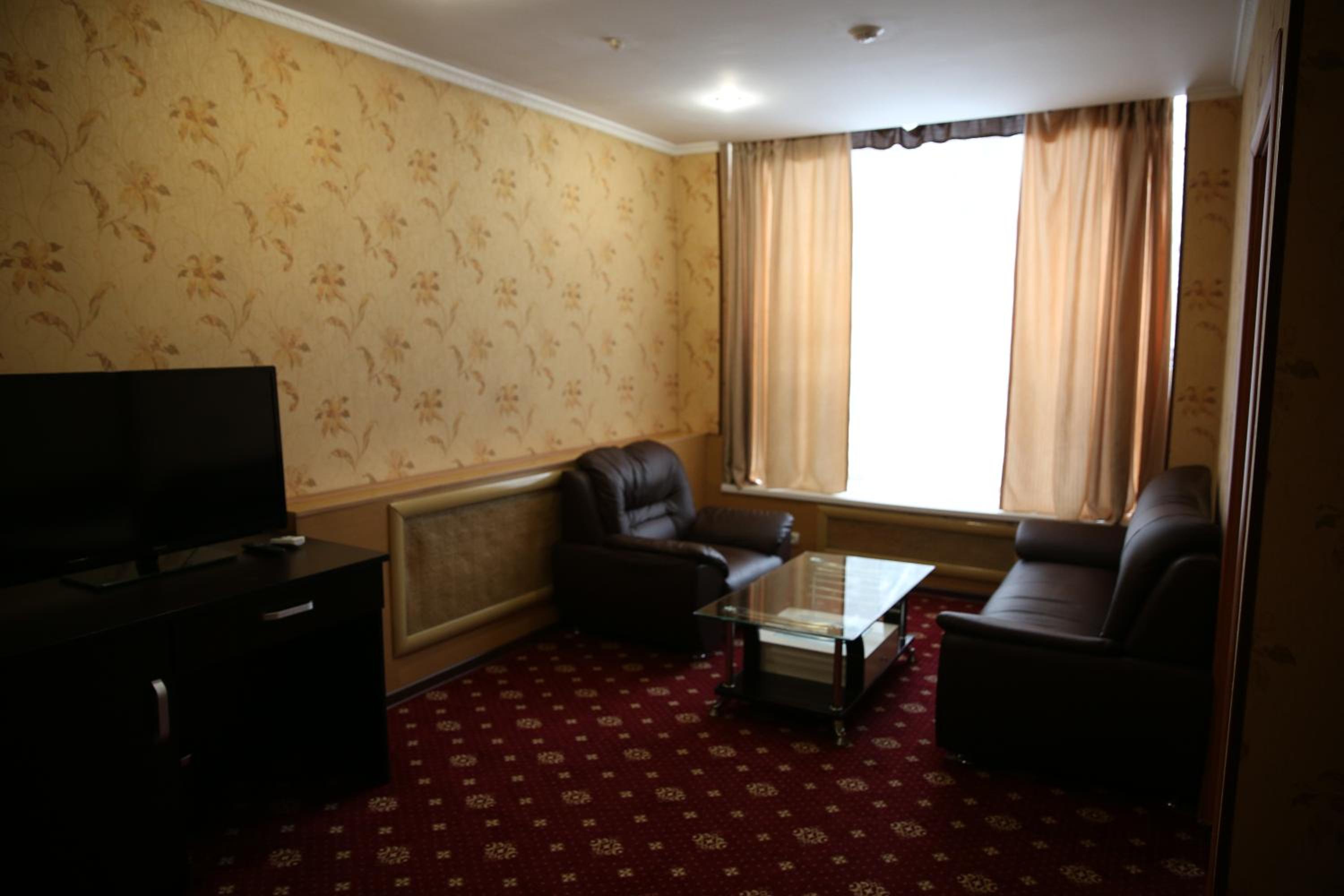 Enjoy a comfortable stay in the bright rooms with warm-colored interiors at Hotel Kazakhfilm. Unwind and relax in a cozy setting after a day of exploring the city.