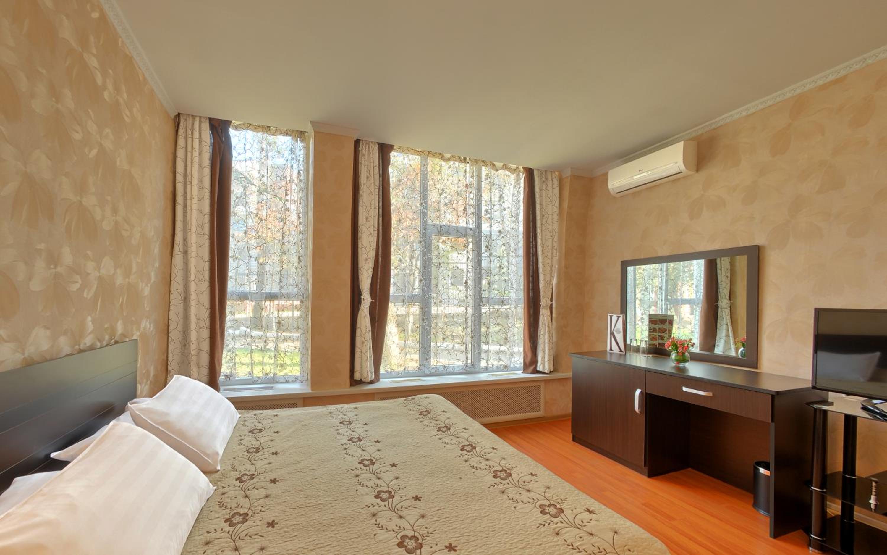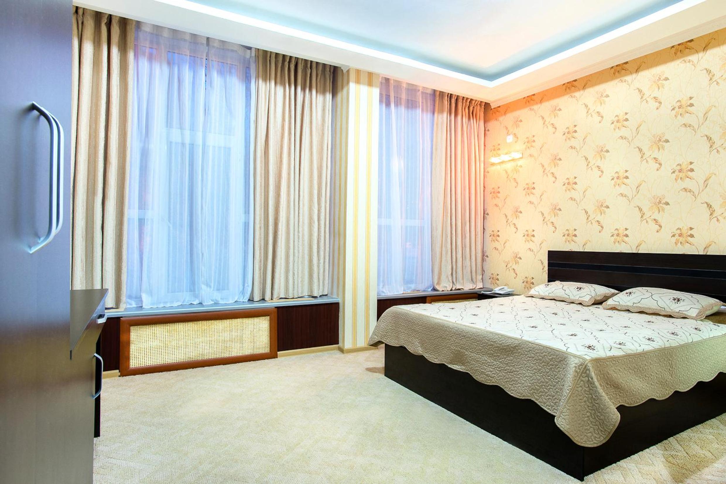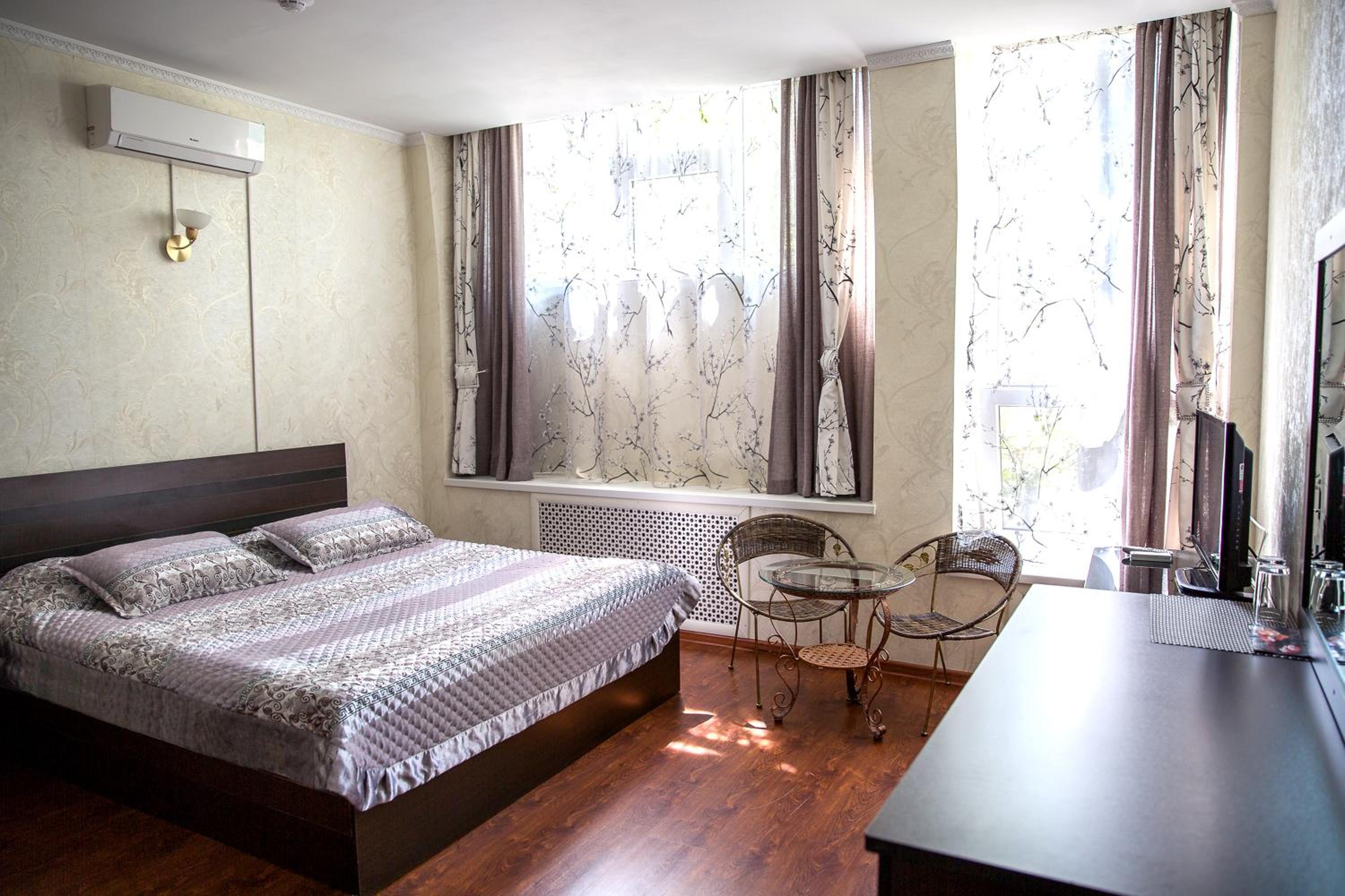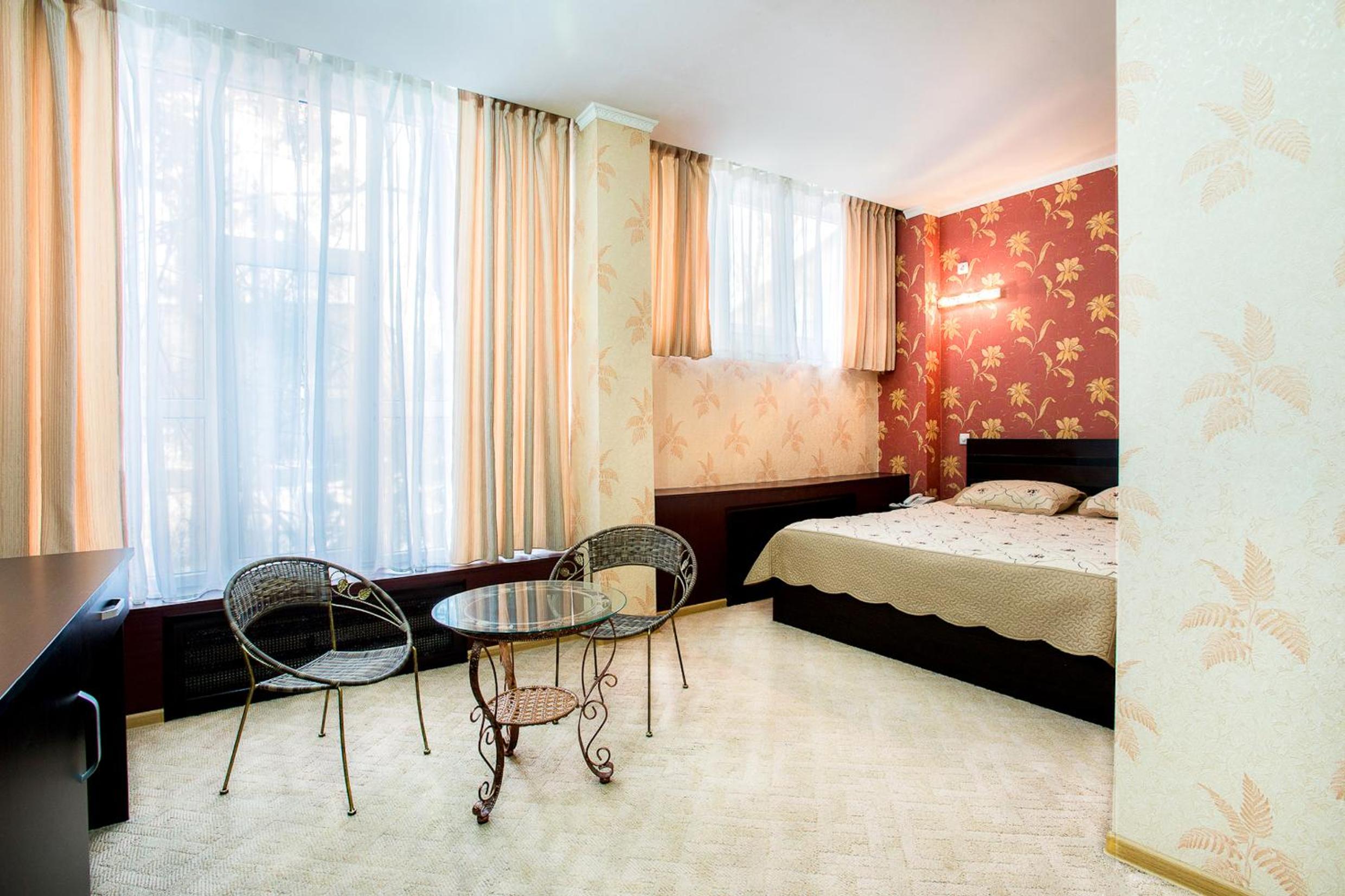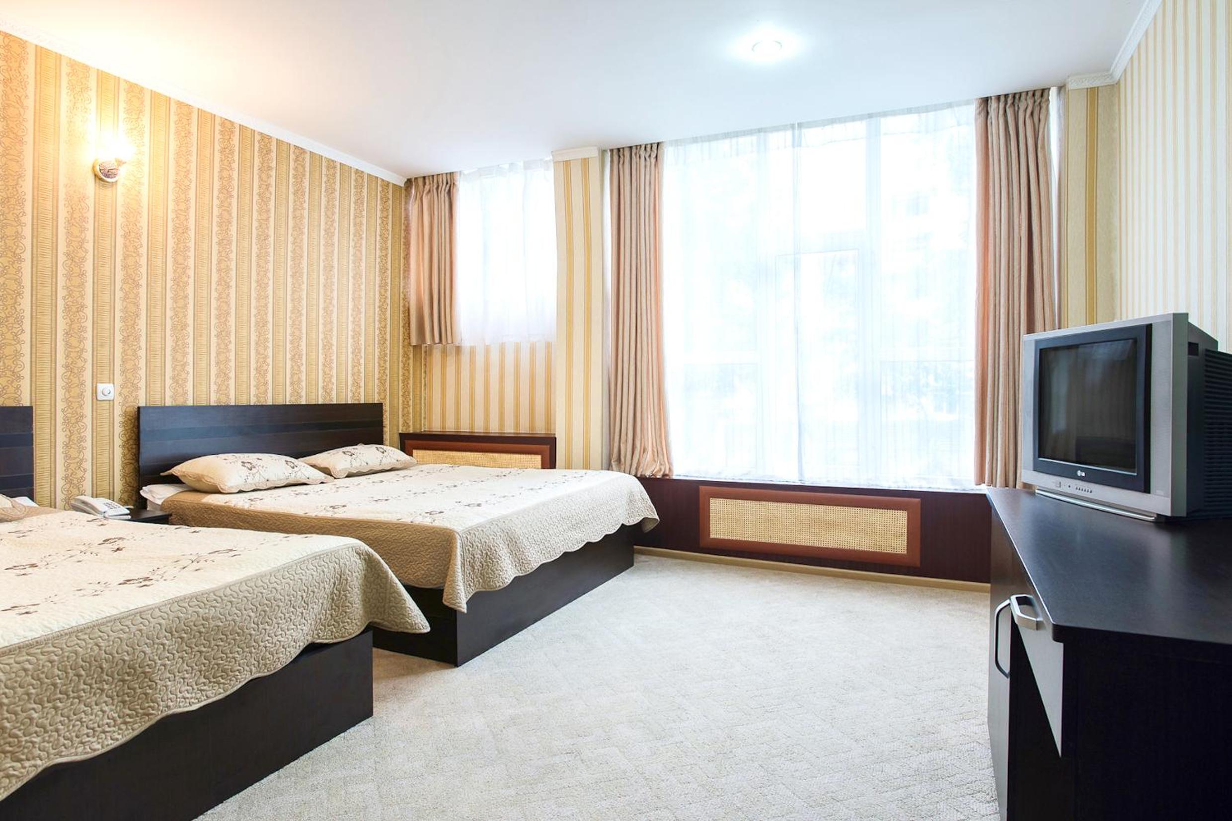 Enjoy a comfortable stay in the bright rooms with warm-colored interiors at Hotel Kazakhfilm. Unwind and relax in a cozy setting after a day of exploring the city.