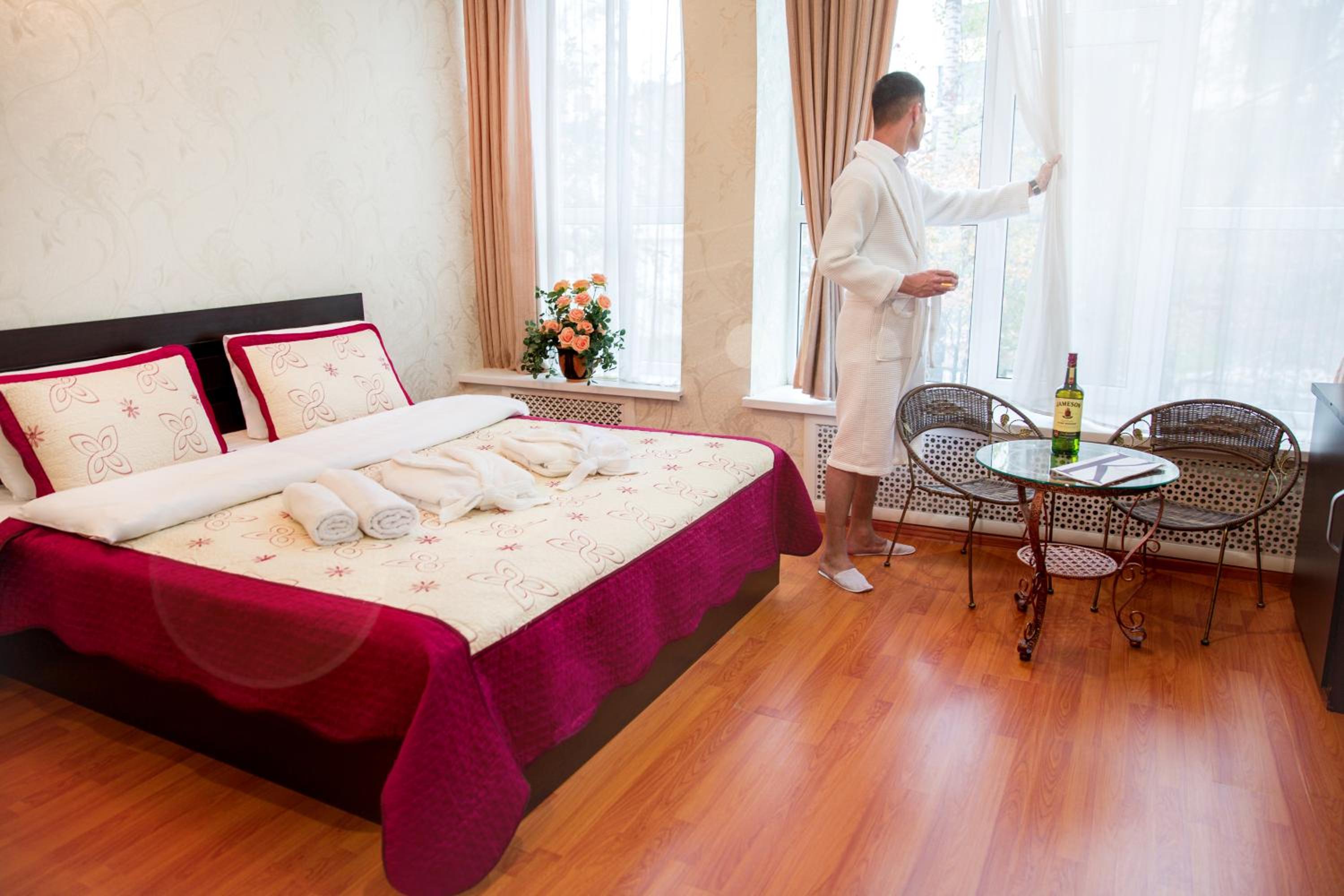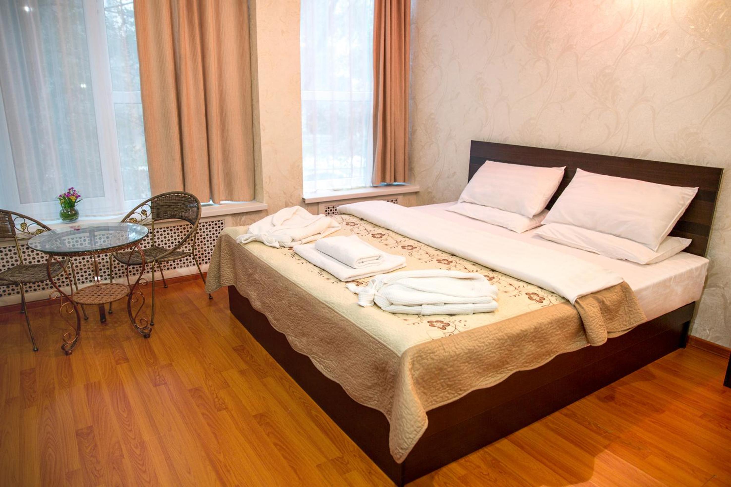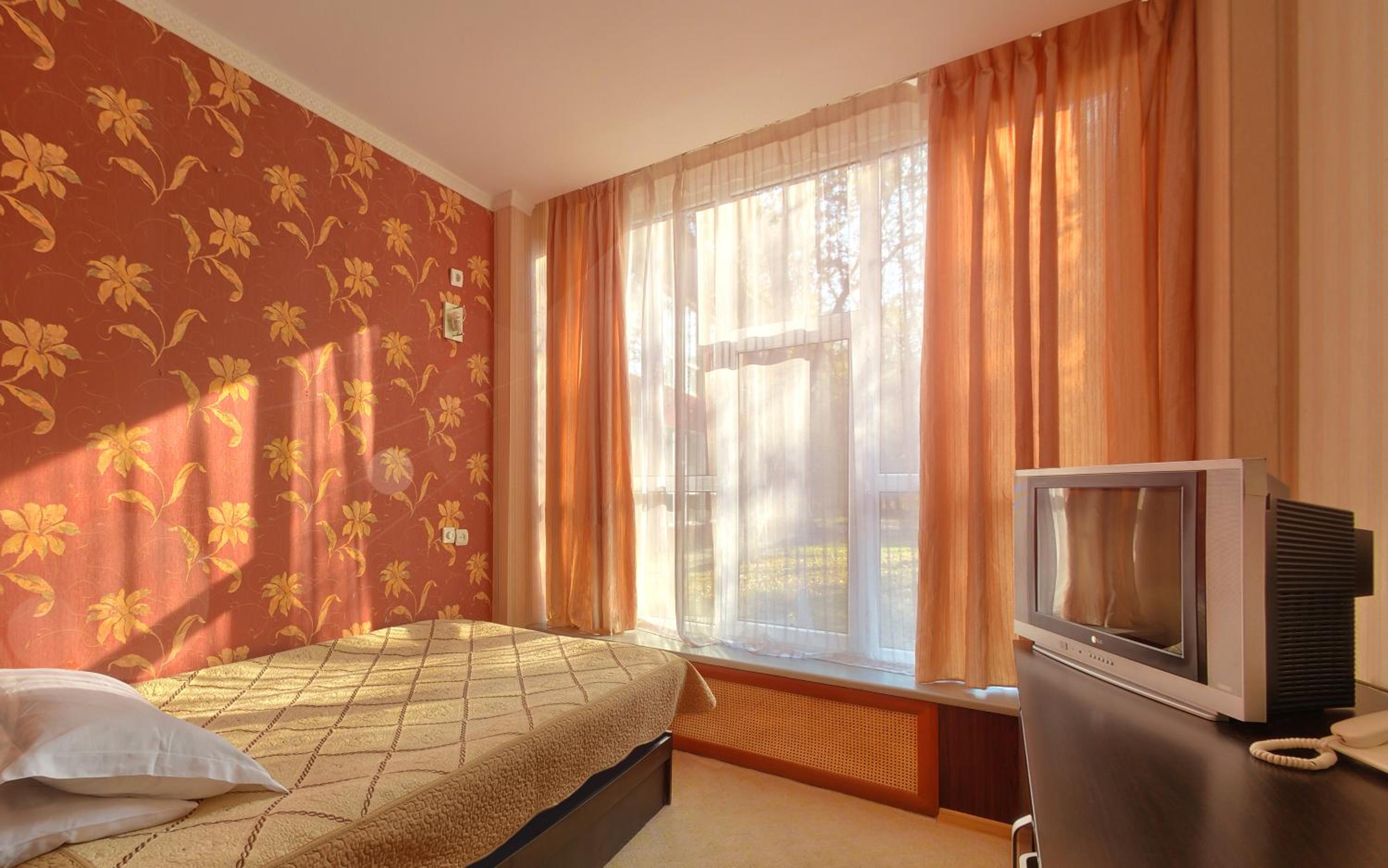 Бронировали больной номер, приехали, нет мест, дали два маленьких номера. Пришлось согласиться только потому, что устали с дороги и ещё с маленьким ребенком. В номере работает одна лампочка, вешалки для полотенец поломаны.