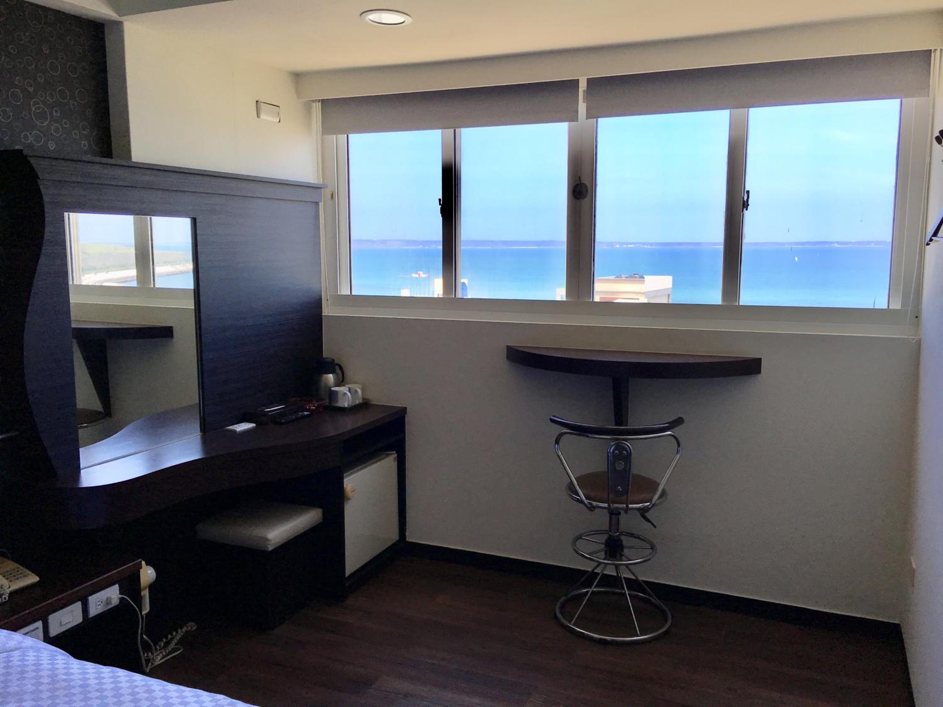 (4人房)無衣櫃,掛勾不夠4人使用,也無小桌擺放飲料零食,wifi一直斷線 ,2樓看不到什麼海景