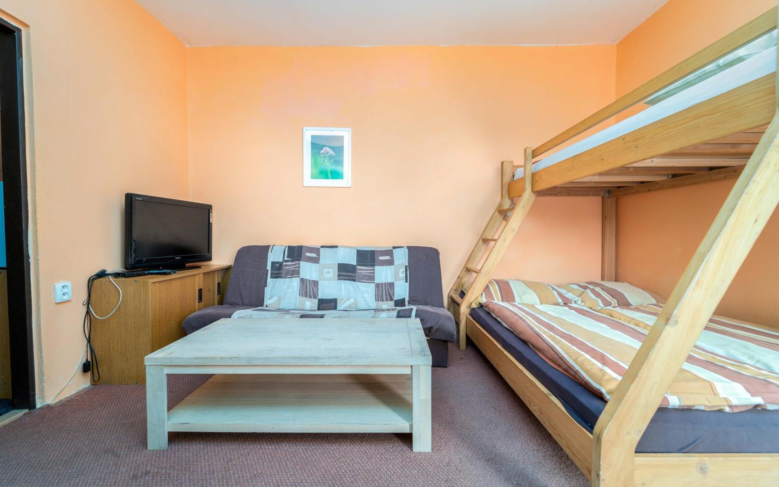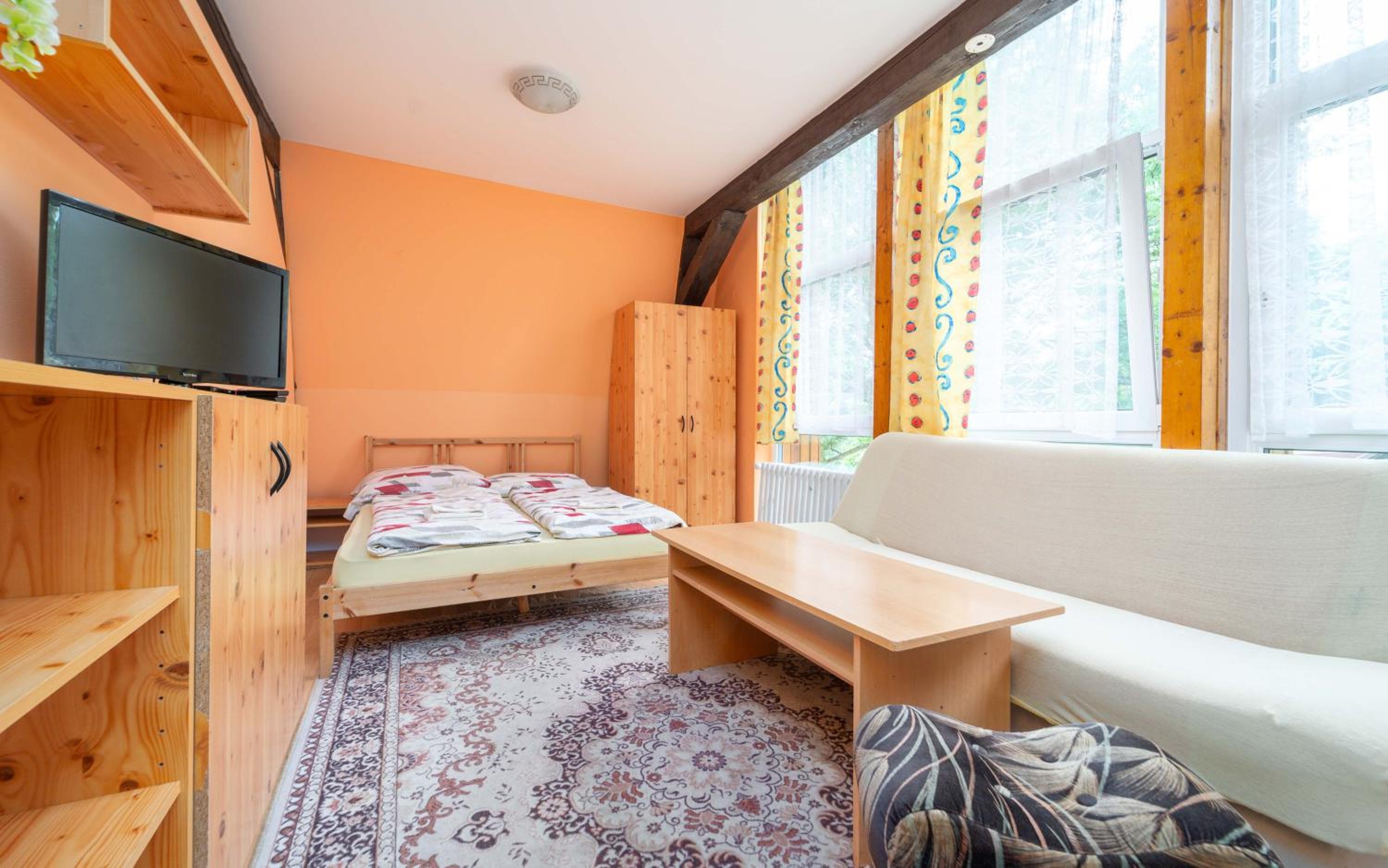 Obsługa hotelu wyjątkowo uprzejma i przyjazna, chętnie komunikuje się w języku polsko-czeskim (co nie jest wcale oczywiste w Czechach); obiadokolacja w lokalnym stylu smaczna i obfita. Niestety, stan pokojów i korytarzy pozostawia wiele do życzenia – w rogach pomieszczeń, w szafach na korytarzach czy na półpiętrach pochowane są stosy materaców, butów narciarskich albo paczek z panelami podłogowymi. Infrastruktura i ogólne warunki hotelowe znacznie różniły się od obietnic w ofercie – ładny, wyremontowany z zewnątrz budynek kryje zapyziały hotelik rodem z poprzedniej epoki... Duży plus za miłą obsługę i przepiękne widoki. Turystycznie w trybie niskobudżetowym – tak, z rodziną po bezstresowy komfort i miłe doświadczenia – nigdy.