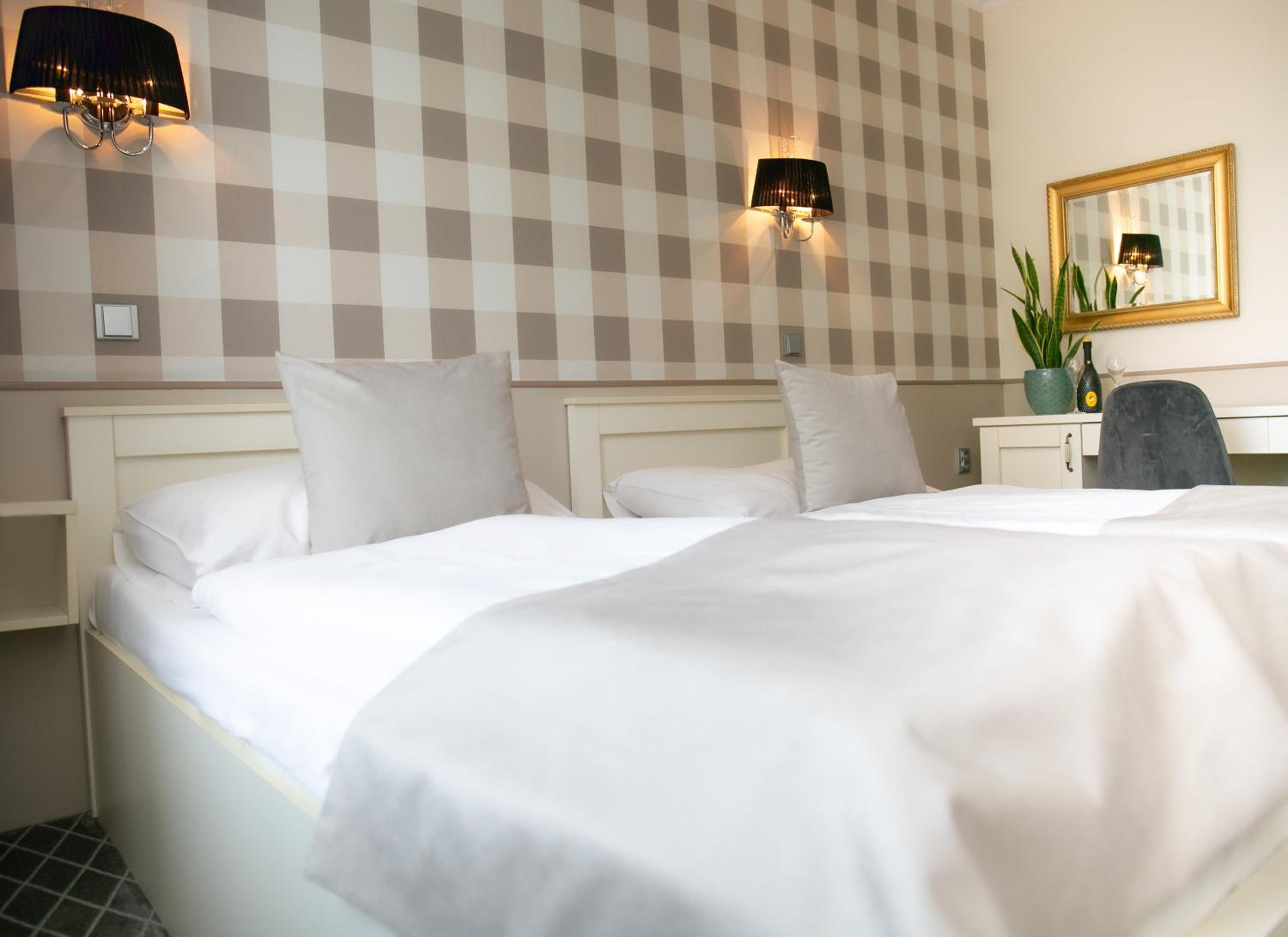 Individually Styled Rooms: Enjoy a unique experience in our individually styled rooms with picturesque views of the Labe River, church, and Podebrady castle.