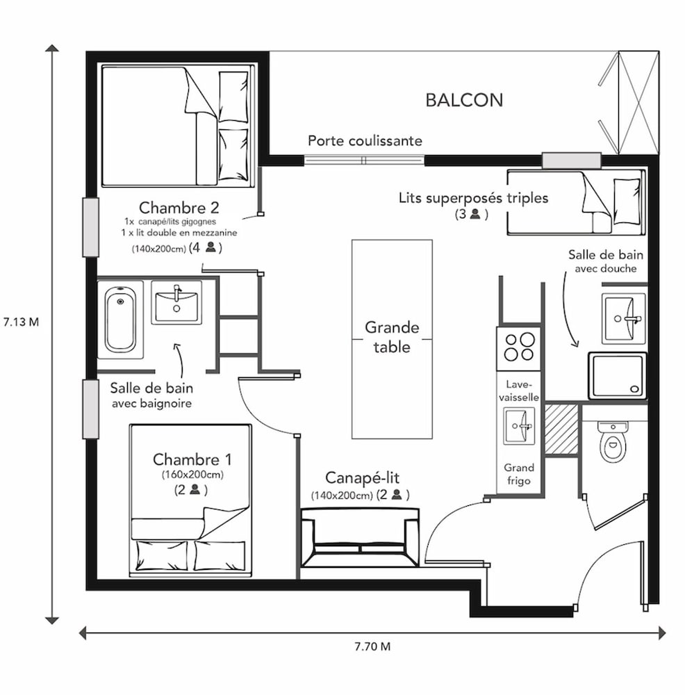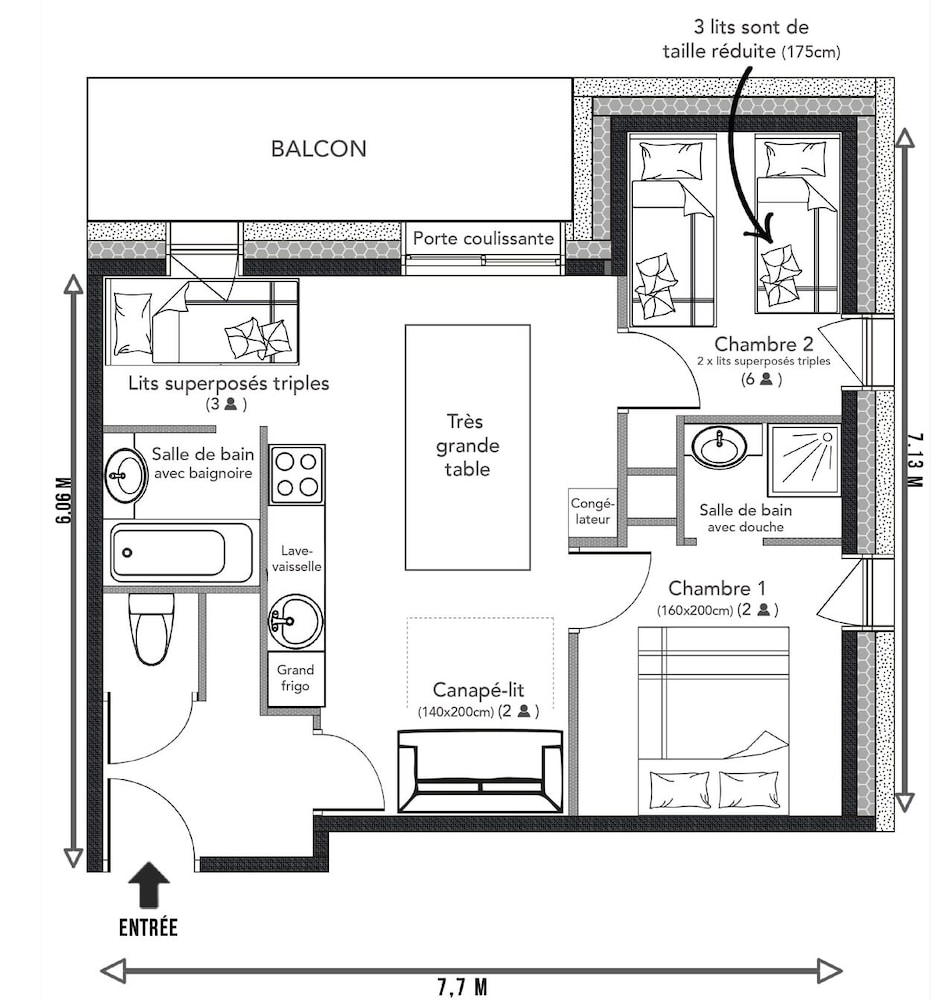 Bel appartement pour 6 a 7 adultes pour être à l'aise. Propre et près des pistes et restaurant. Top