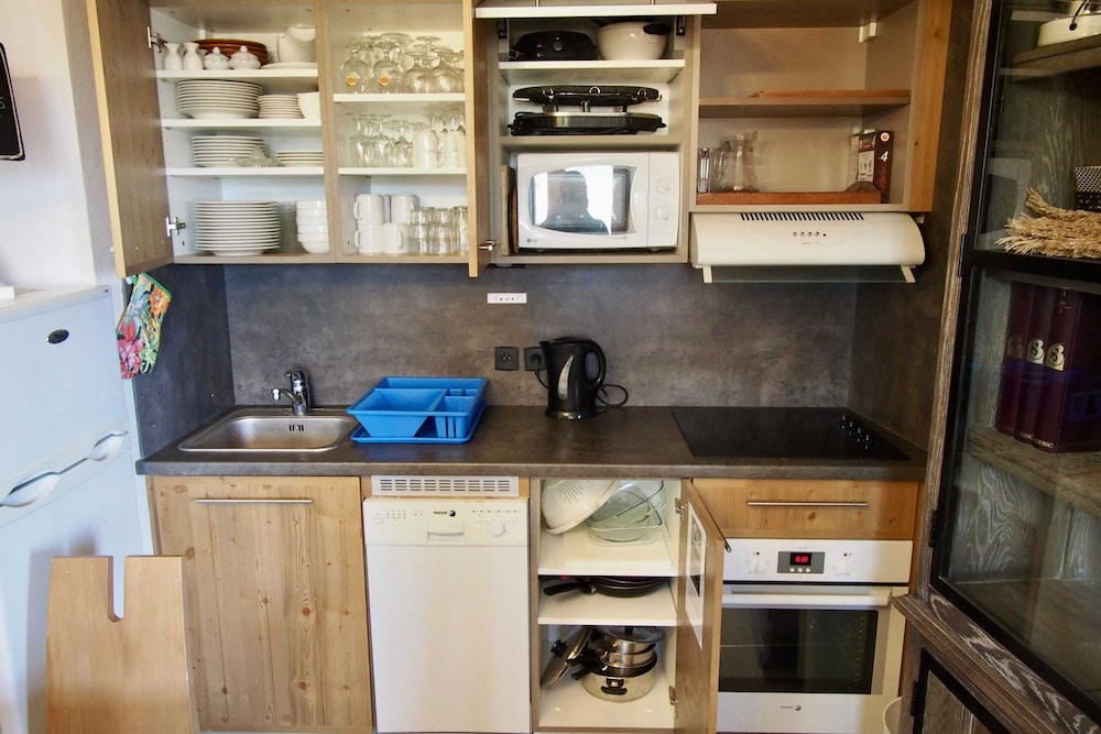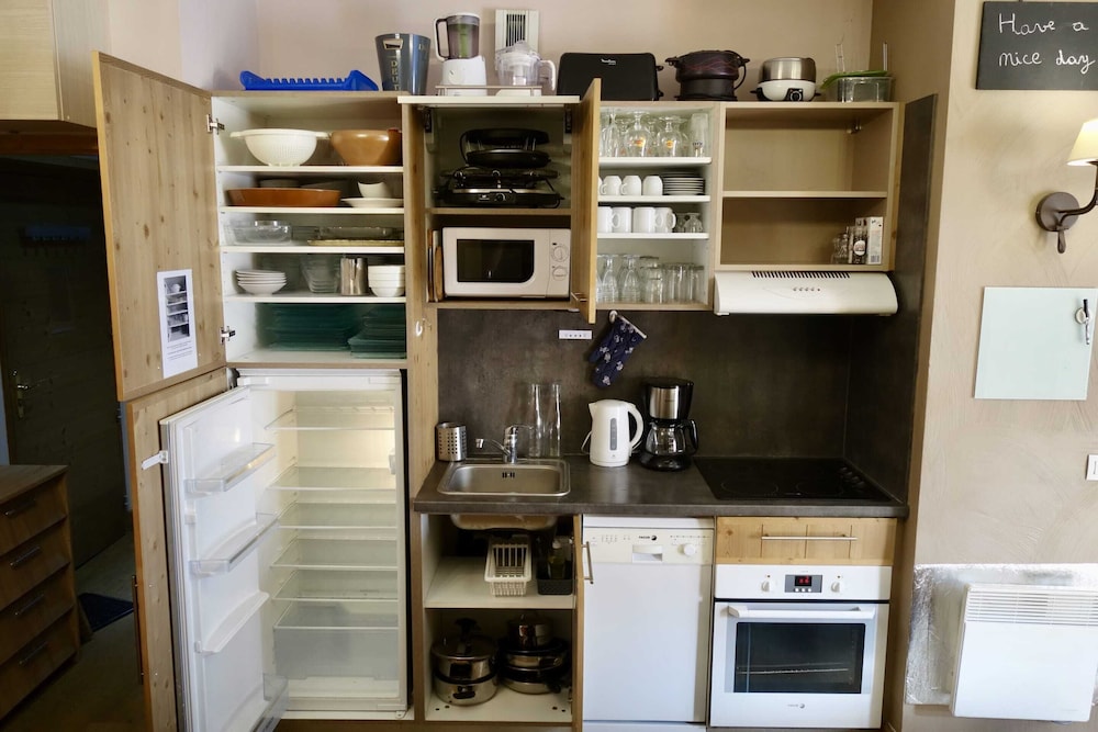 Dans le frigo il y avait un reste de sandwich !!!! Mais comment a été fait le ménage ???? Et pour en rajouter il n’y avait pas d’eau chaude. Nous avons pu nous laver que le lendemain matin. Après une journée de ski nous aurions aimé prendre une douche, même tiède....