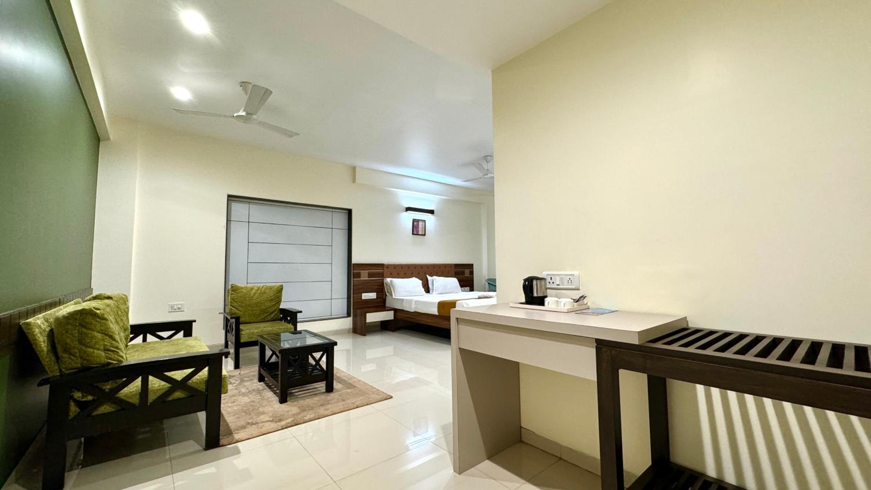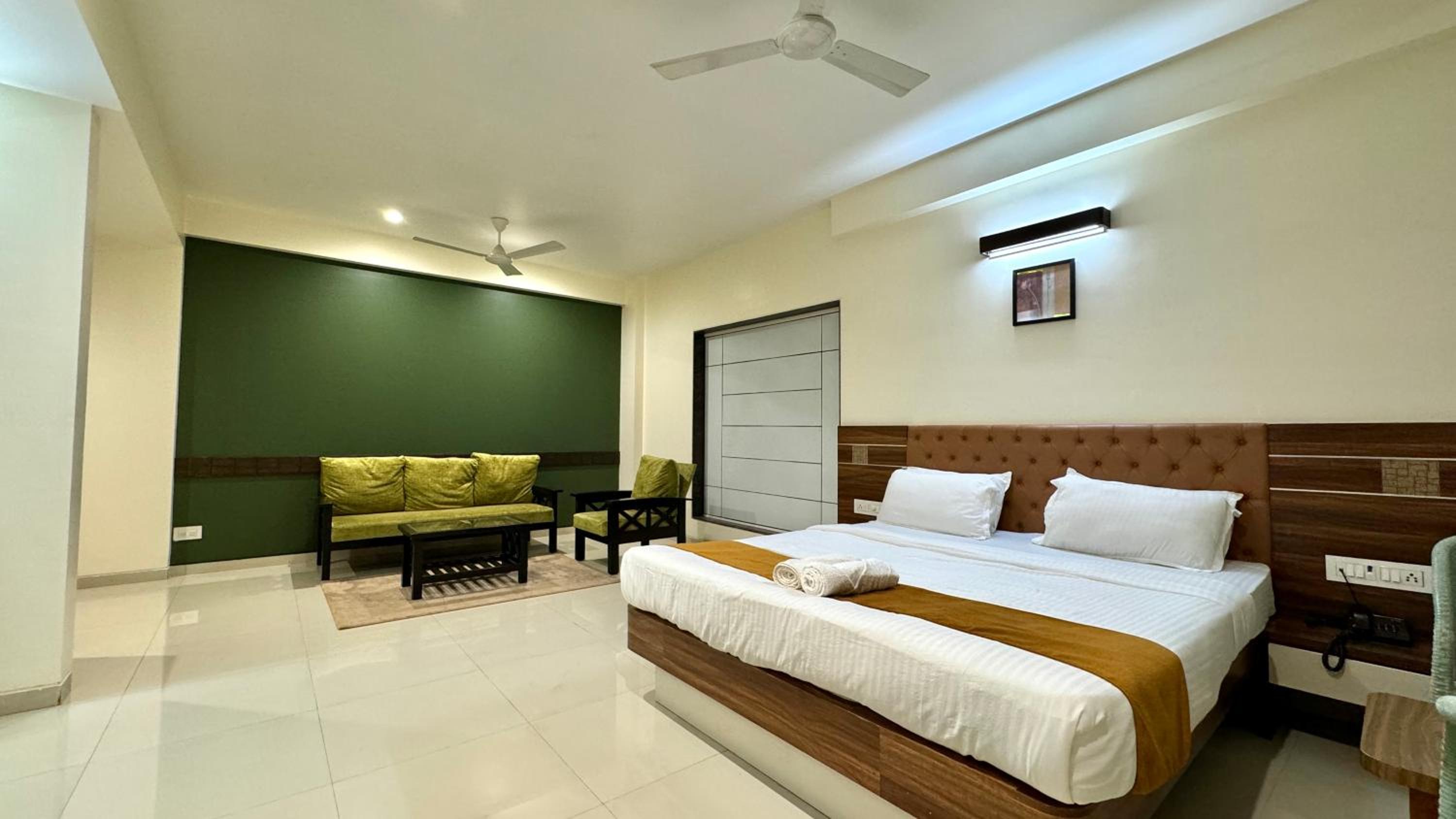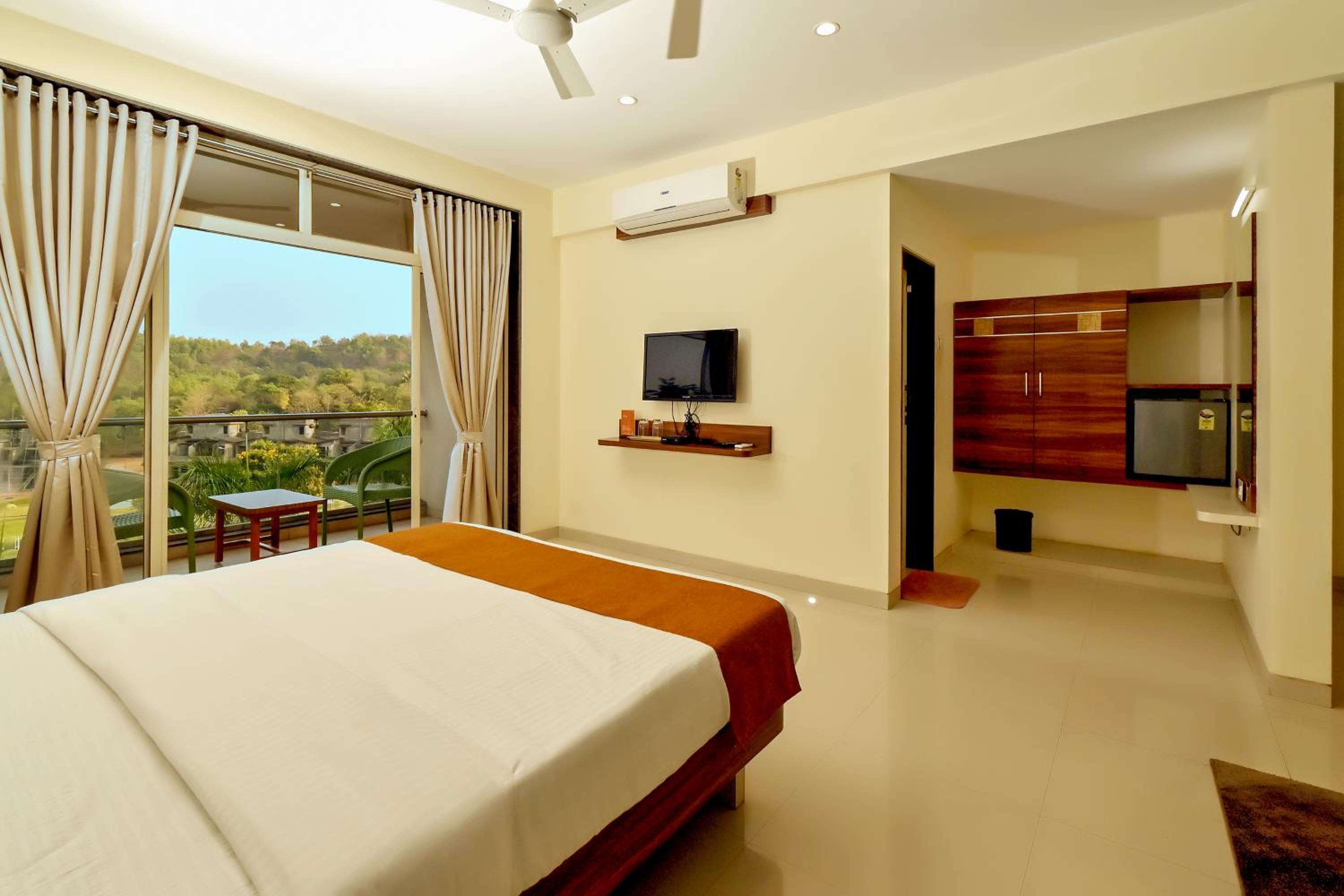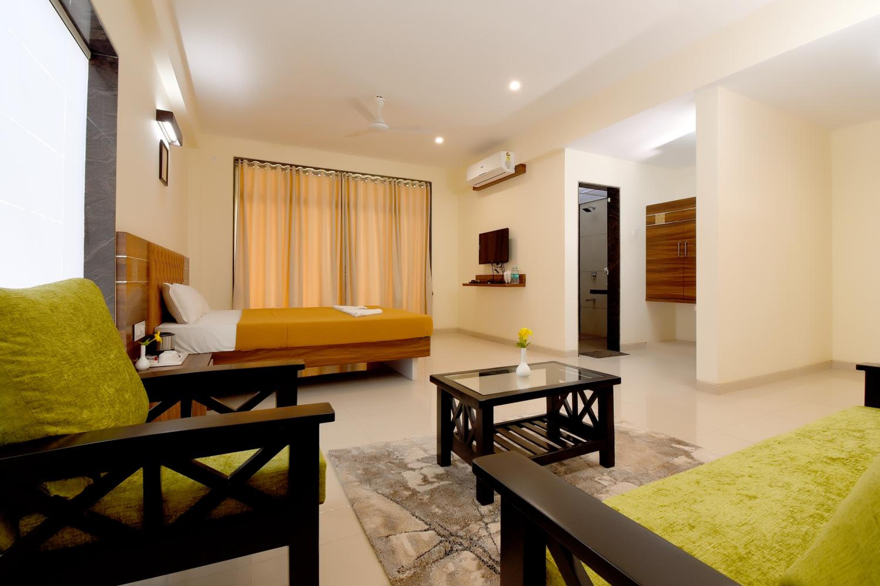 Each room at Hotel Sadhana Executive features a wardrobe, flat-screen TV, and a private bathroom. Some units offer serene garden views, while every room includes a balcony and a cozy seating area.
