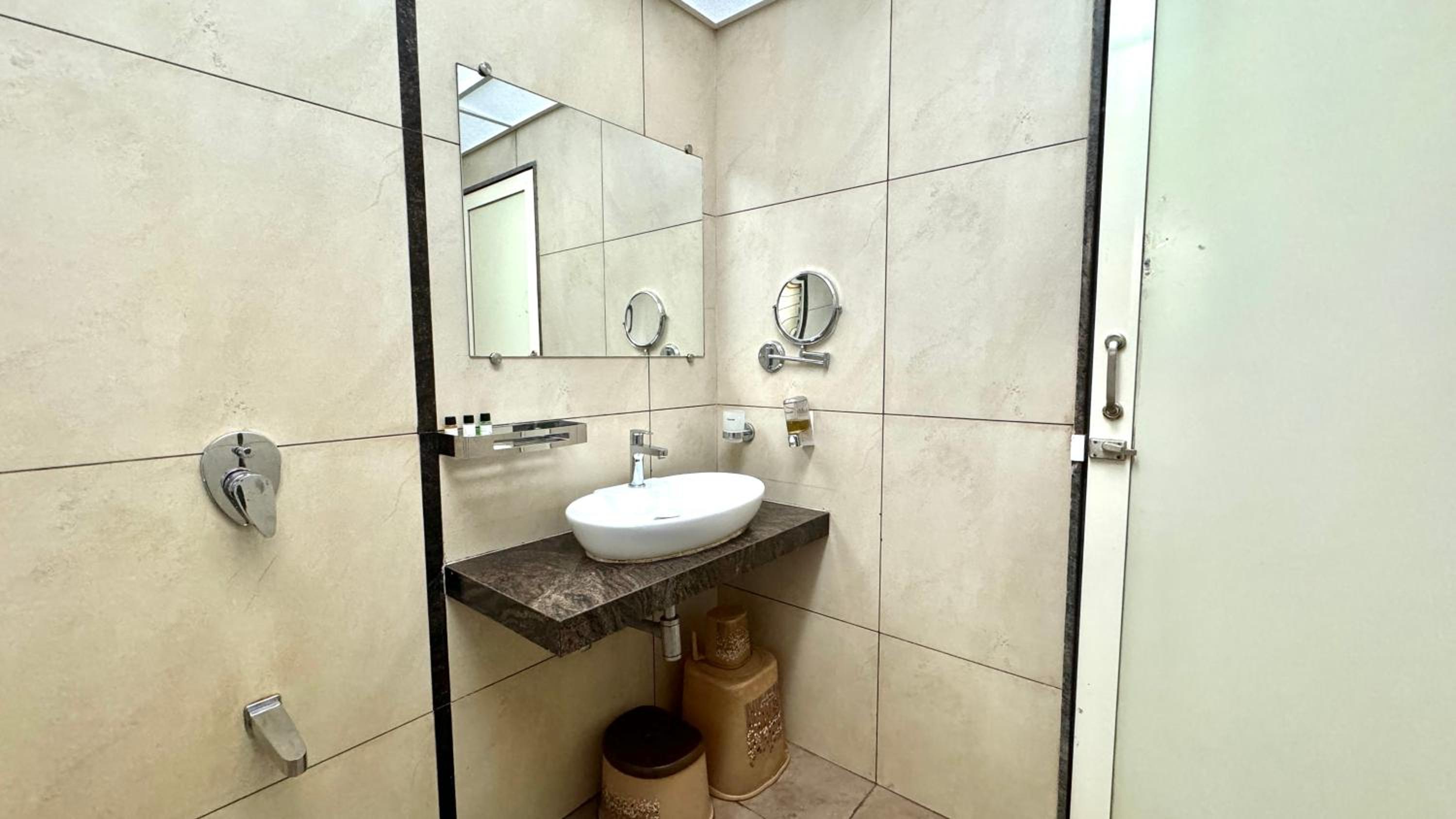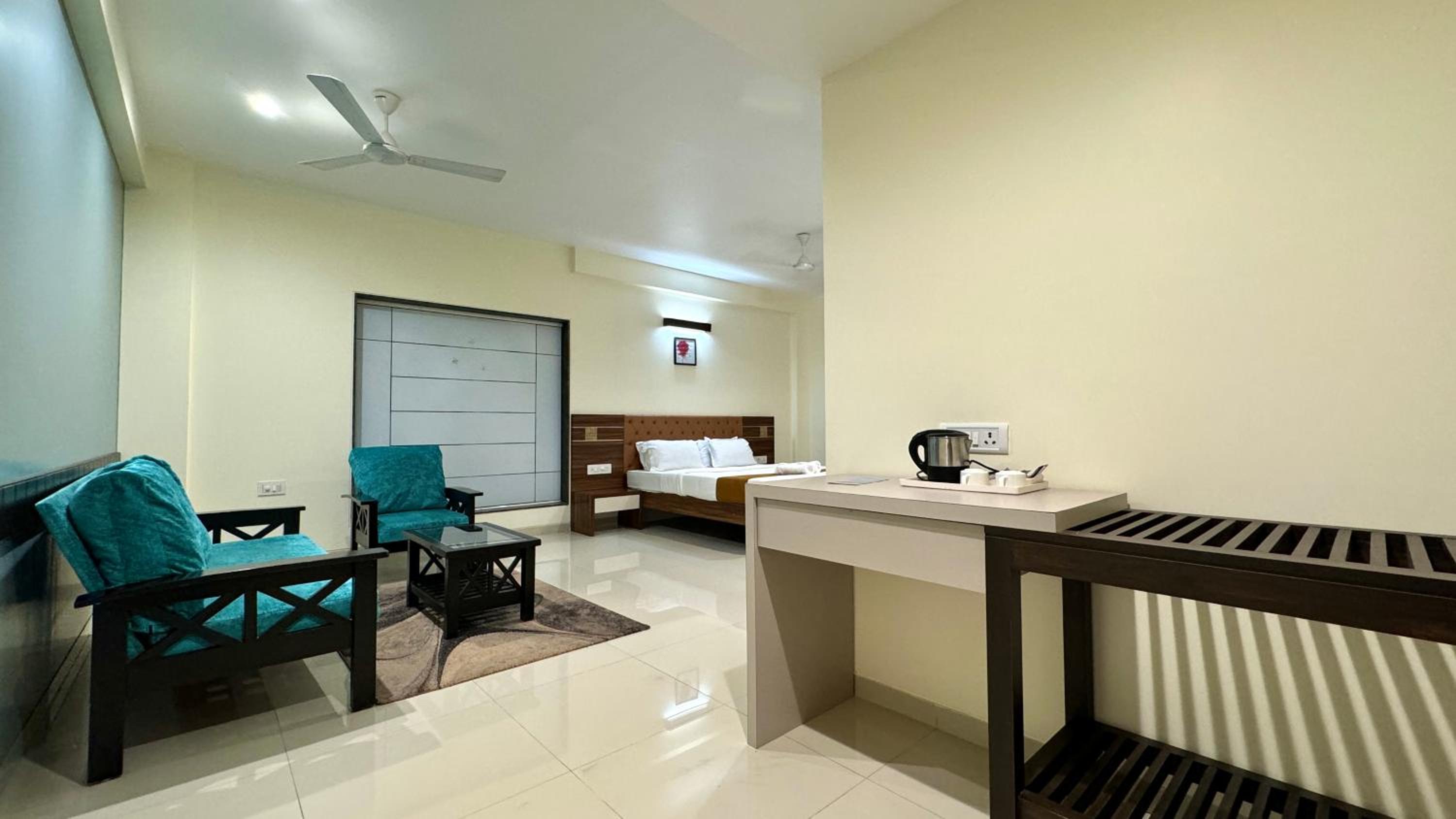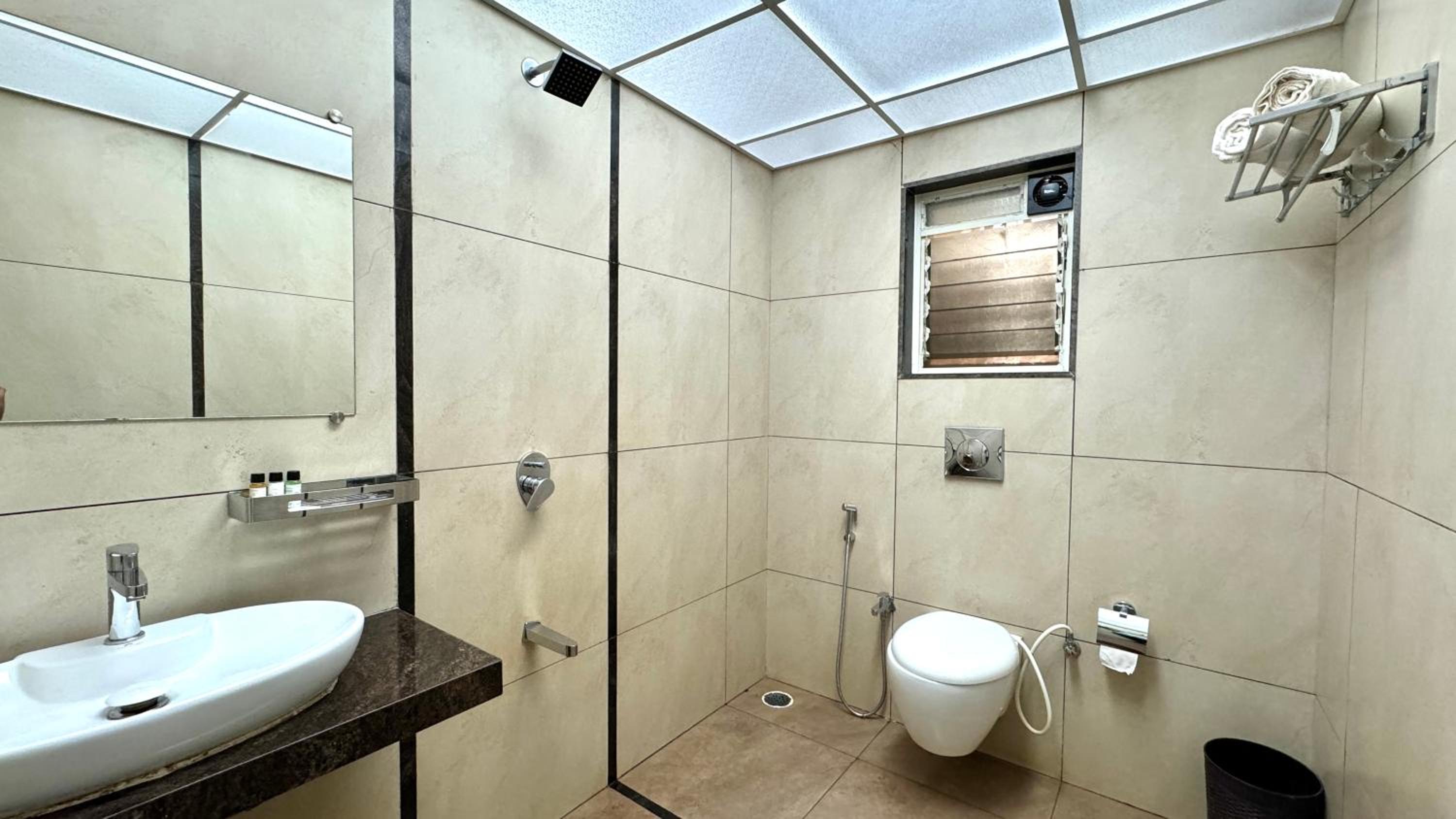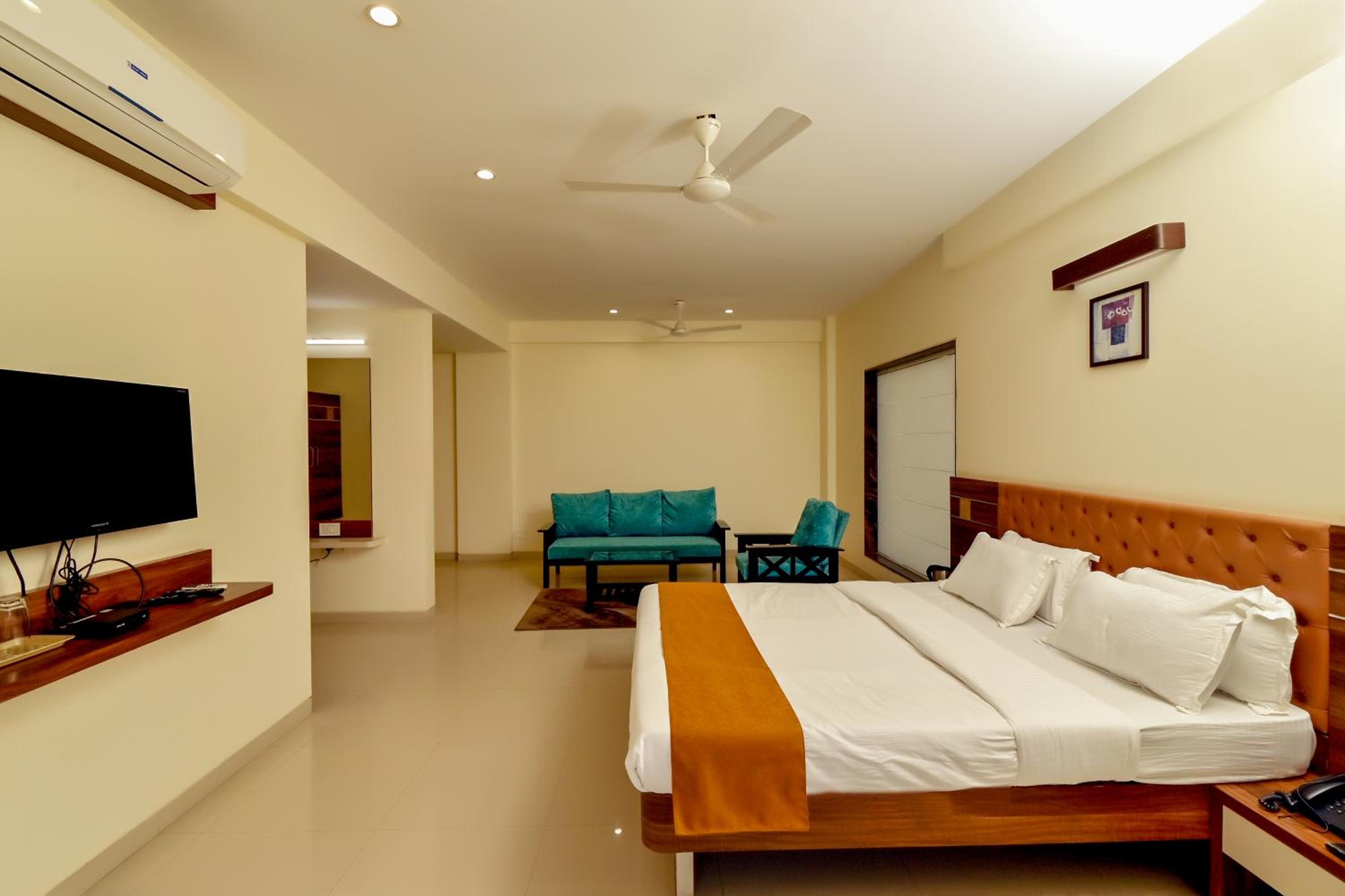 Each room at Hotel Sadhana Executive features a wardrobe, flat-screen TV, and a private bathroom. Some units offer serene garden views, while every room includes a balcony and a cozy seating area.