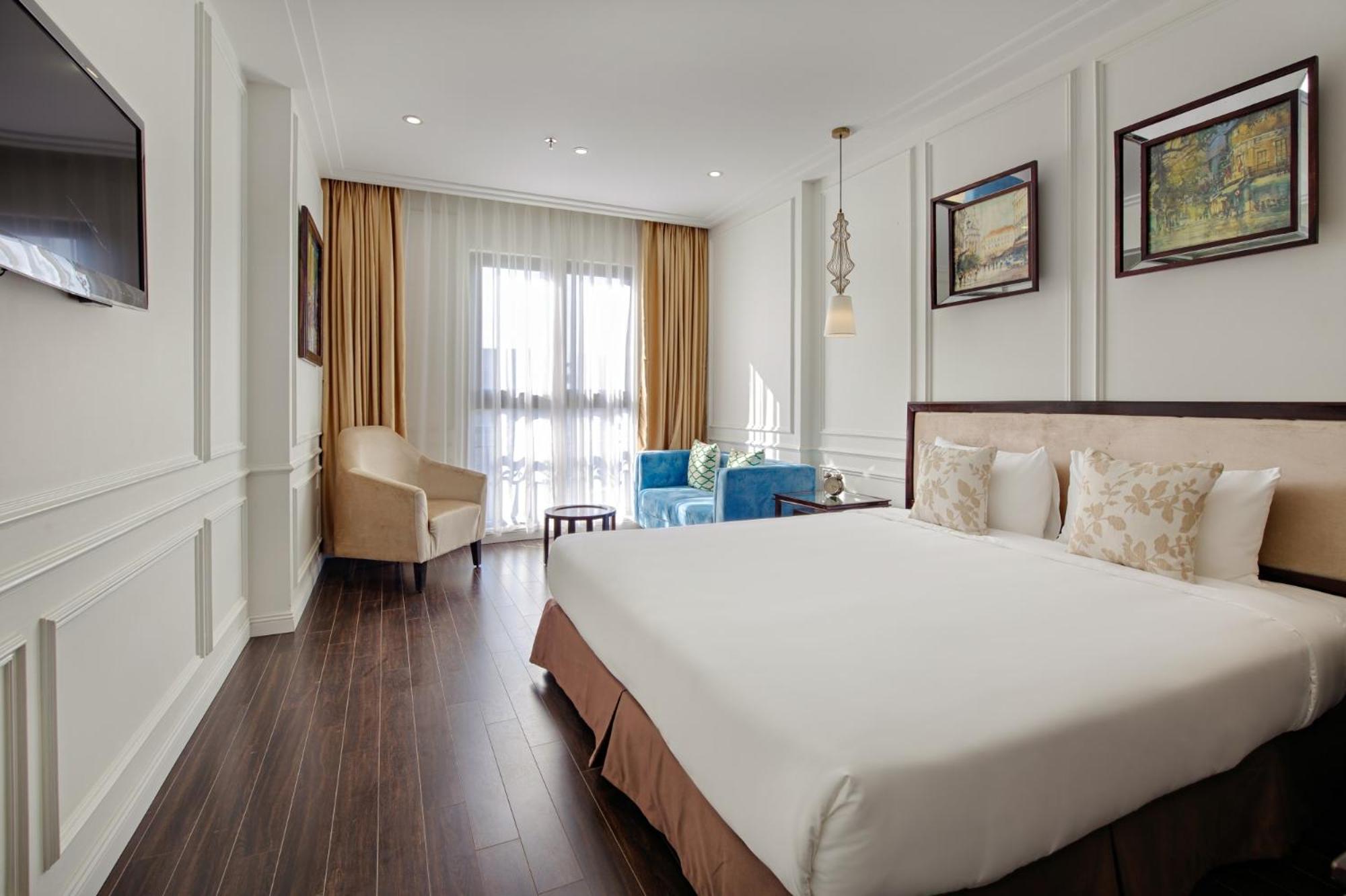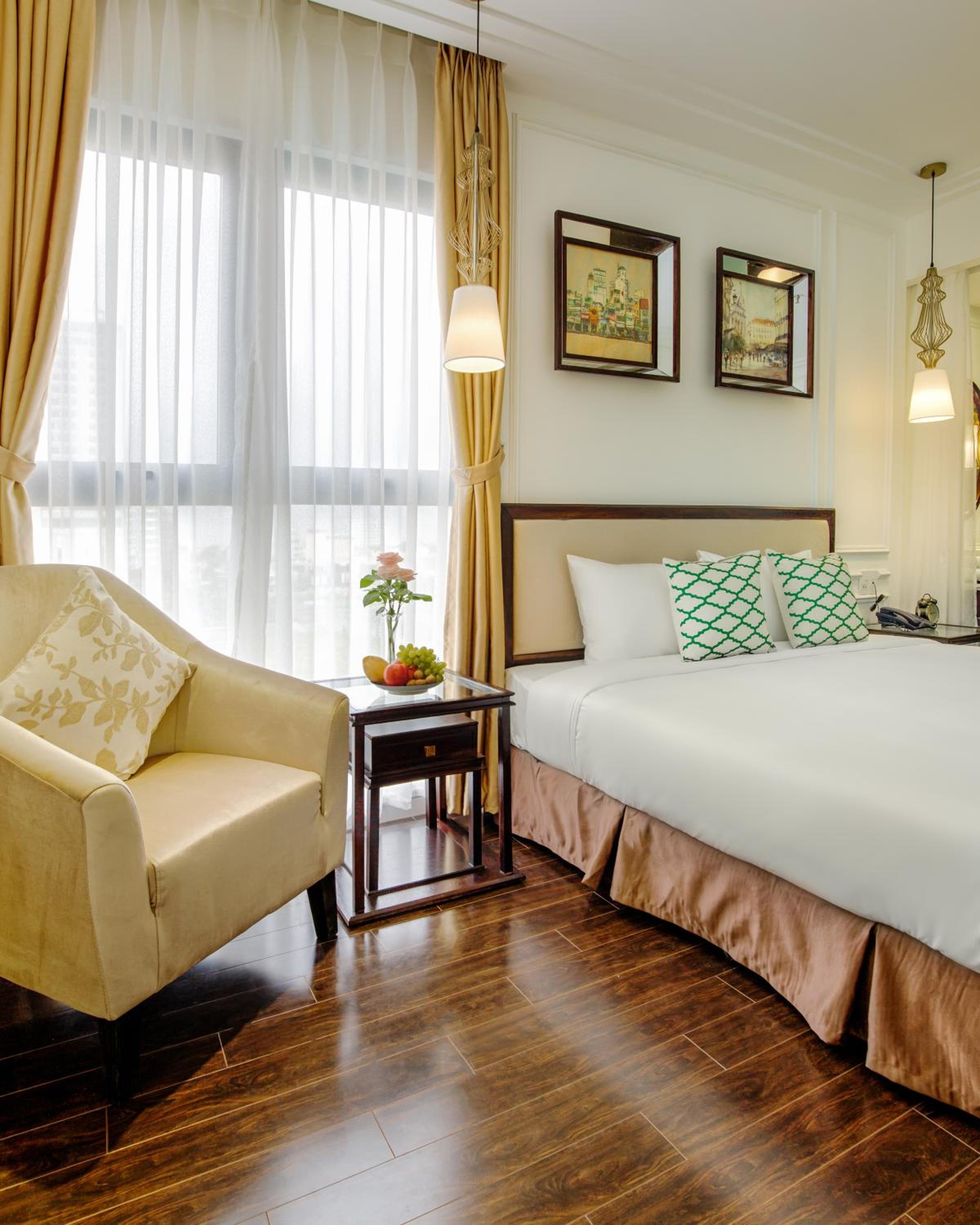 It's very beautiful with French decoration. The room is spacious with 3 windows, a sofa set and a kitchen. Very comfortable to stay.