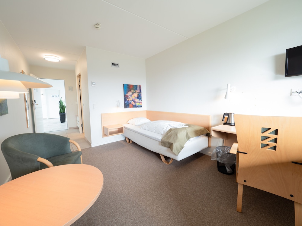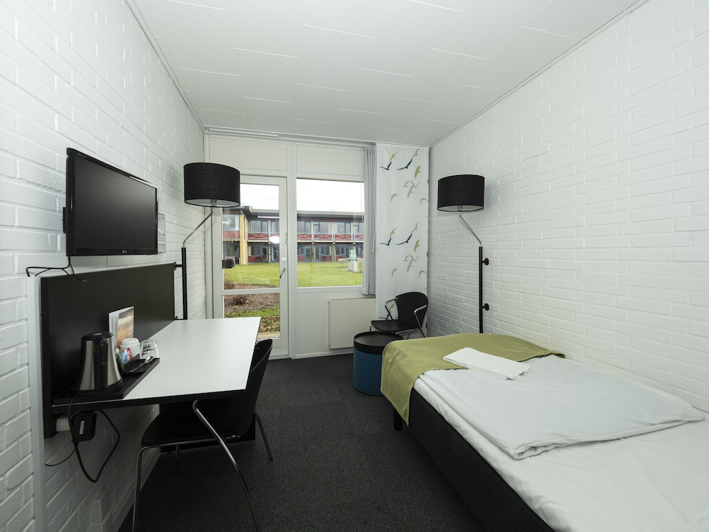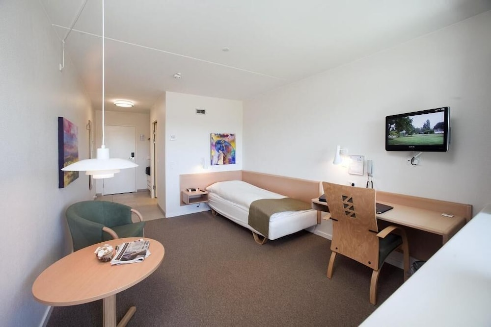 Vi overnattede en enkelt nat undervejs til en familiesammenkomst. Vi fik nøglekort tidligt, så vi kunne lukke os selv ind efter receptionen lukkede. Det fungerede fint. Vi var på hotellet på sommerens hidtil varmeste dag, og uden en åben reception eller blot en automat til kolde øl/vand, var vi bare overladt til os selv i varmen. En sådan automat havde gjort underværker, når der nu ikke er betjent reception. Fin beliggenhed, gode P-forhold, venligt personale (når de var der), men relativt dyrt for et hotel uden megen service og uden mulighed for aircondition.
